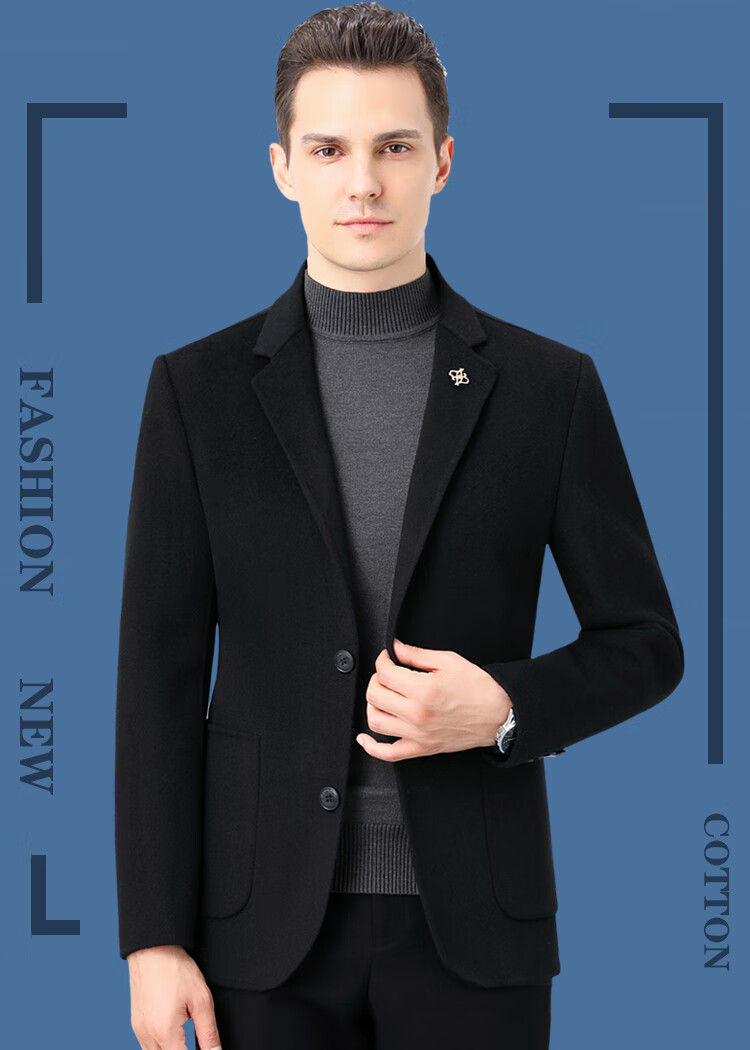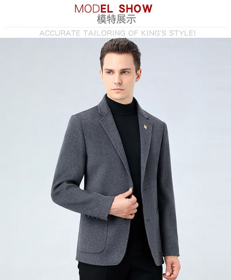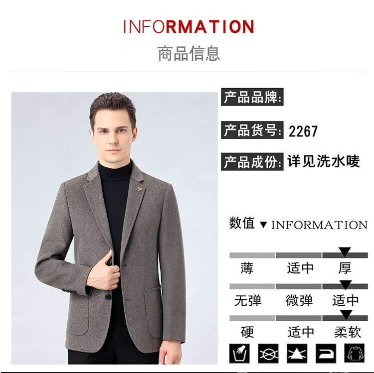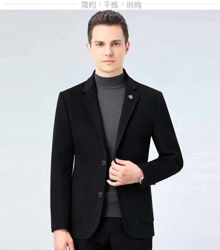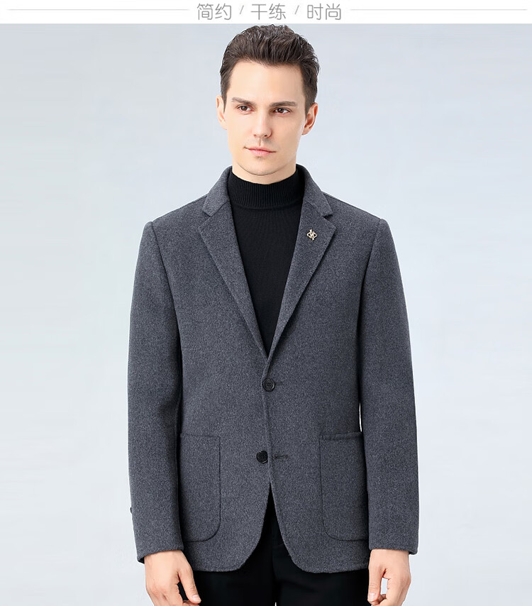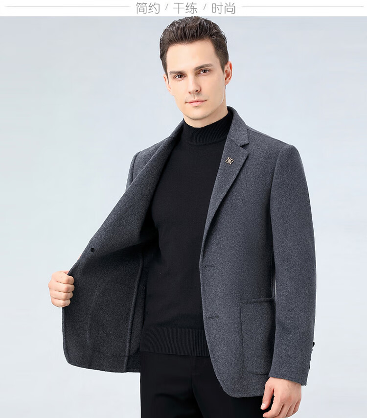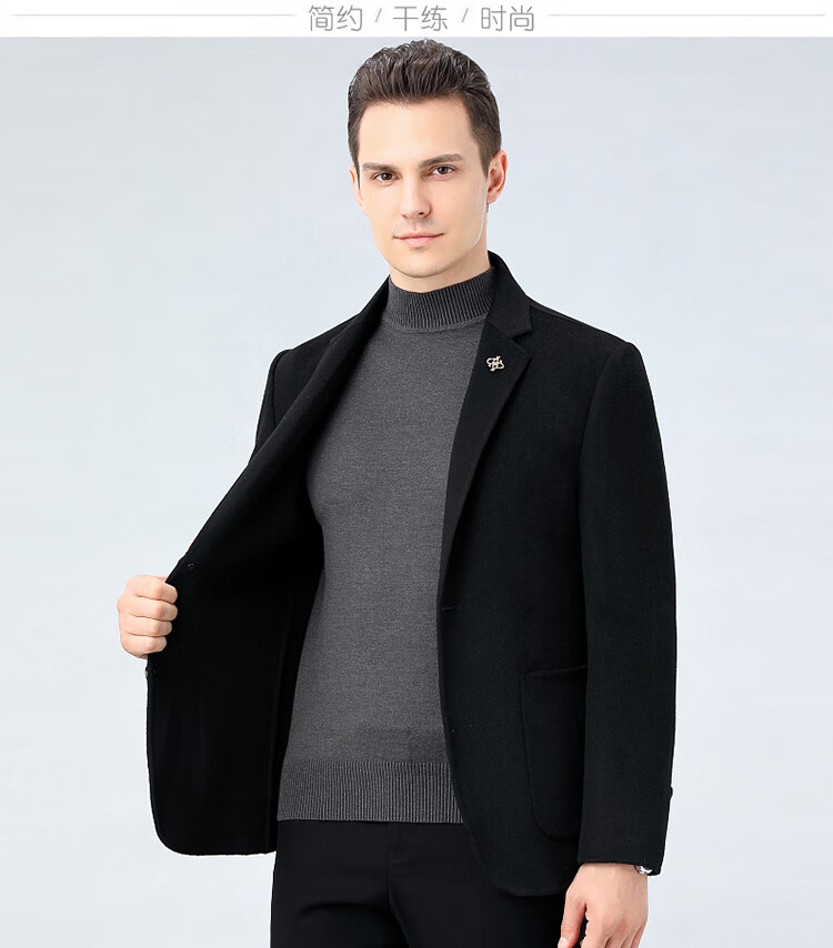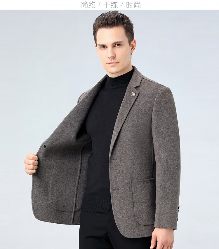 ROMON high-end men's woolen jacket spring and autumn wool double-sided woolen men's suit middle-aged business casual cashmere jacket new product camel 170/M (recommended 100-124Jin Jin equals 0.5 kg)