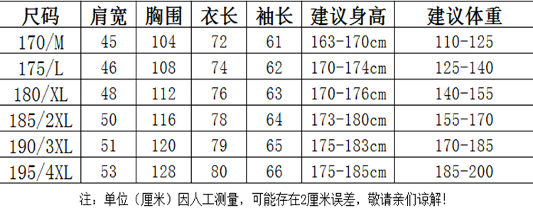 China (cm) 165 / 88-90 170 / 96-98 175 / 108-110 180 / 118-122 185 / 126-130