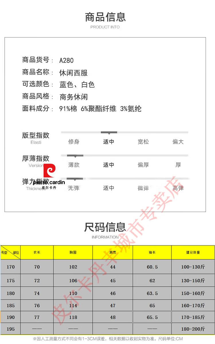Pierre Cardin men's suit single suit white suit single casual jacket wedding groom suit business white-collar high-end white 175/92A