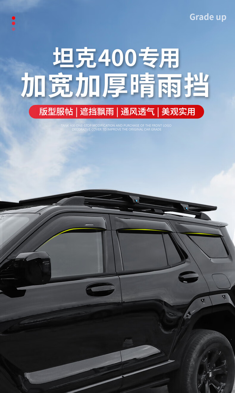 Parken 23-26 tank 400hi4t/hi4z rain shield modified car window rearview mirror rain eyebrow decoration rainproof accessories 23-26 tank 400 black rain shield-thickened and widened version 4 pieces More 400 modified products are welcome to visit the store to view