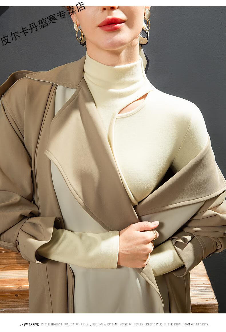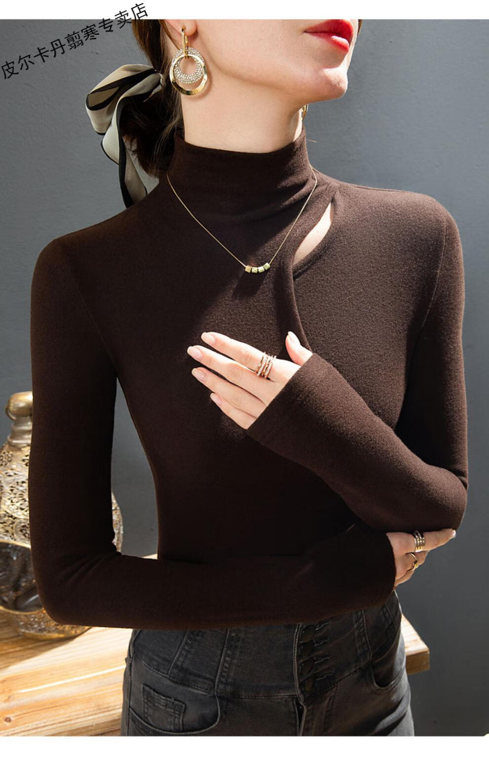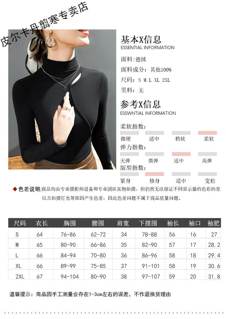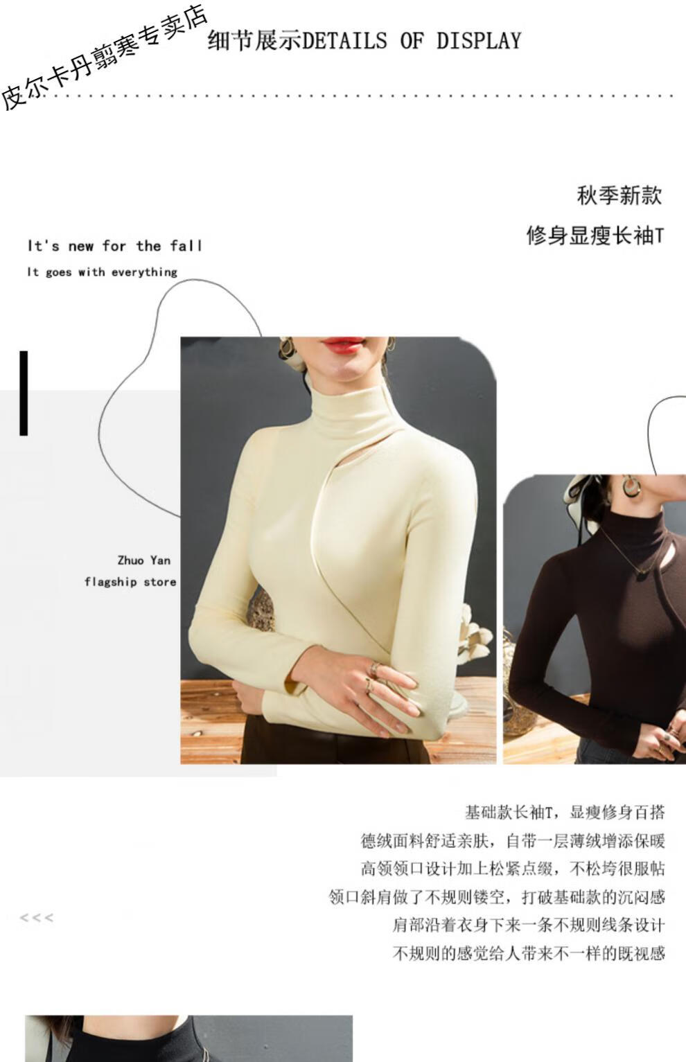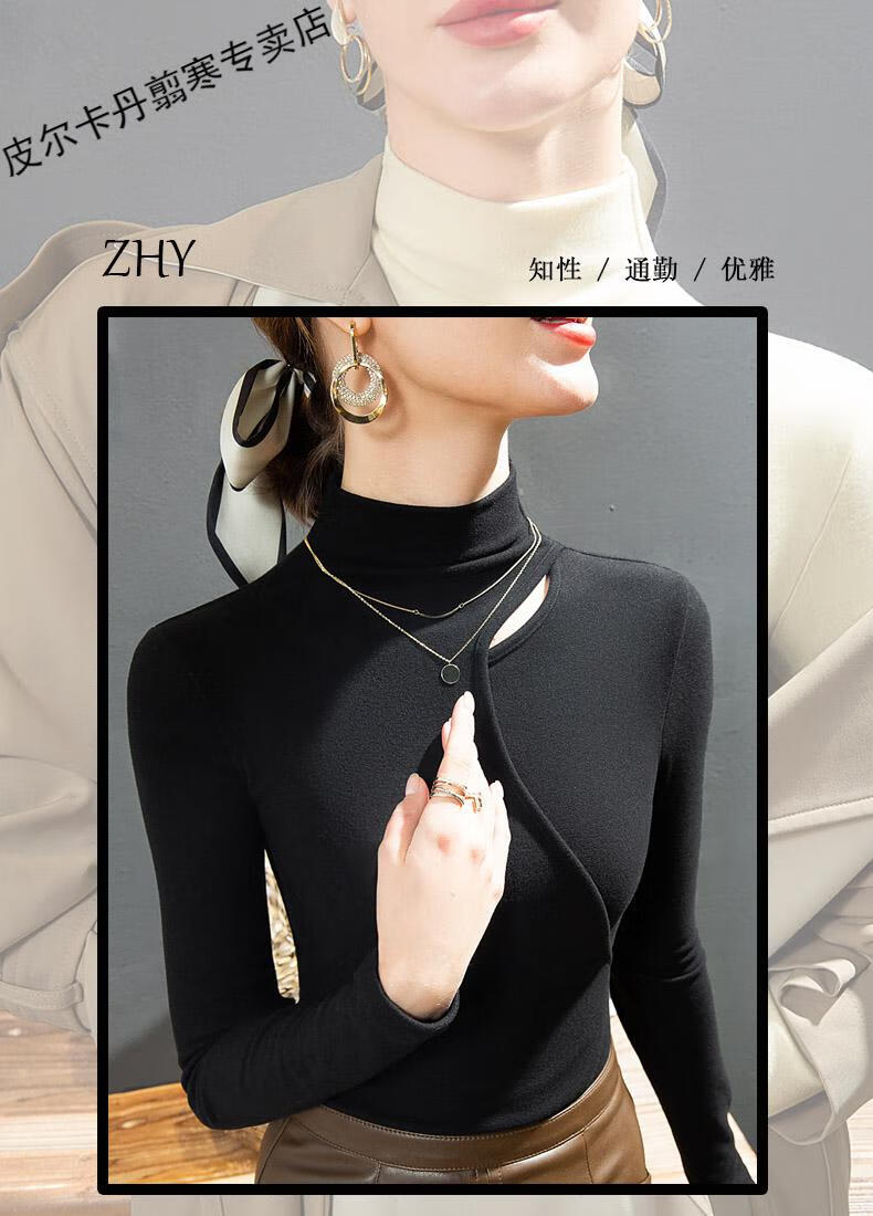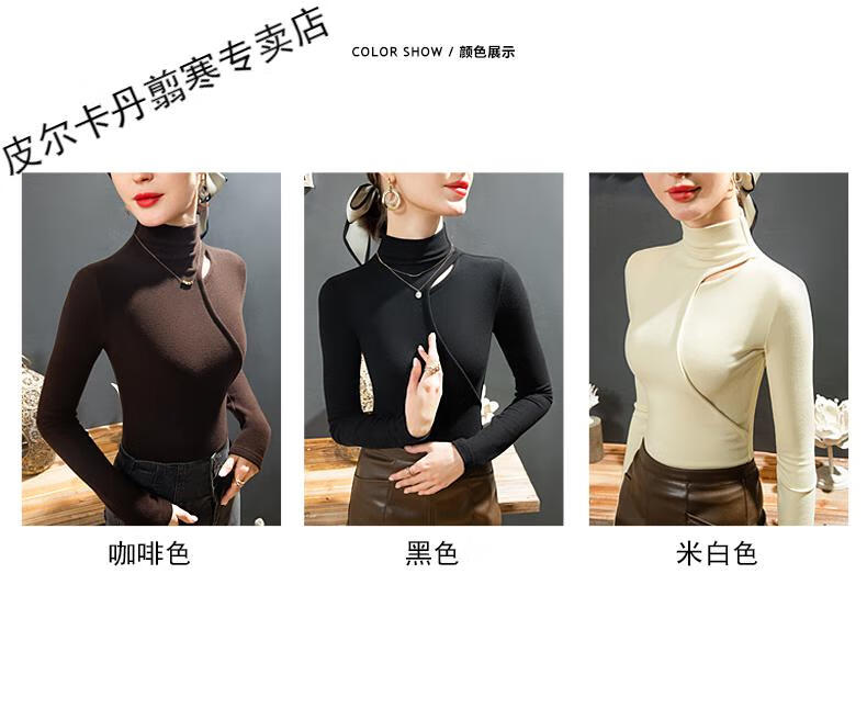 Pierre Cardin Double-sided German Velvet T-shirt Women's Half Turtle Collar Ripped Bottoming Shirt Spring and Autumn Slim-fit Brushed Irregular Splicing Top Brown L