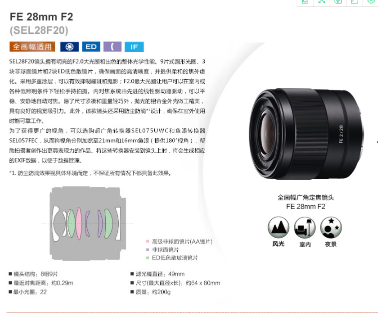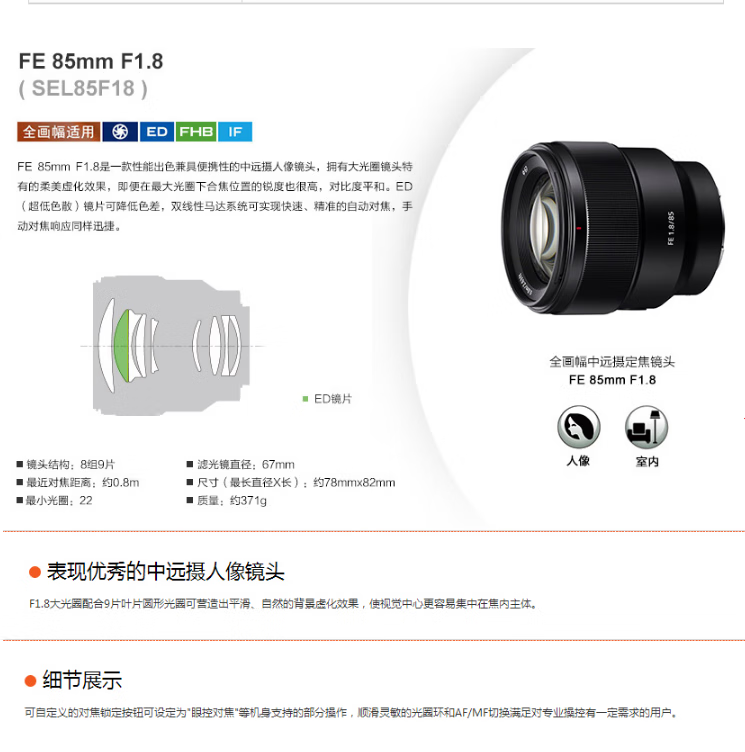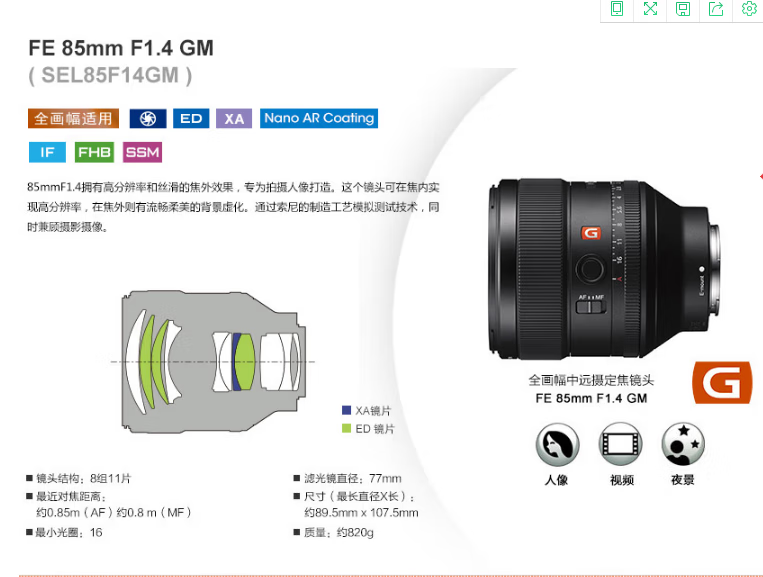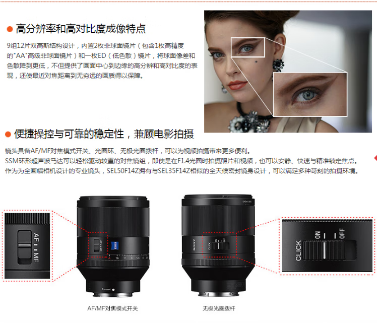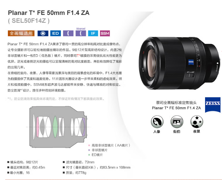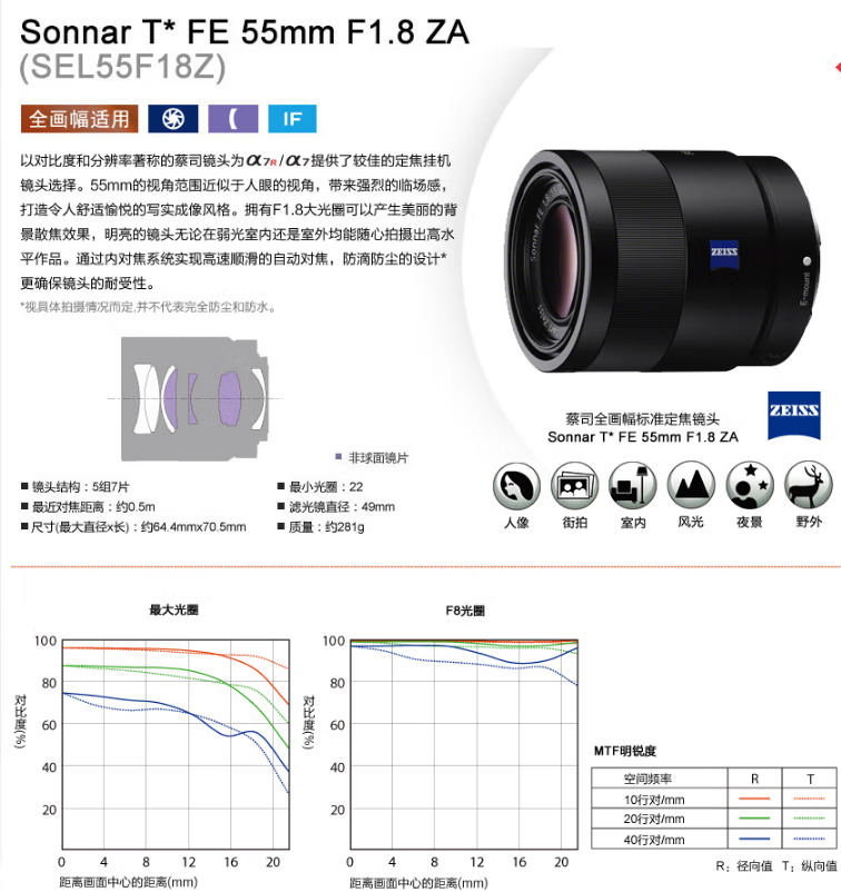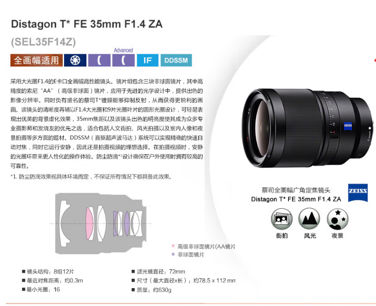 Sony (SONY) full-frame mirrorless E-mount fixed focus lens FE lens FE 35mm F1.4 Z Humanities fixed focus lens
