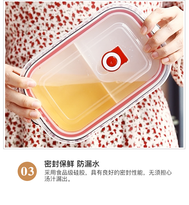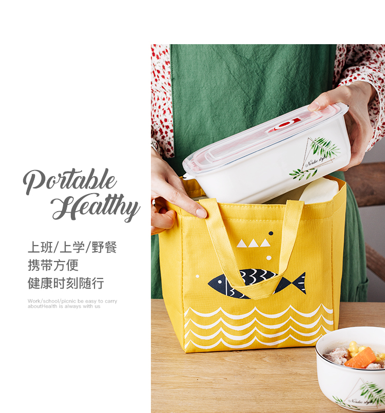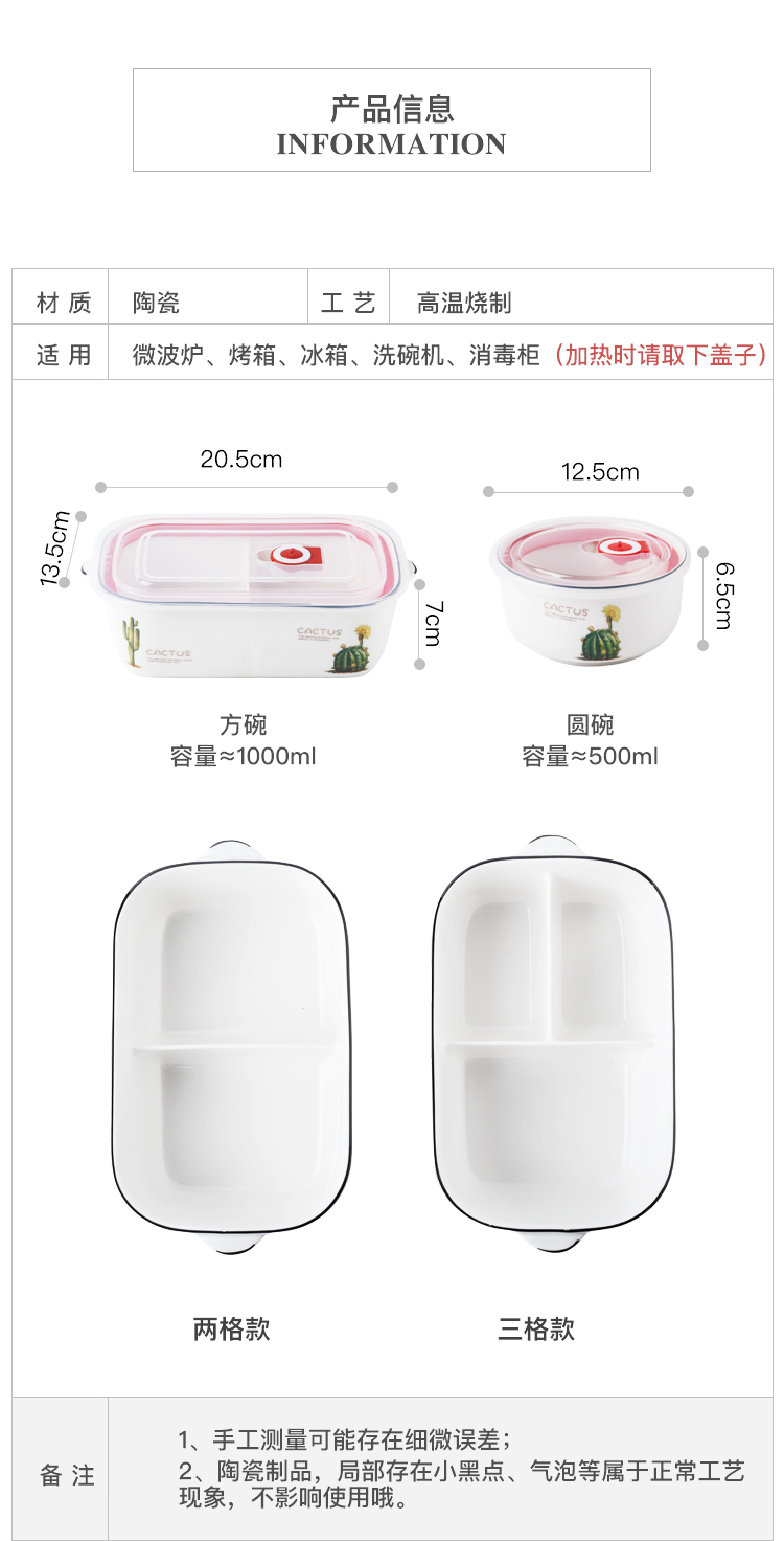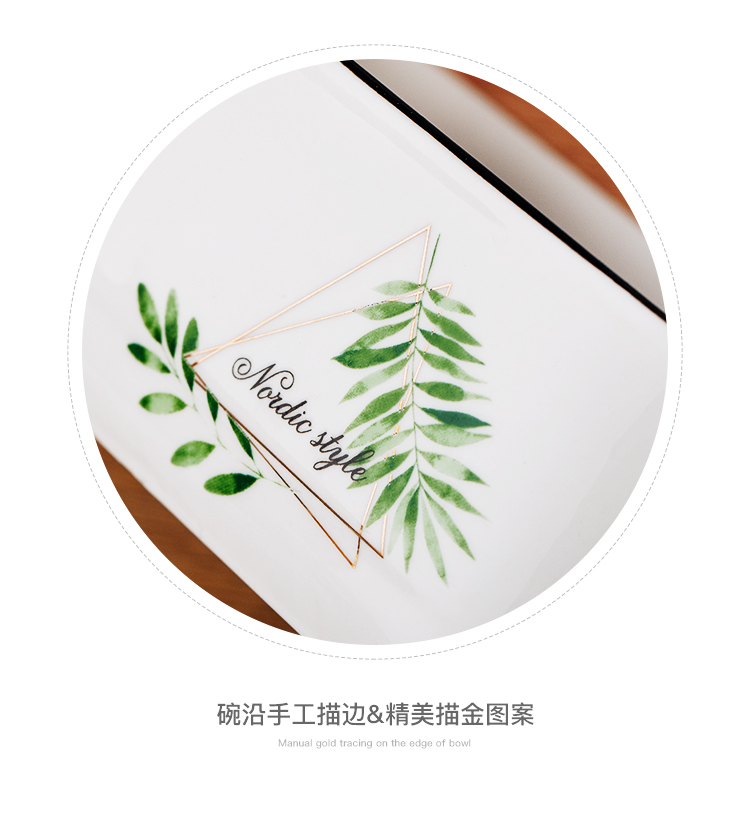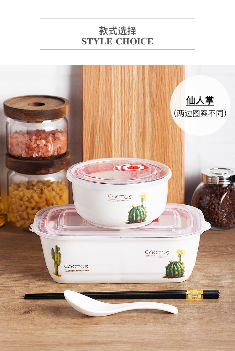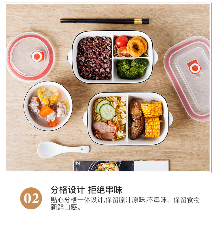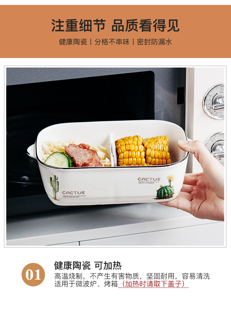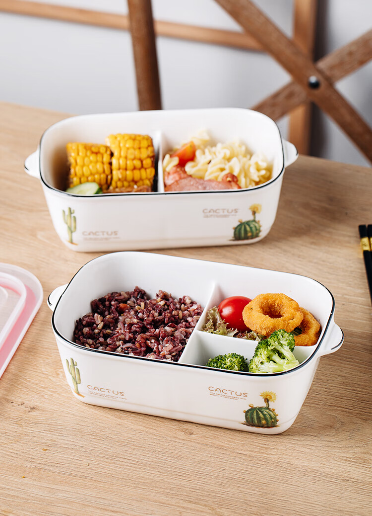 Fuluqi Ceramic Lunch Box Ceramic Compartment Lunch Box Microwave Lunch Box with Lid Sealed Office Worker Belt Geometric Green Leaf Three Compartments Free Spoon and Chopsticks