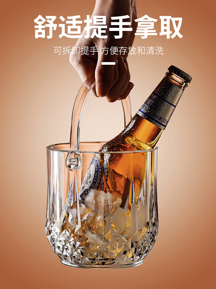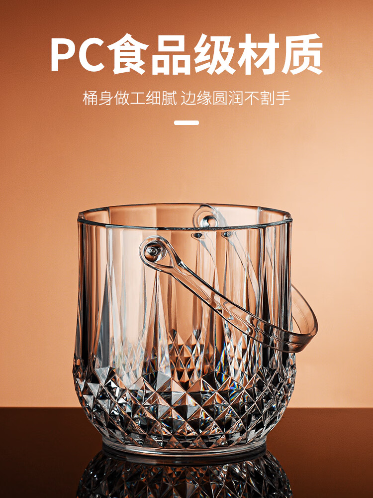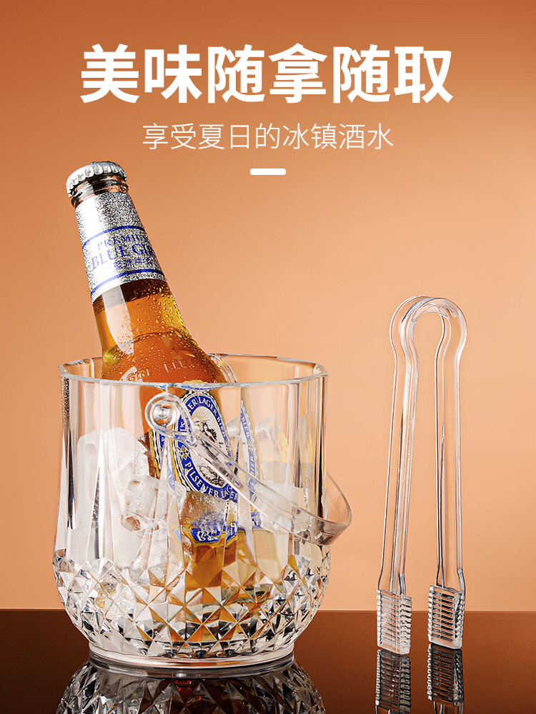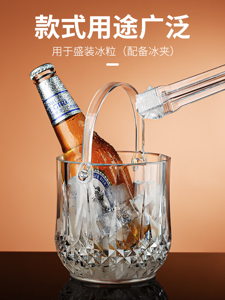 Zhiyao ice bucket ice bucket bar ktv commercial acrylic internet celebrity storage bucket household small beer bucket storage bucket thickened diamond style 1 + ice clip