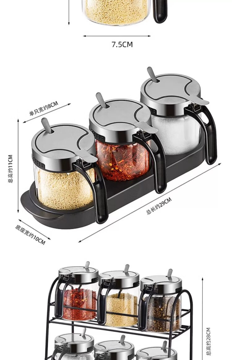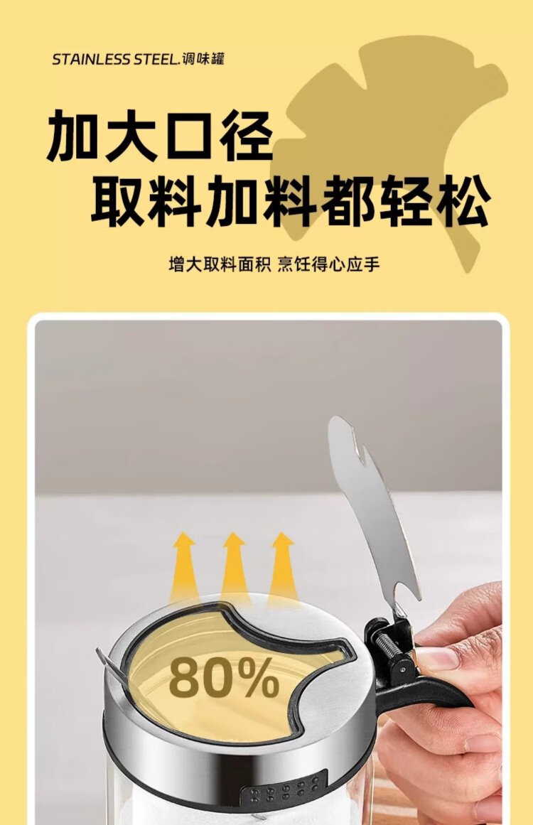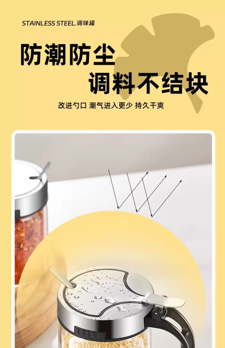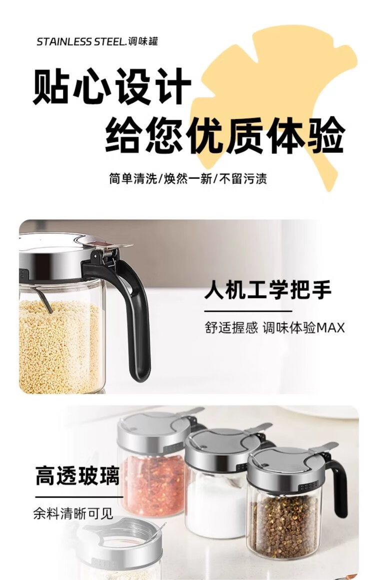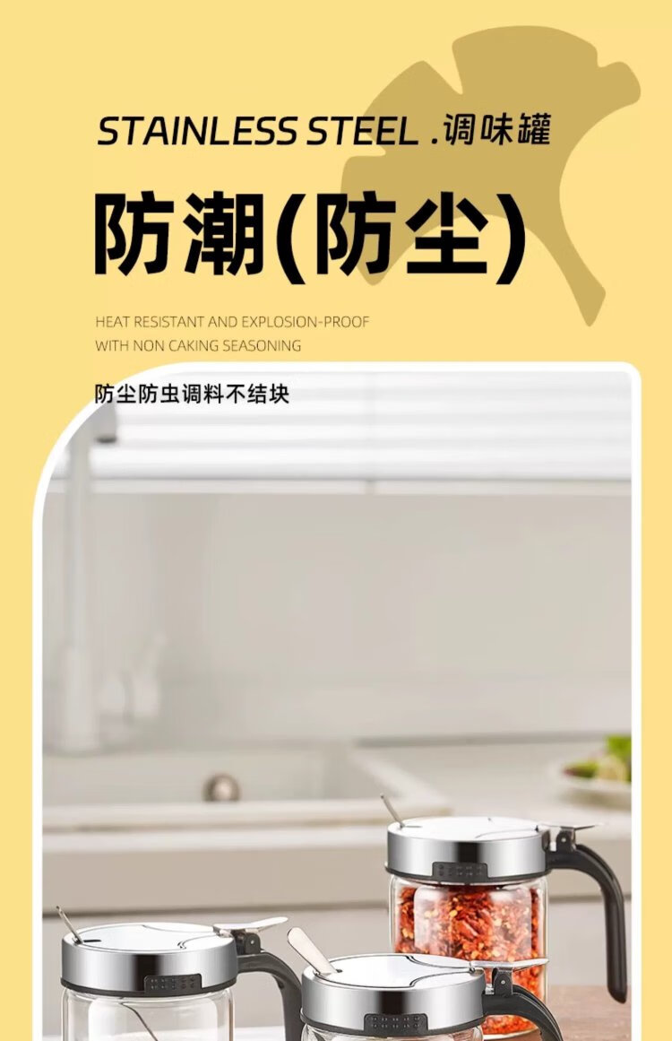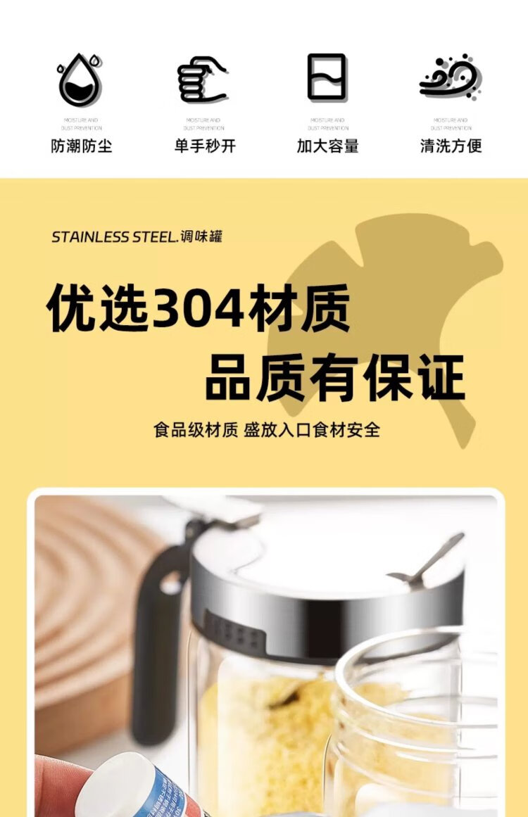 Quark seasoning box set household combined kitchen storage box jar salt shaker split seasoning bottle seasoning jar 304 steel lid jar * 3 (free small spoon + label)