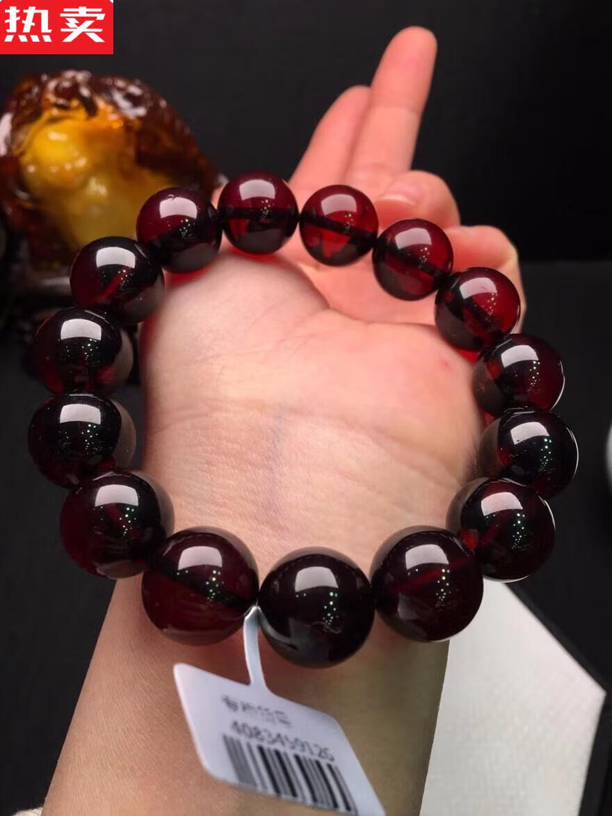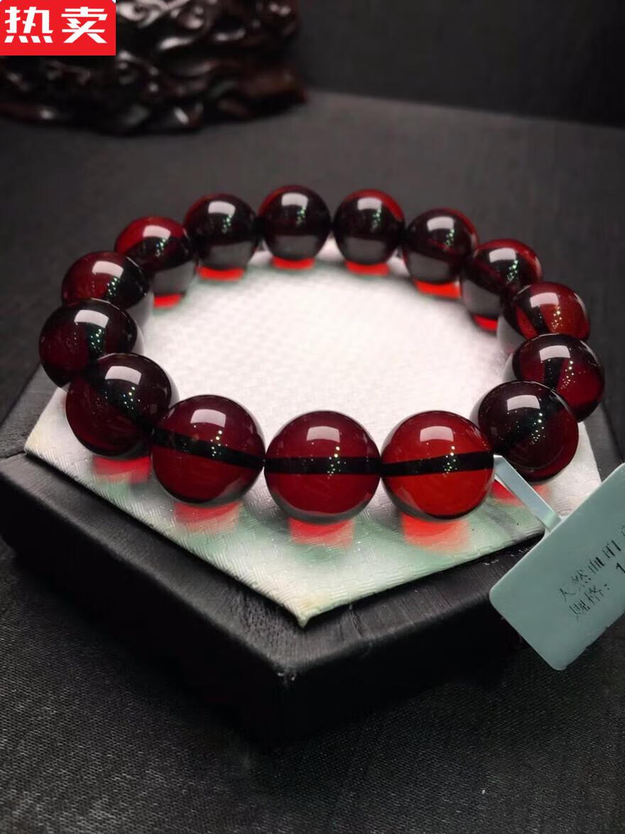 SNQP selects high-end blood amber hand beads, rosary beads, men's and women's red amber old wax original mineral toy gift bracelets, blood amber hand beads 12MM 16 pieces