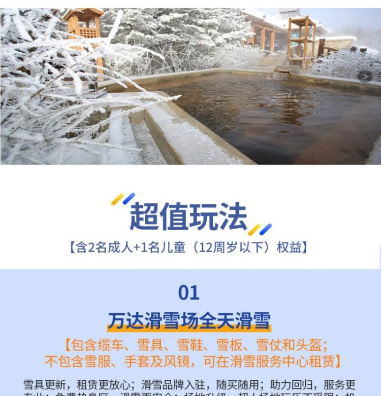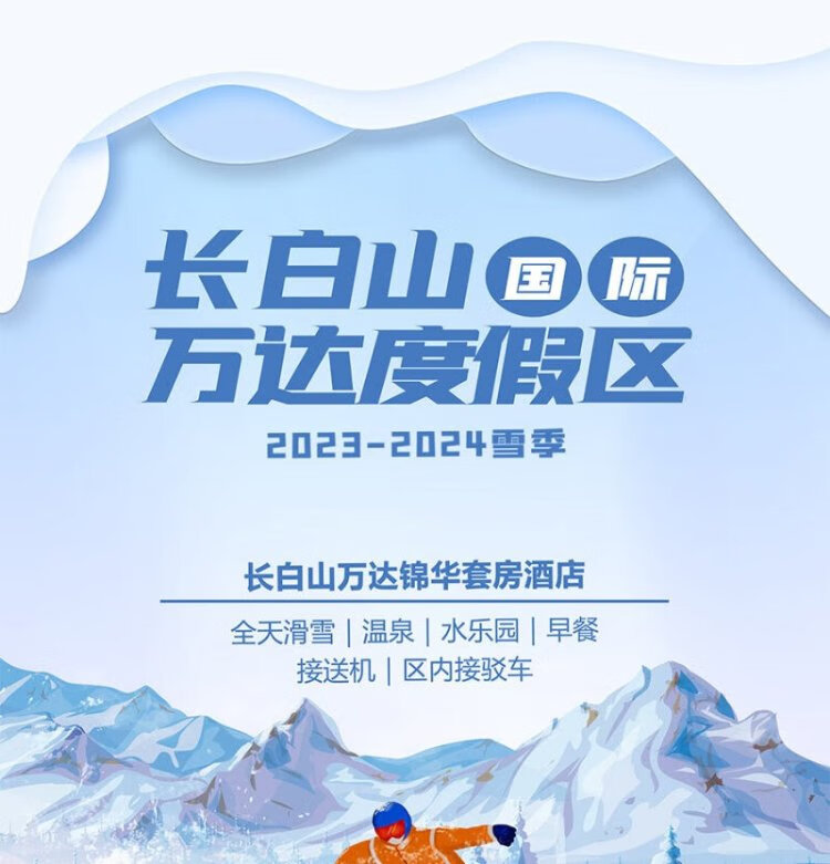 Snow season pre-sale Changbaishan Wanda Jinhua Resort Hotel 2 days and 1 night snow season smooth hot spring package 2.18-2.29 One-bedroom (2 large and 1 small)