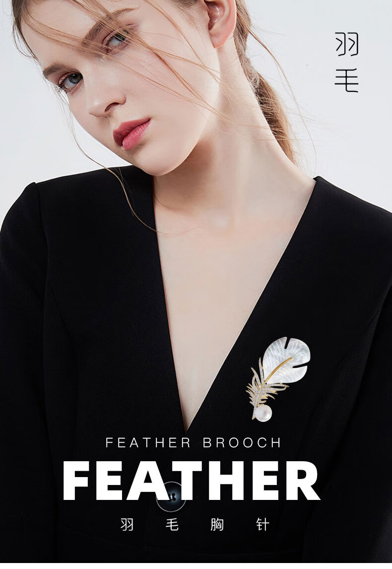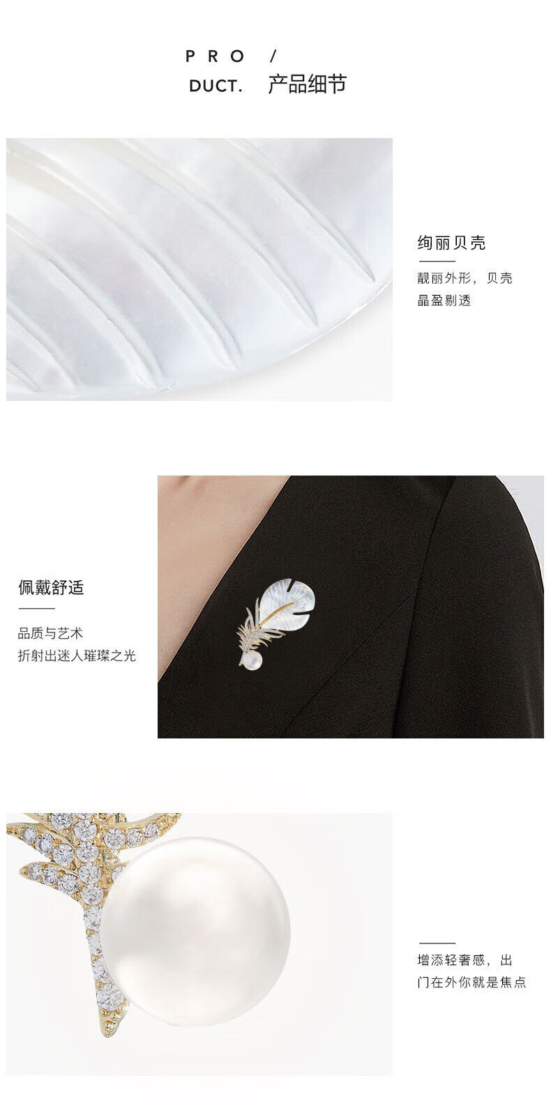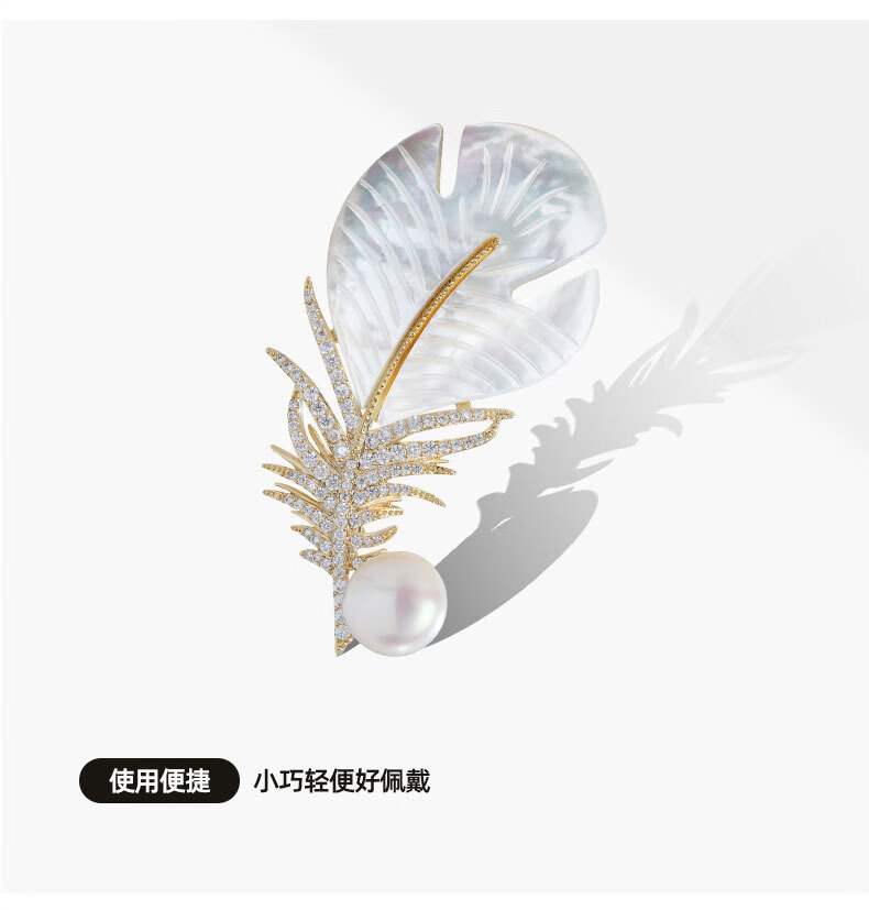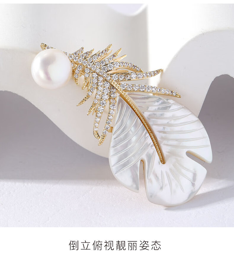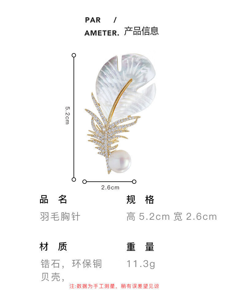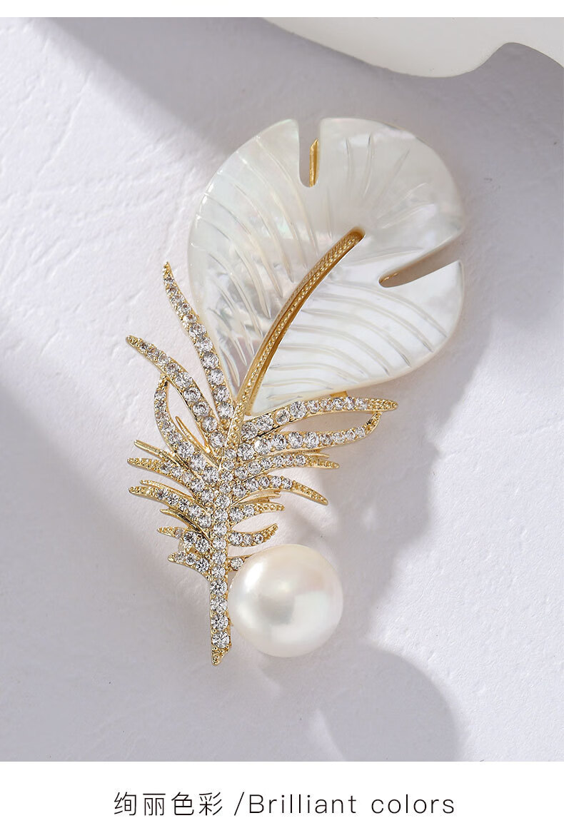 Qimiao Peng's new brooch, Korean style luxury pearl shell feather brooch, temperament corsage, birthday and New Year gift for girls, wings, gold style