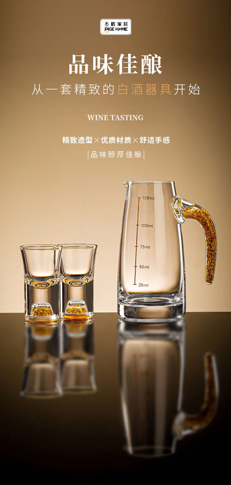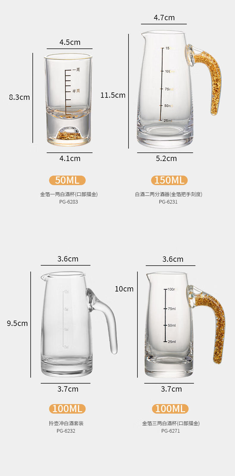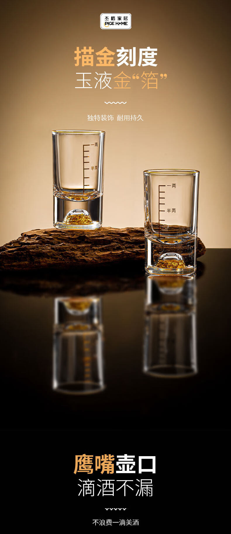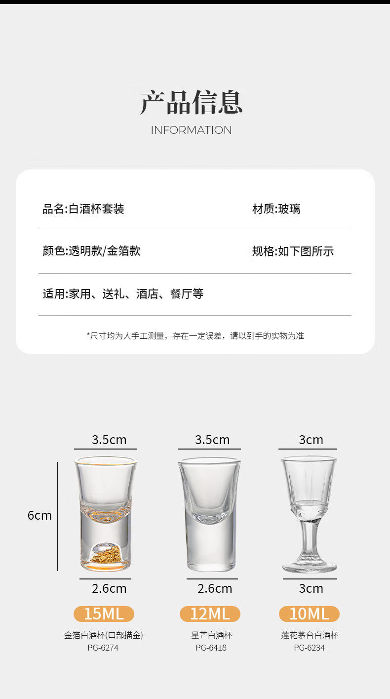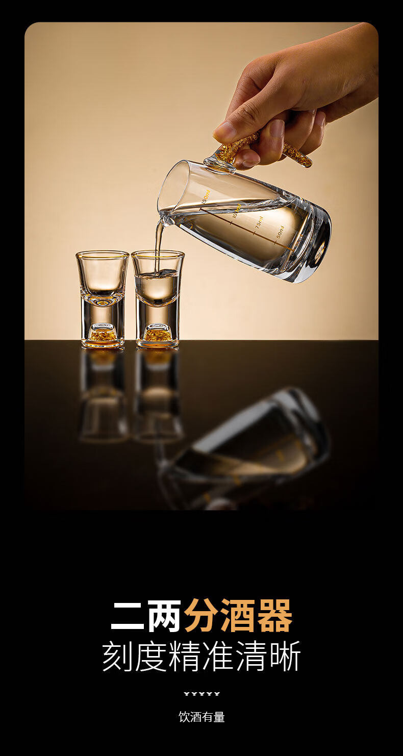 Pige Home Liquor Cup Set Household Wine Divider Small Wine Cup Gold Foil Handle Advanced Wine Divider Commercial Spirit Glass One-cup Two-Liang Gold Foil Wine Divider Single Pack-PG-6231 100ml