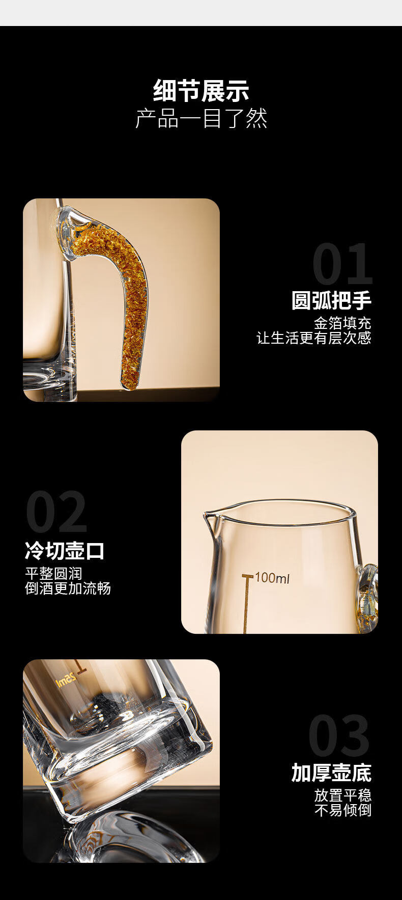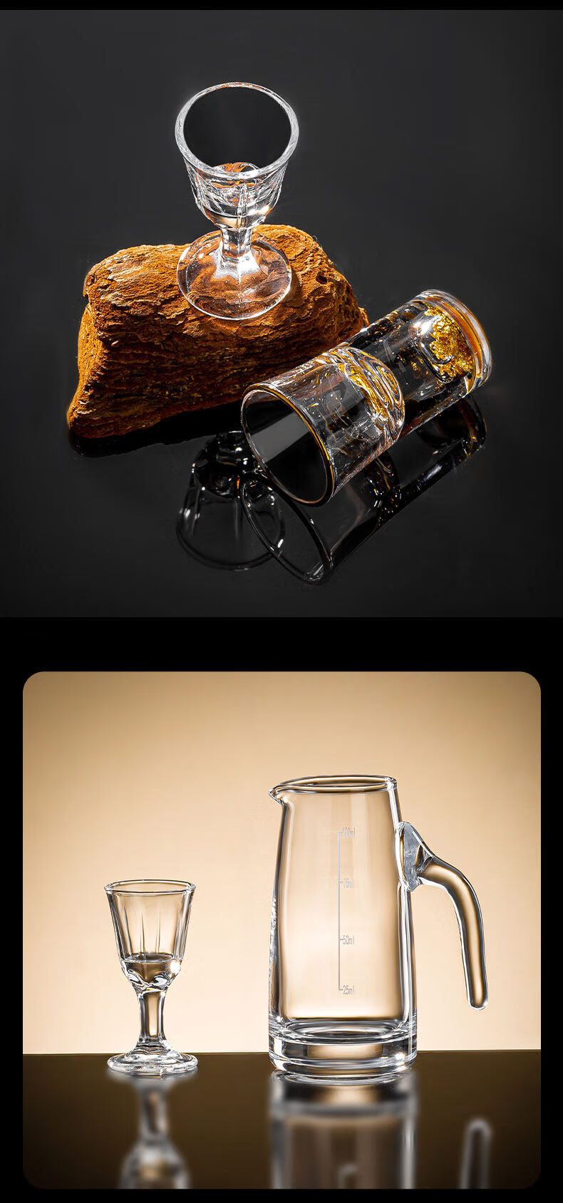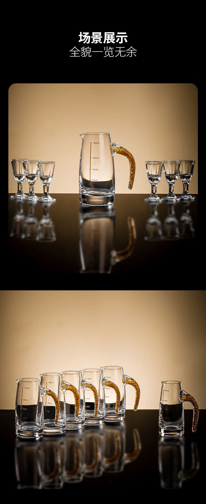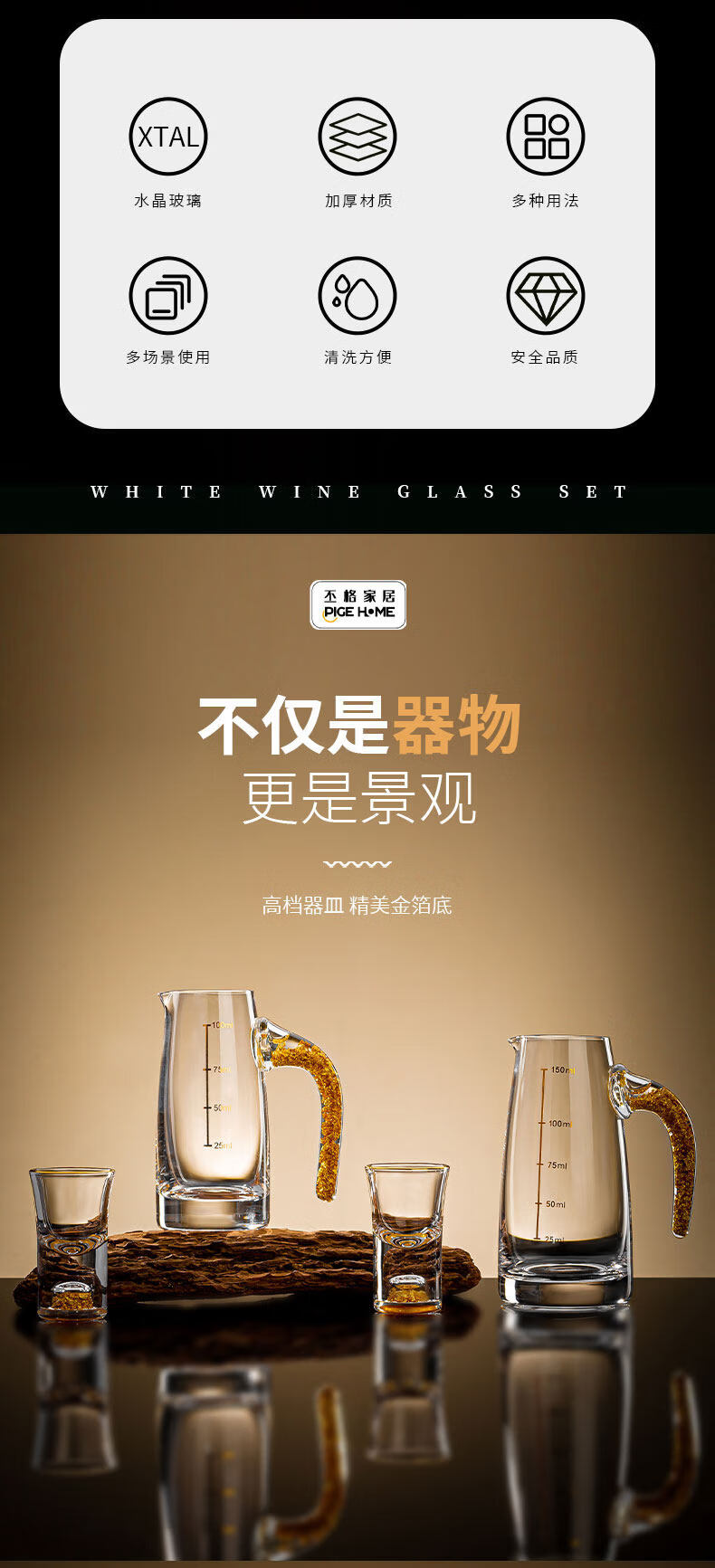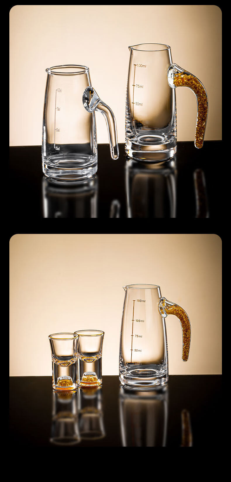 Pige Home Liquor Cup Set Household Wine Divider Small Wine Cup Gold Foil Handle Advanced Wine Divider Commercial Spirit Glass One-cup Two-Liang Gold Foil Wine Divider Single Pack-PG-6231 100ml