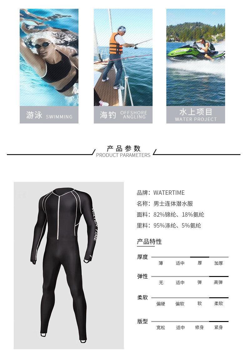 WATERTIME jellyfish suit wetsuit men's snorkeling suit full body sun protection and cold protection swimsuit one-piece long-sleeved surfing suit men's black M