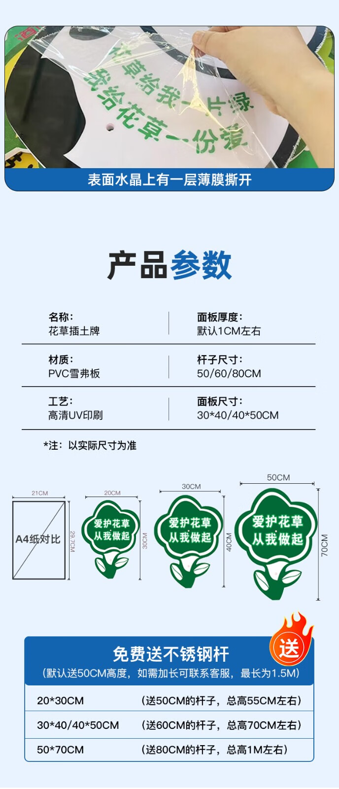 Letrero pequeño de flores y pasto de Zhizhou, letrero de cuidado de flores y pasto, letrero de advertencia de césped y pasto, mantenimiento, personalización de complementos de marca media A-17 (superficie cubierta con cristal + poste) 30x40cm