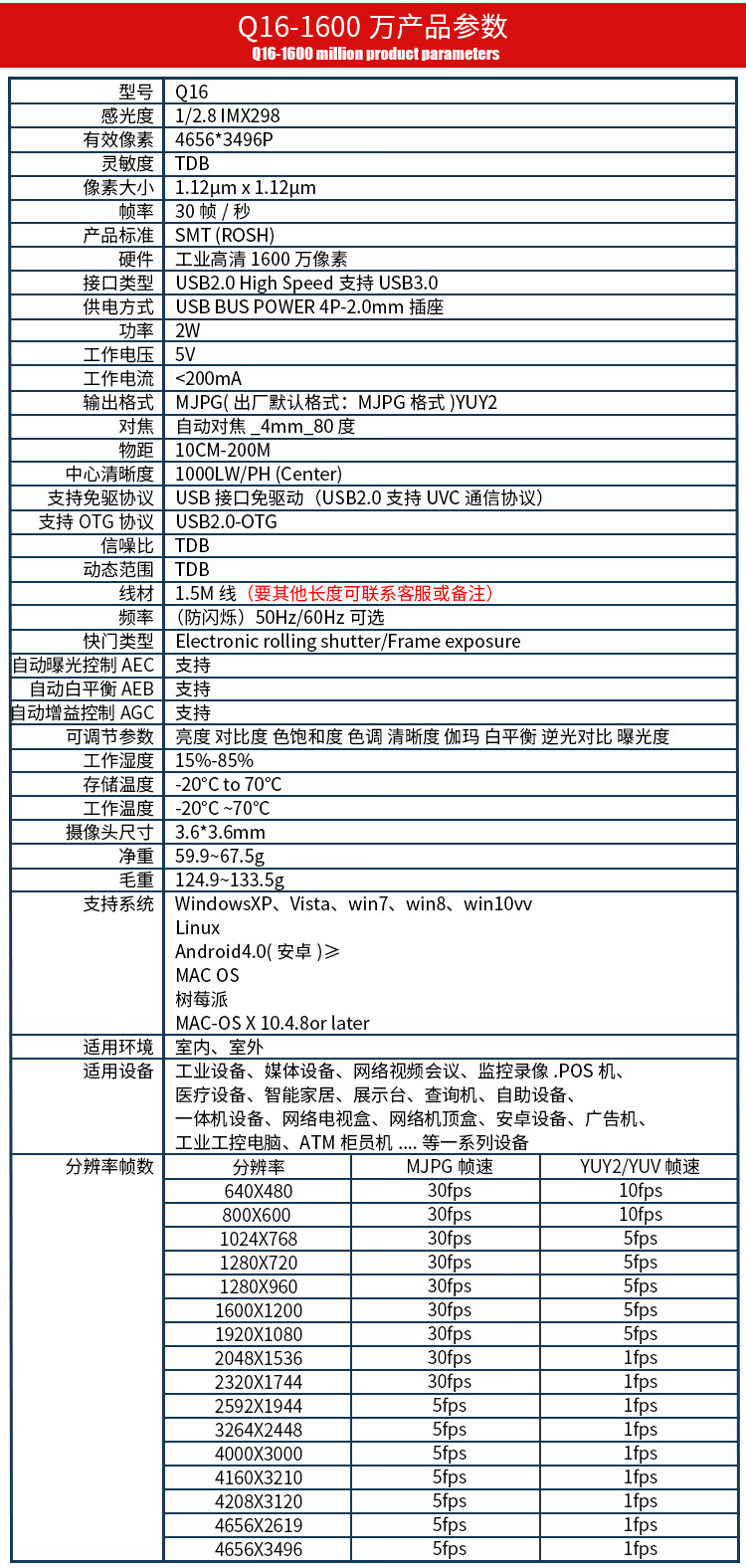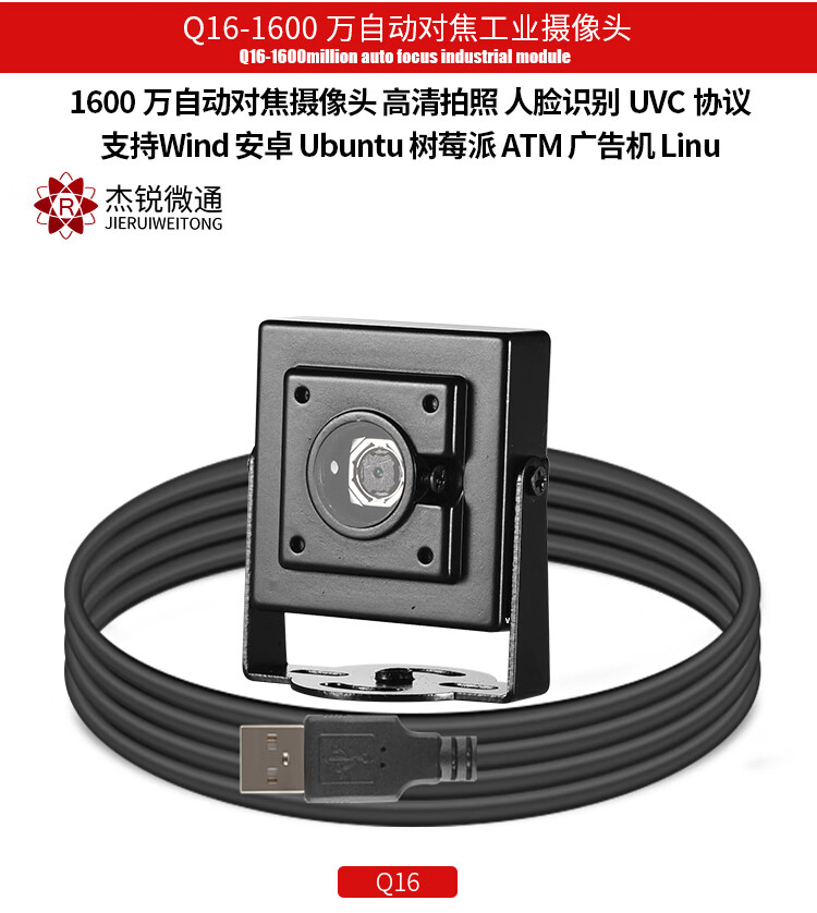 Jerry Microcom usb industrial camera 16 million 4K face recognition autofocus photo file linux Android Raspberry Pi computer driver-free Q16 Q16-16 million autofocus-4K