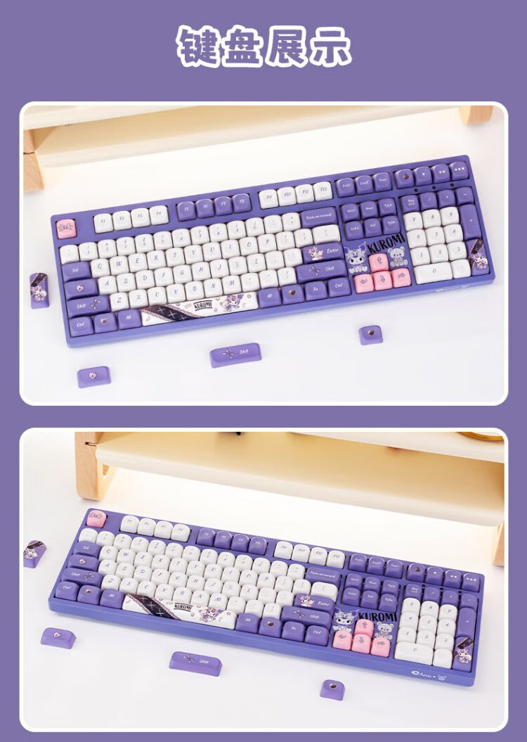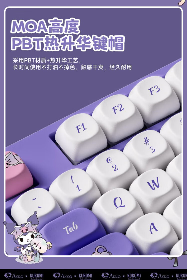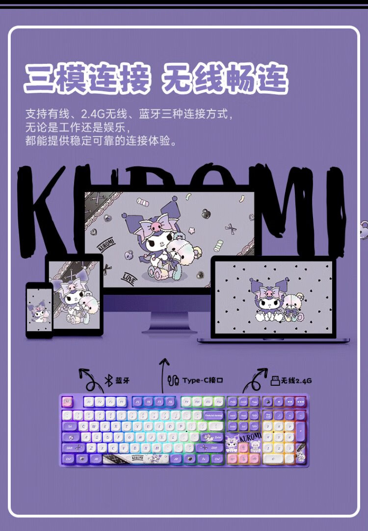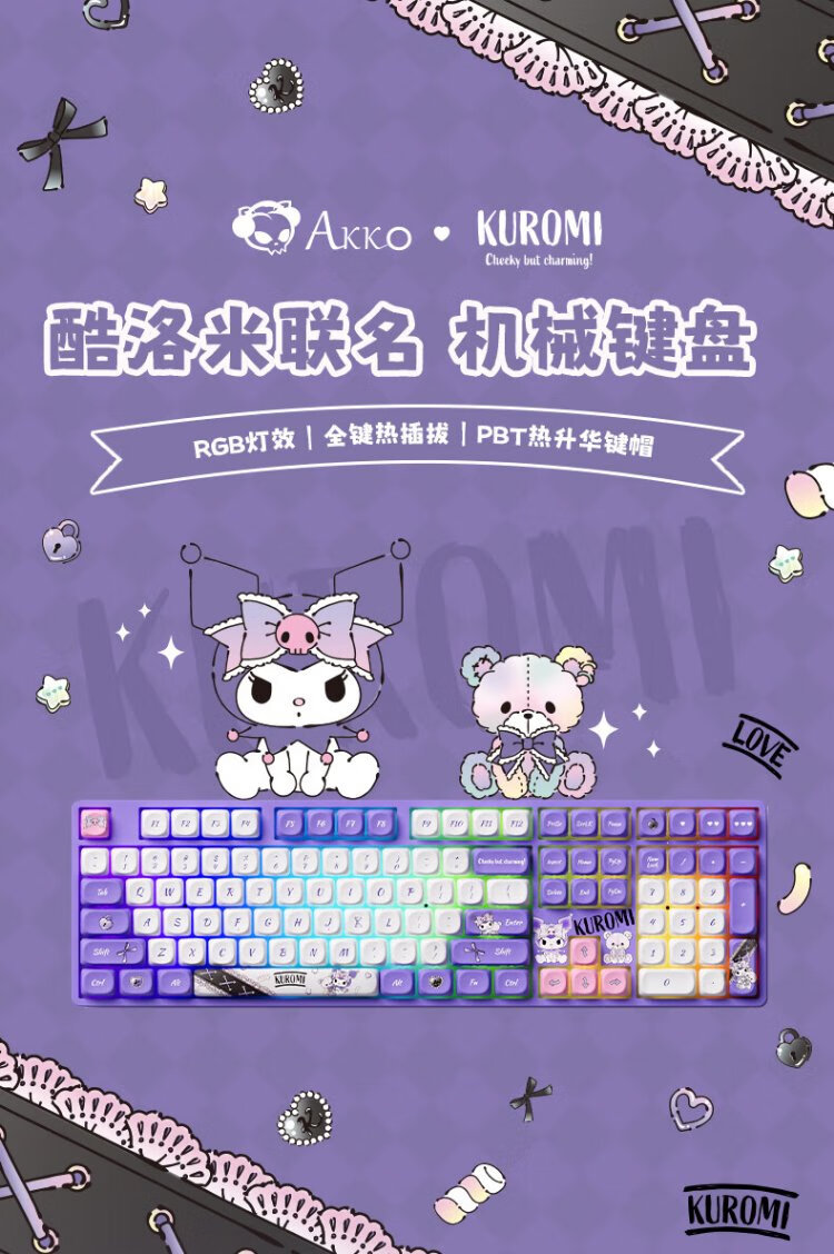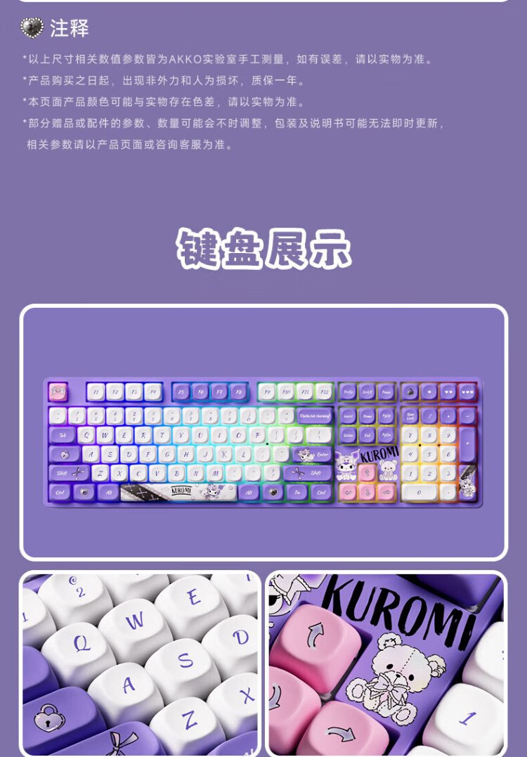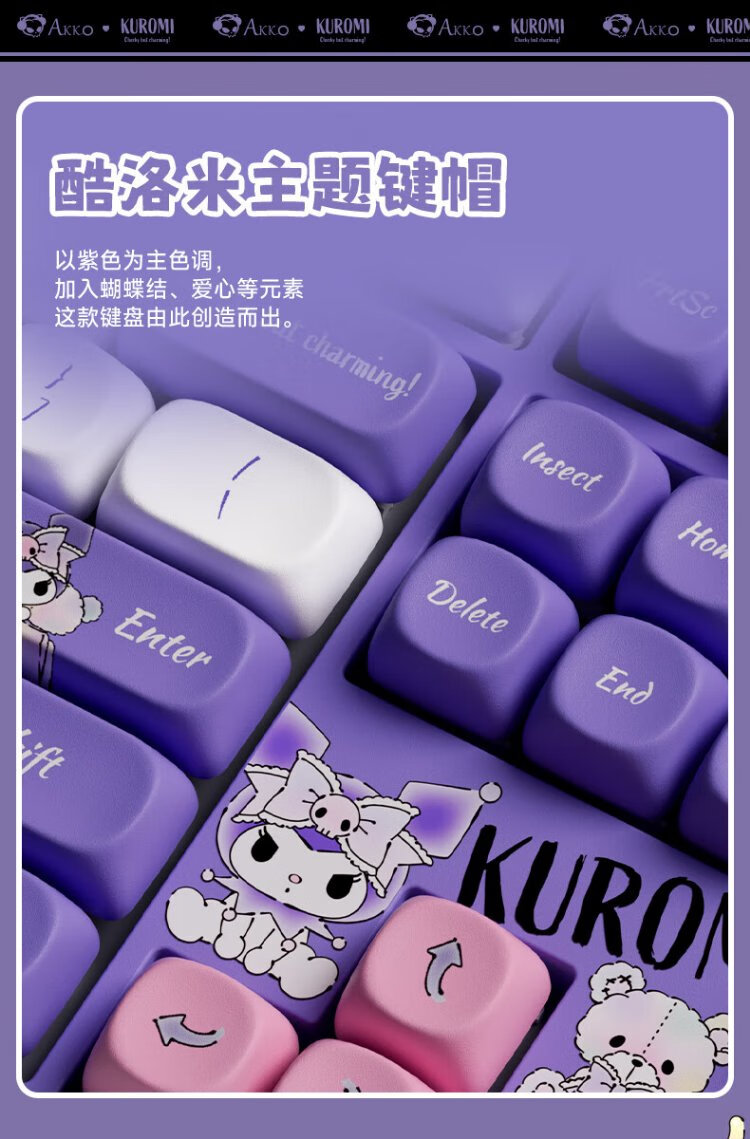 AKKO3108 V3 Kuromi mechanical keyboard co-branded wireless Bluetooth three-mode wired mechanical keyboard 3087 Melody-Sakura axis (wired) no RGB