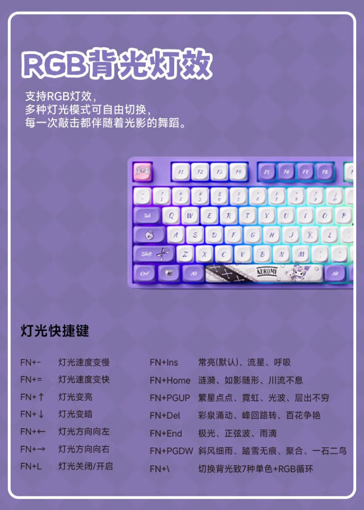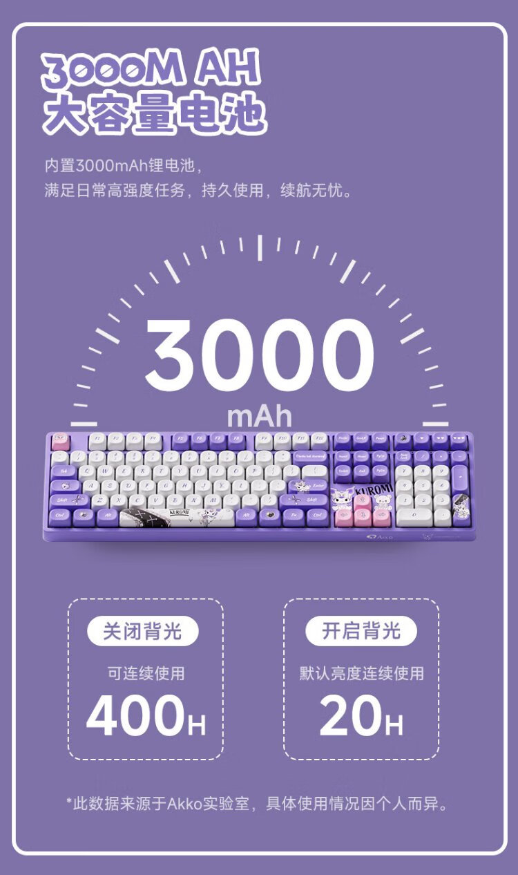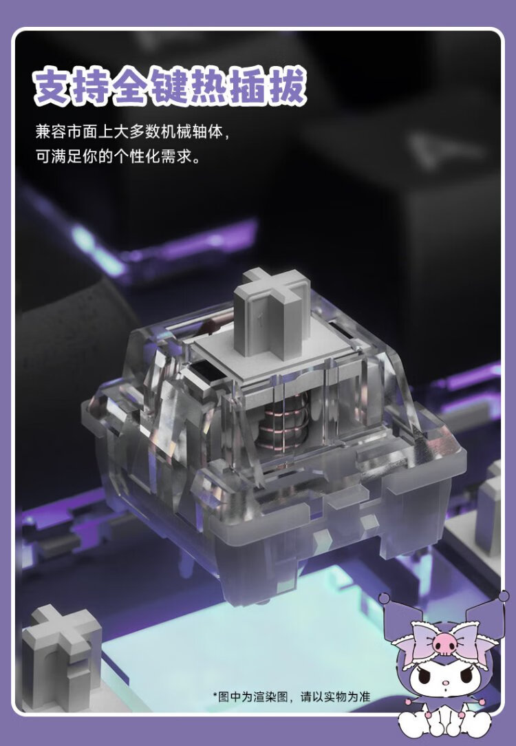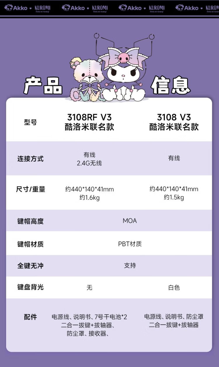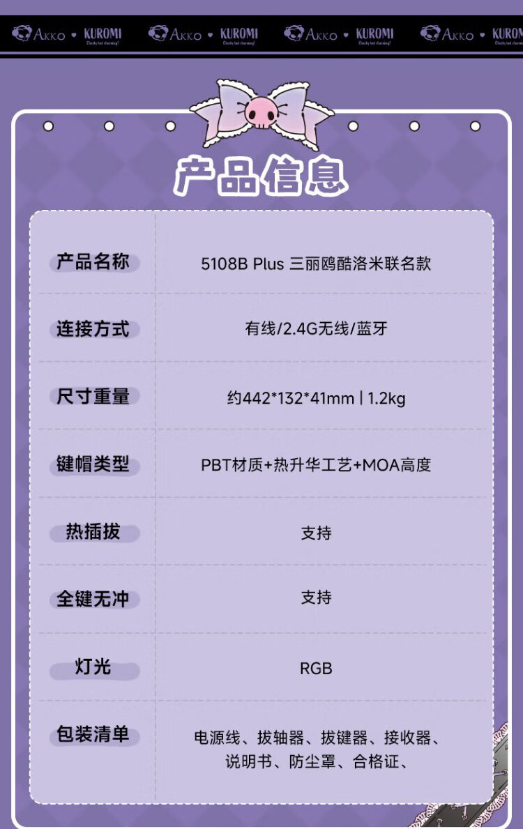 AKKO3108 V3 Kuromi mechanical keyboard co-branded wireless Bluetooth three-mode wired mechanical keyboard 3087 Melody-Sakura axis (wired) no RGB