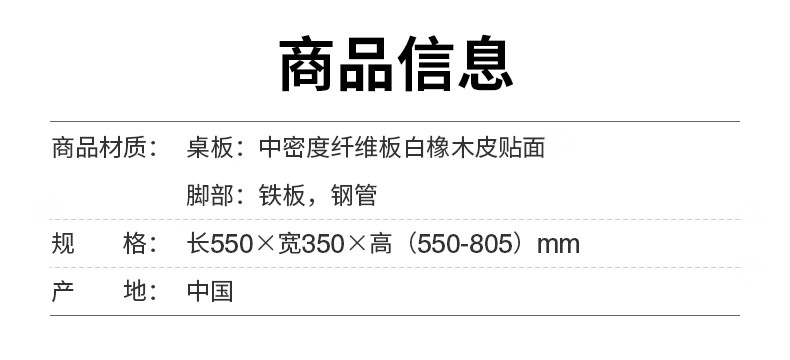 MUJI pneumatic lifting side table/wooden seat board bedside table office desk small table bedside table KBL5CC3A length 550*width 350*height (550-805)mm
