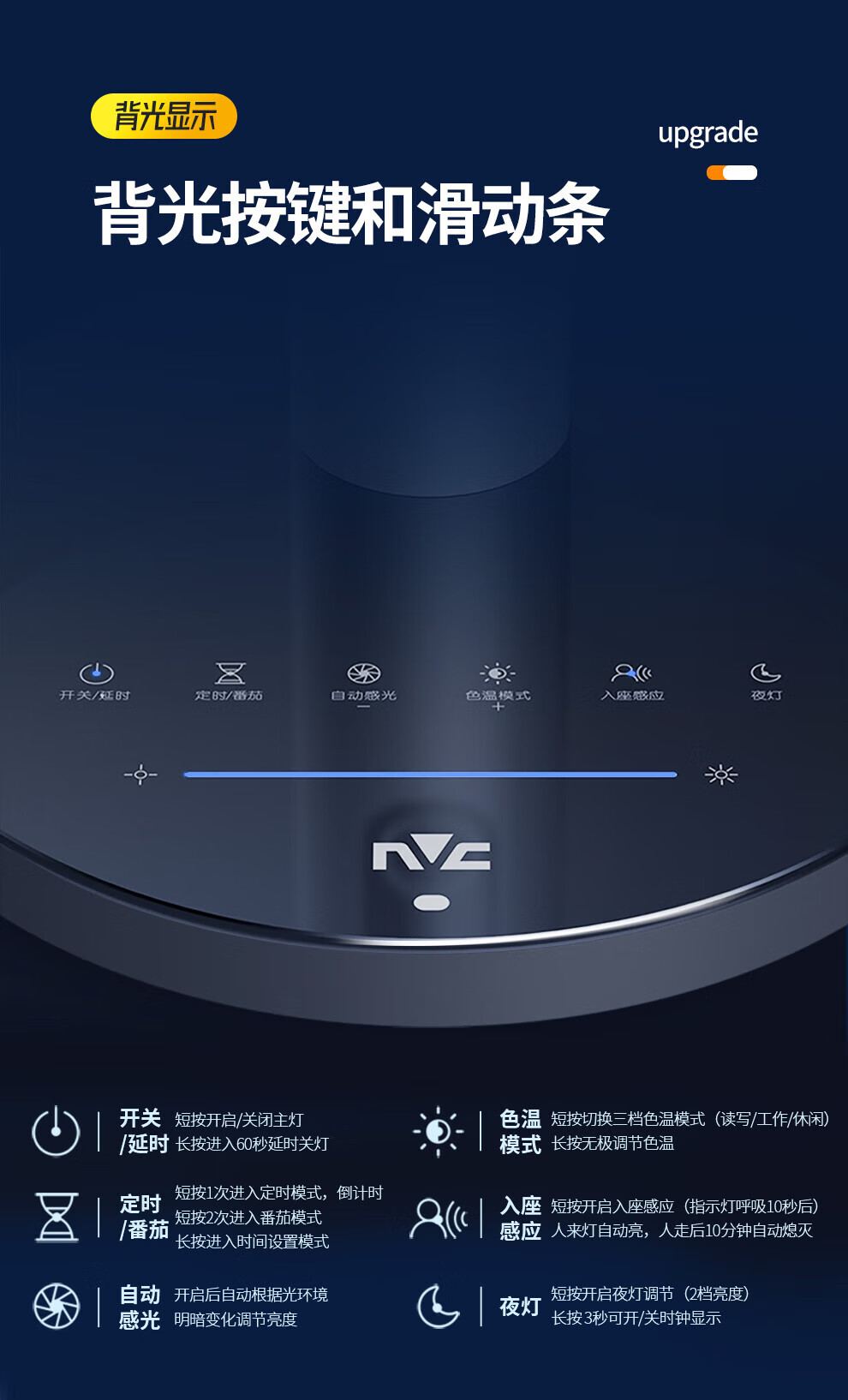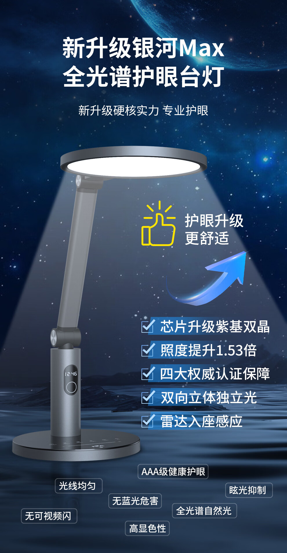 NVC National AA Level Seating Sensor Light LED Desk Lamp Eye Protection Study College Student Dormitory Children's Bedroom Reading Bedside Lamp Galaxy Max - AAA Level - Radar Sensing