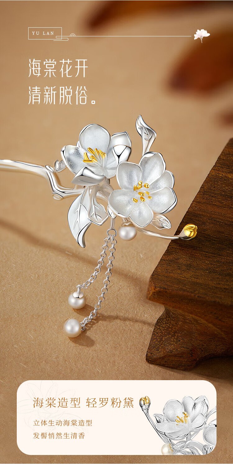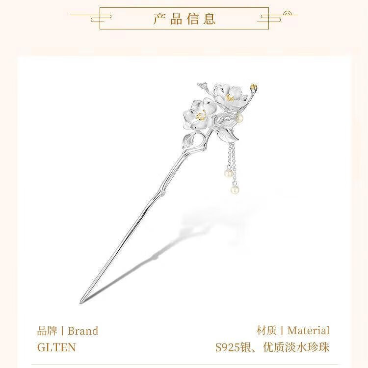 GLTEN Begonia Silver Hairpin for Women, Ancient Style Hairpin, Hanfu Headwear, Girl's Birthday Gift, Girls' Memorial Gift for Girlfriend and Wife, Ancient Style Hairpin + Ancient Style Gift Box