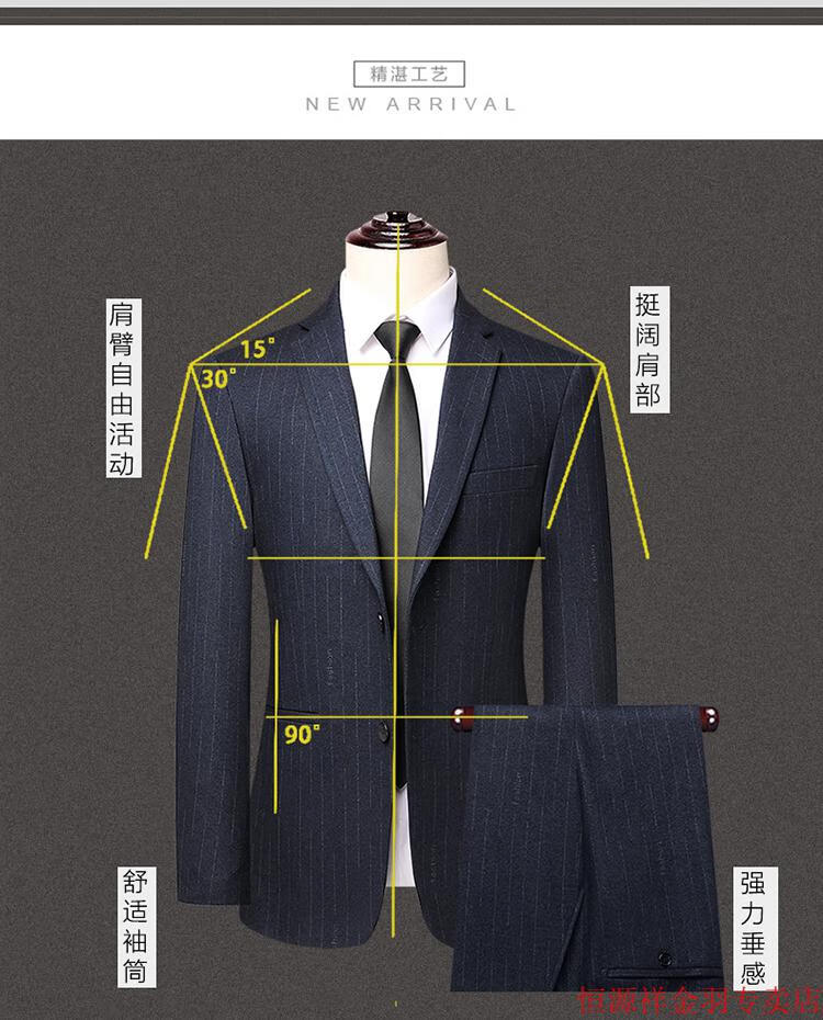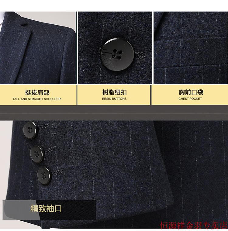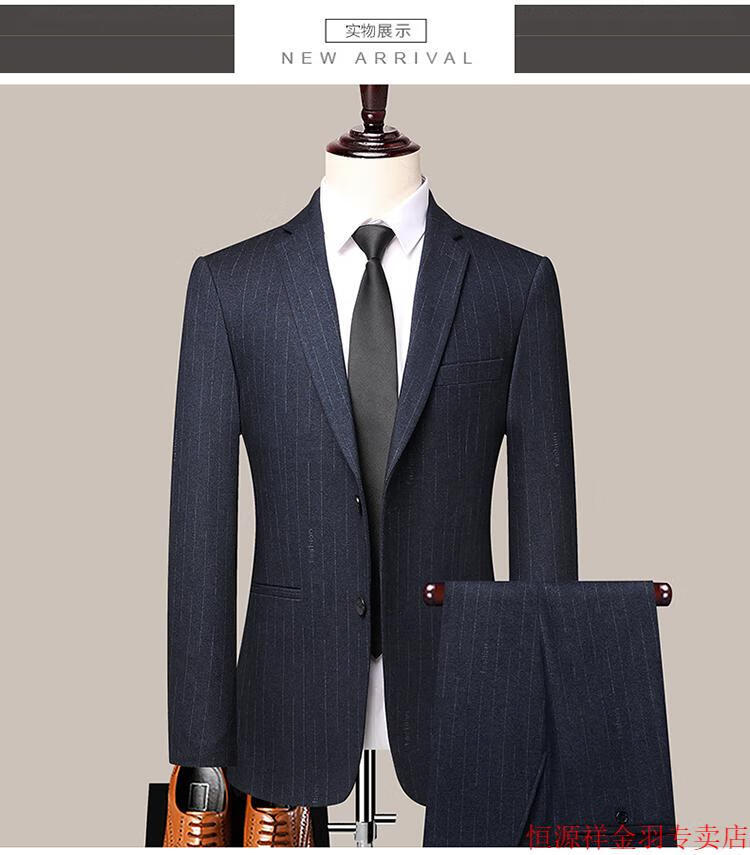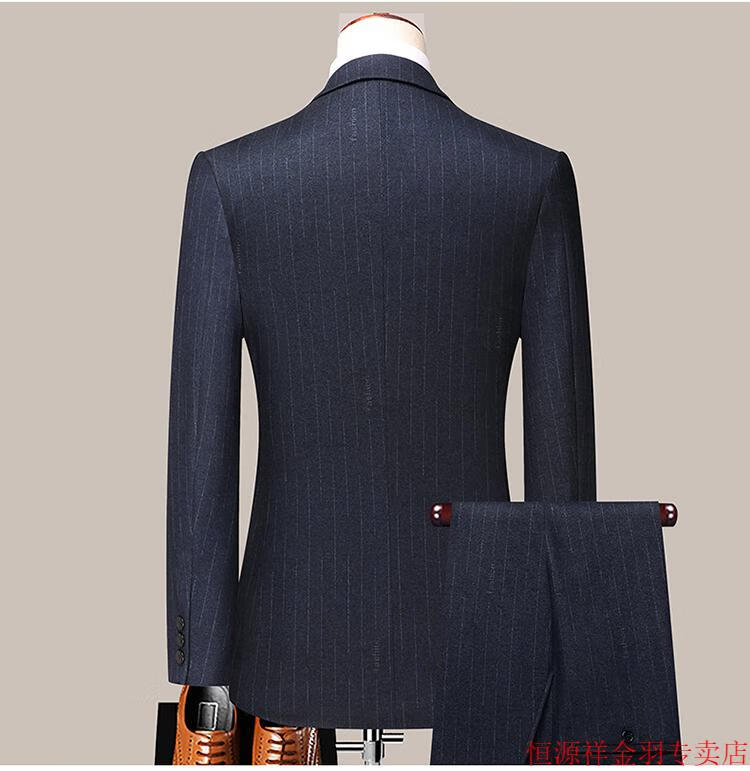 Hengyuanxiang Striped Suit Men's Autumn and Winter Business Men's Wear Middle-aged Formal Anti-wrinkle and Iron-Free Suit Blue Vertical Stripe 170 Code/M Code (105-125 Jin Jin equals 0.5 kg)