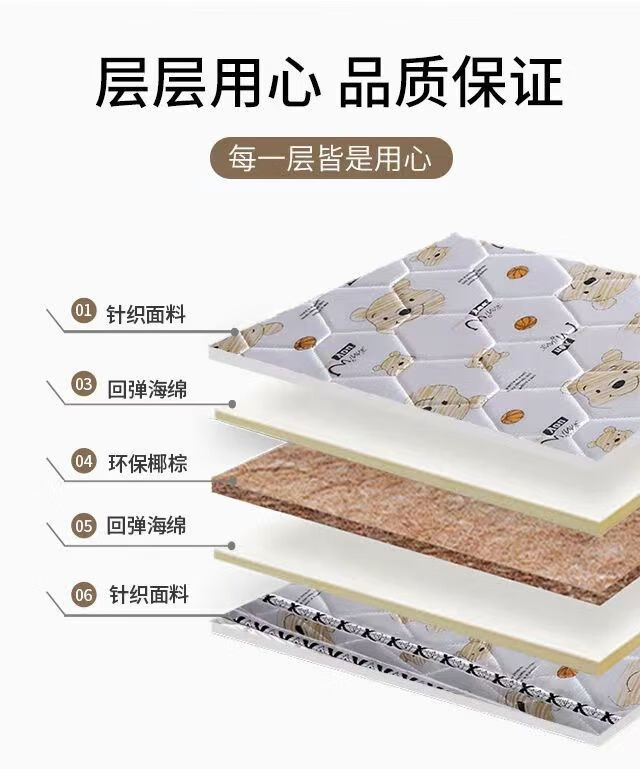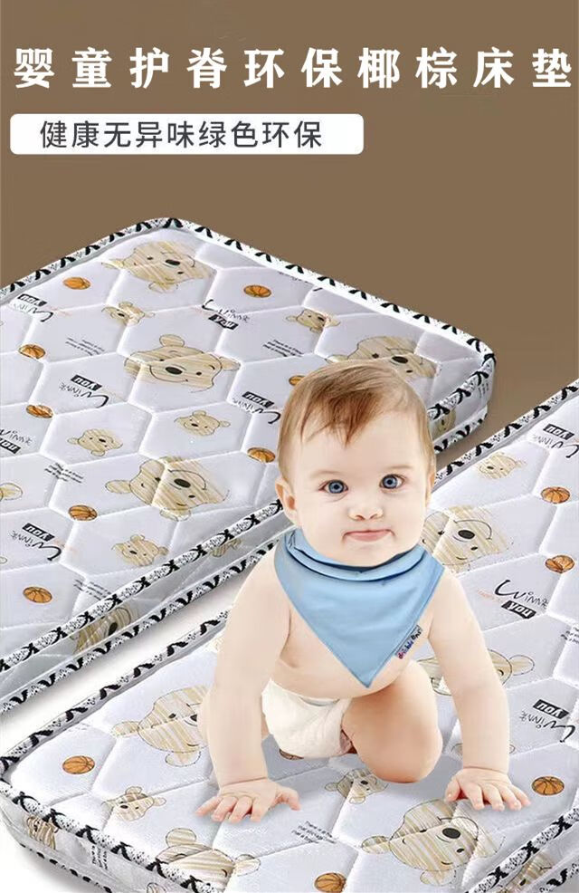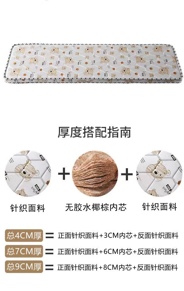 Children's mattress natural coconut palm baby spliced bed mattress crib palm mattress top and bottom palm bunk one-piece 4CM thick knitted bear (spine protector base 4 length 150cm*width 40cm