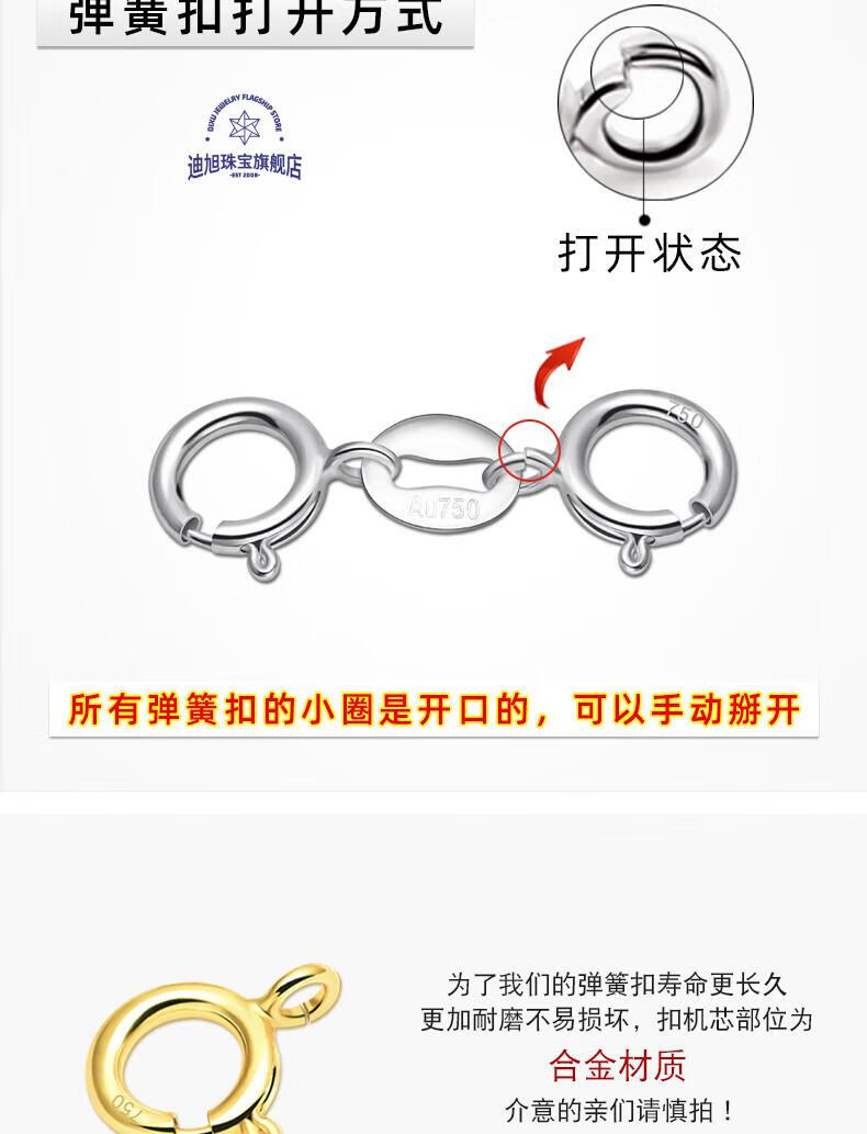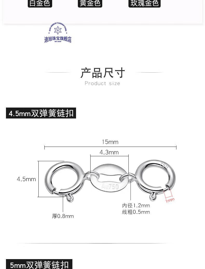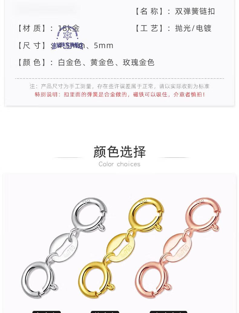 Fat Donglai's same 18/k gold connecting buckle head 18/K gold necklace buckle yellow/gold bracelet and anklet extension 4.5/mm double spring buckle (white gold)