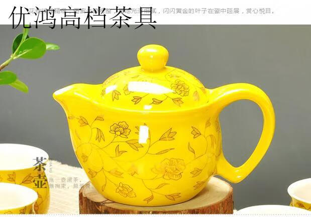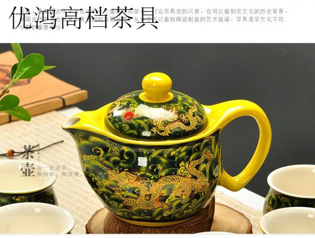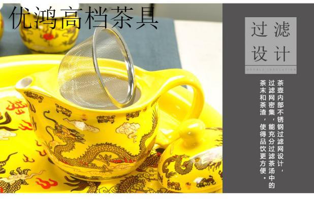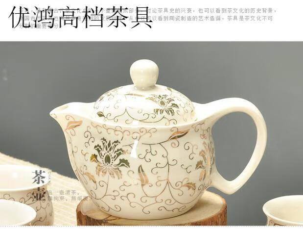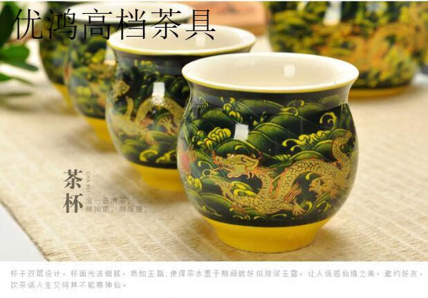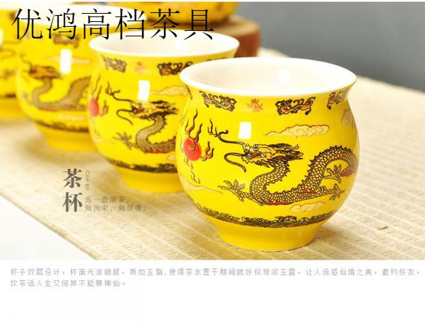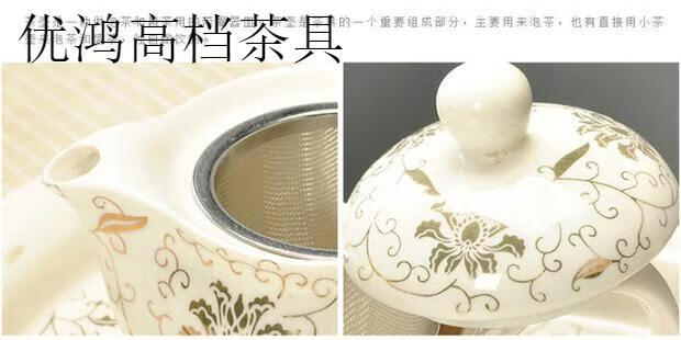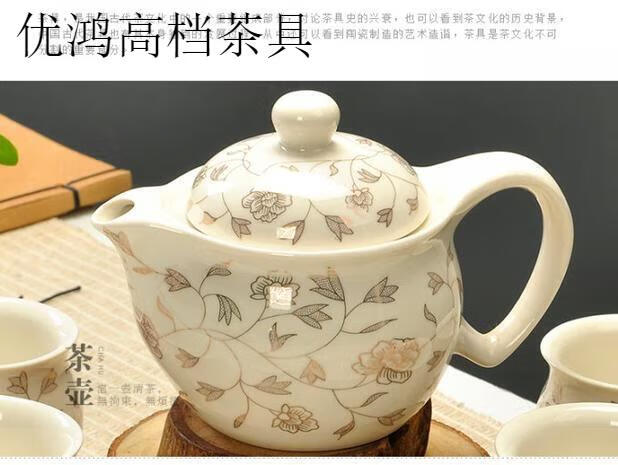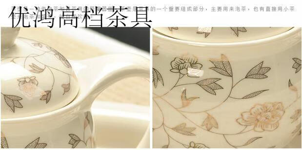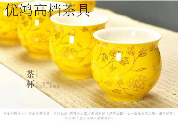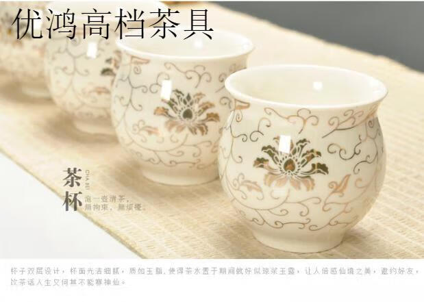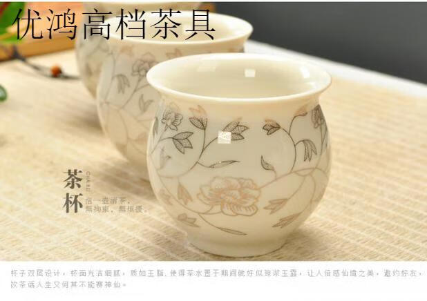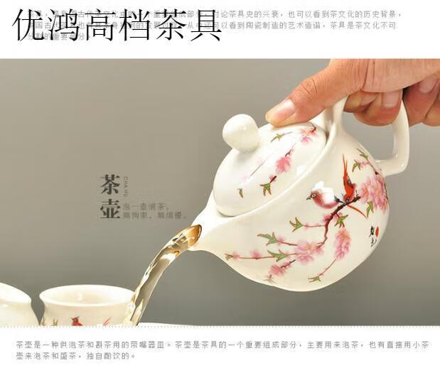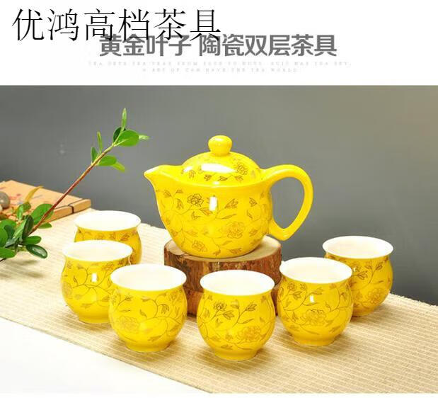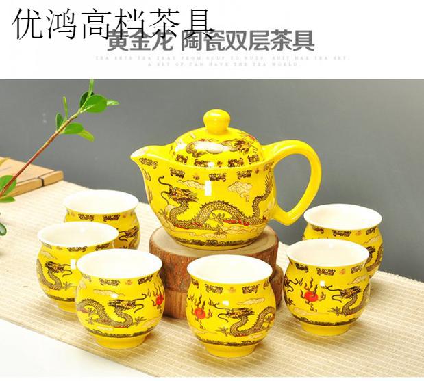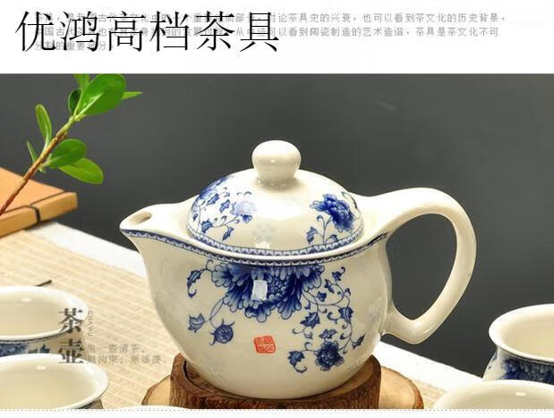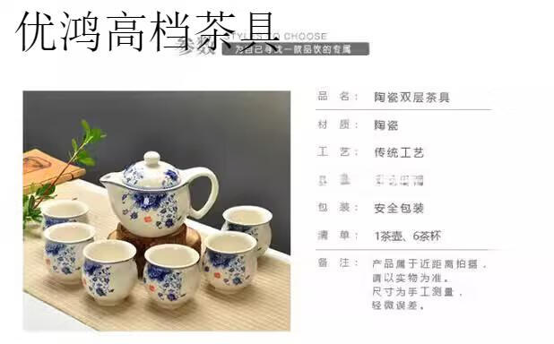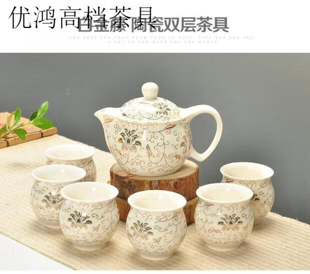 Jingdezhen high-end double-layer tea cup Kung Fu blue and white ceramic teapot with filter Double-layer tea cup Kung Fu tea set Peach Blossom-Double-layer tea set 7 pieces