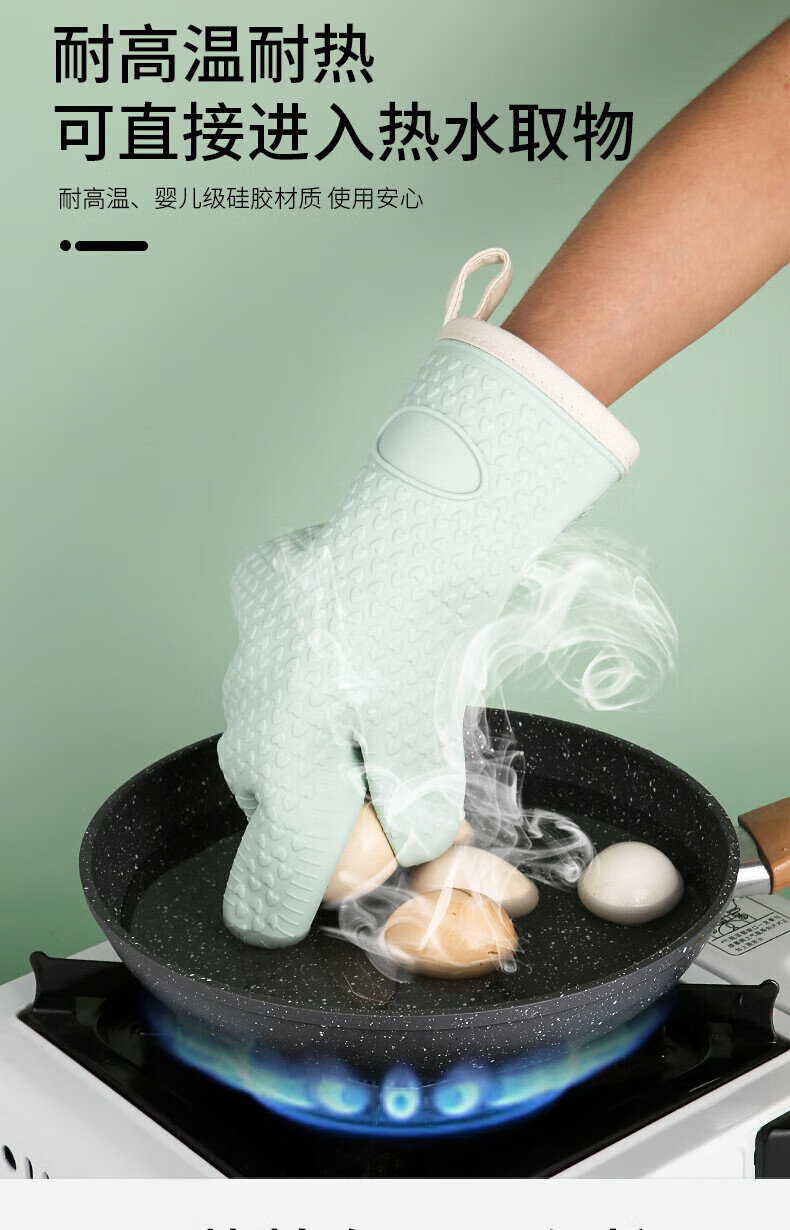 Rice harvesting anti-scalding gloves silicone high temperature resistant oven microwave oven special baking thickened insulation household chef steam oil-proof five-layer thickened silicone mint green two pack