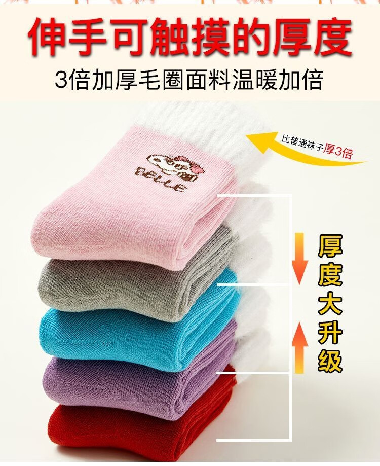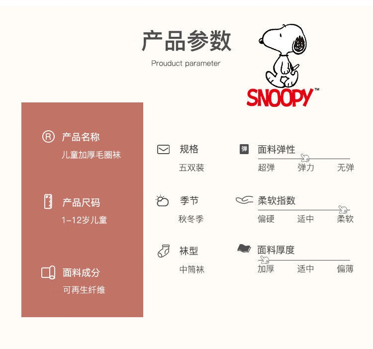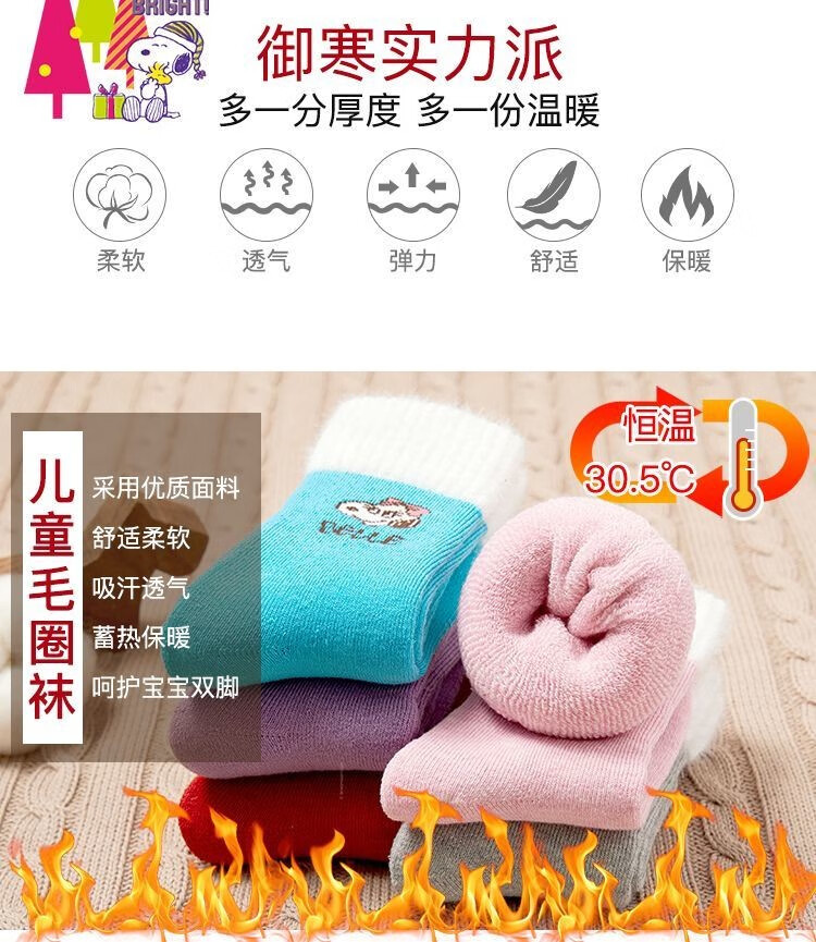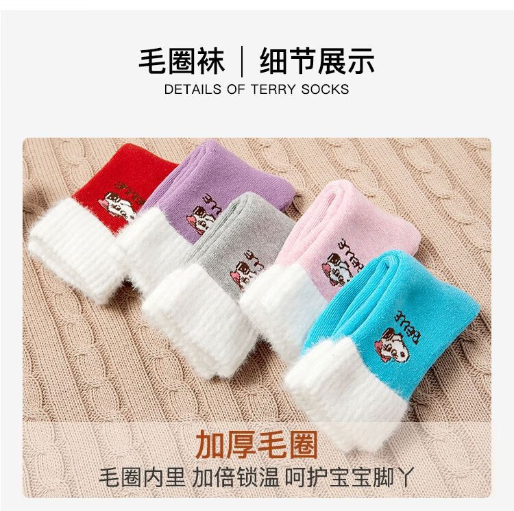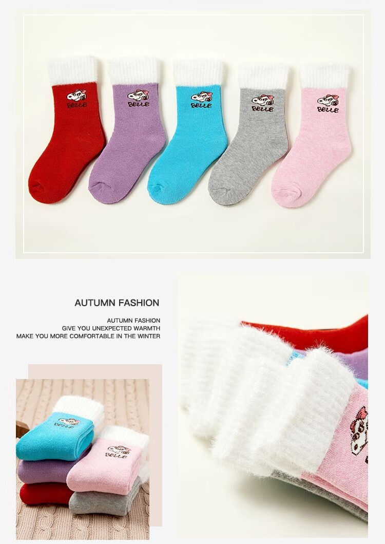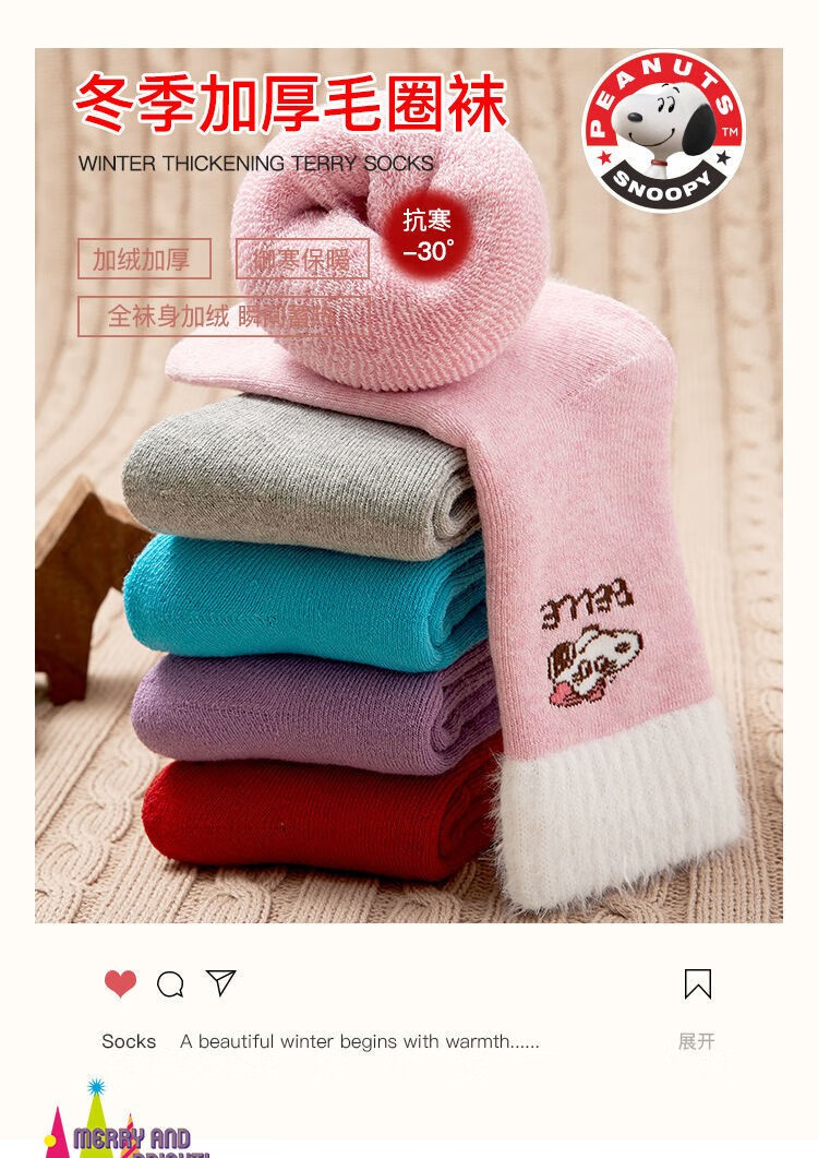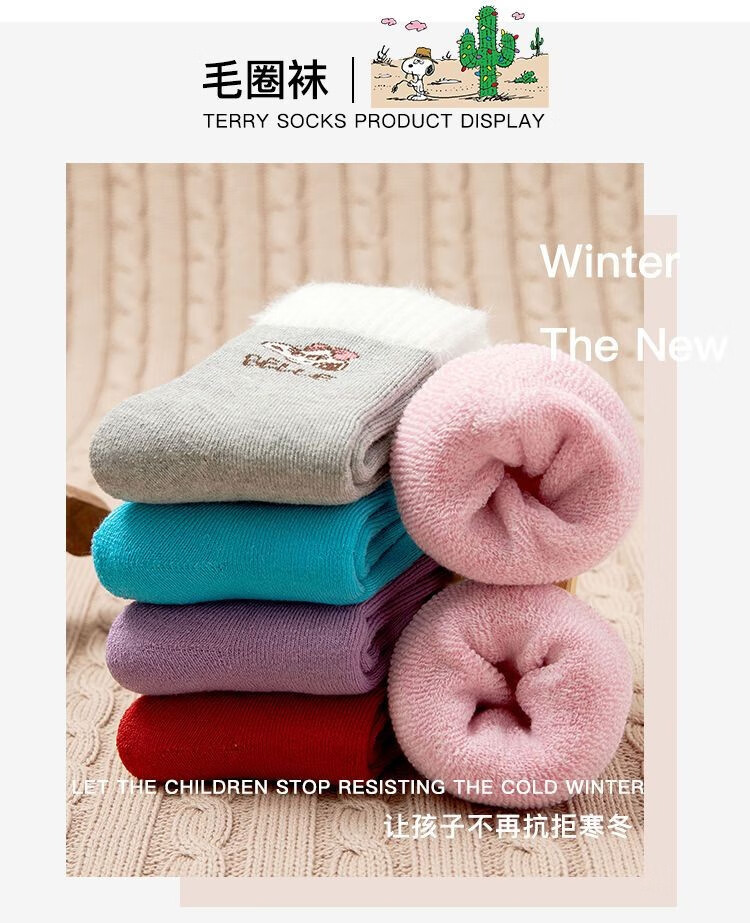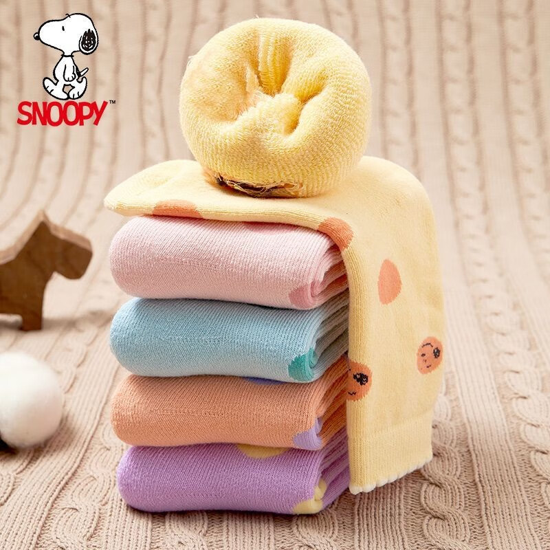 Snoopy (SNOOPY) thickened and velvet warm winter children's socks terry socks winter cartoon mid-high socks for girls and boys 5 pairs SNB-DM08 model thickened M size - recommended for 4-6 years old