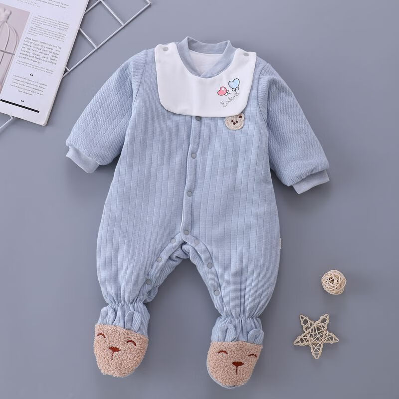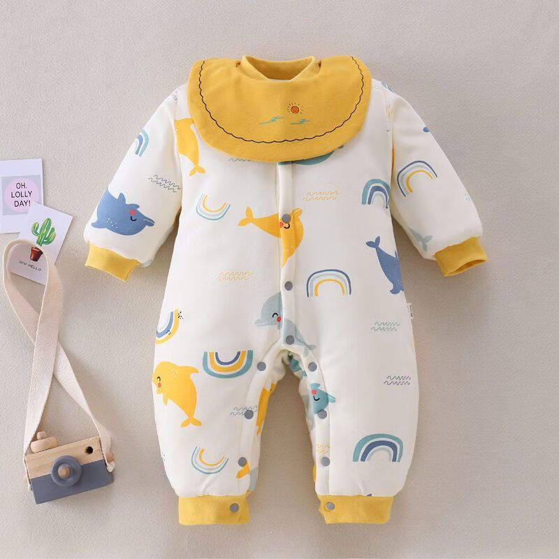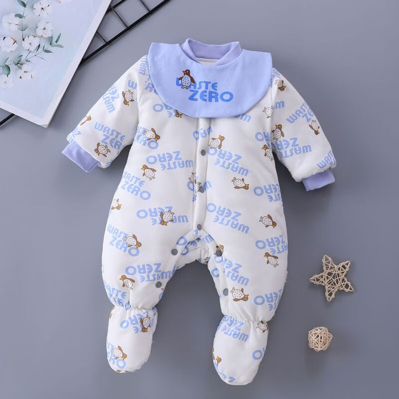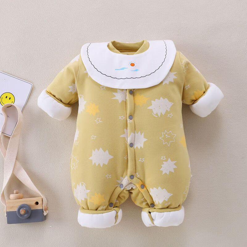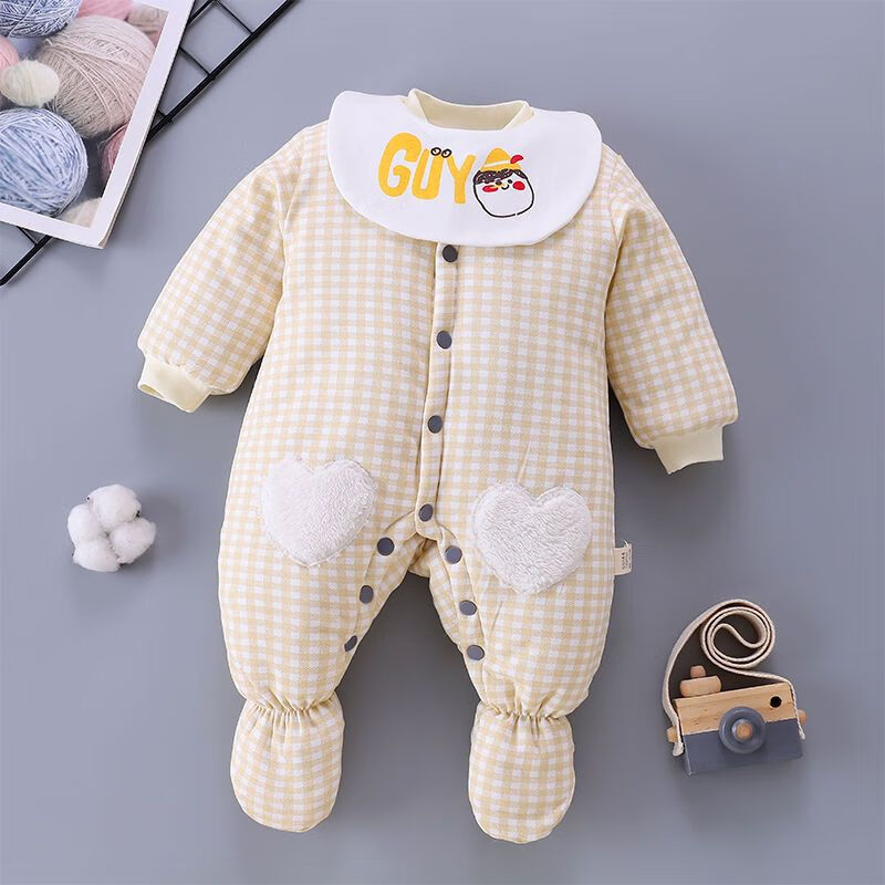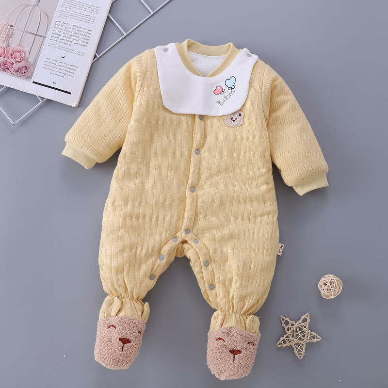 Disney (DISNEY) baby robe with feet covered, thickened quilted autumn and winter with feet, openable one-piece clothes for male and female babies, newborns and toddlers, yellow GUY feet covered, extra thick, size 80 recommended 16-20 Jin Jin equals 0.5 kg