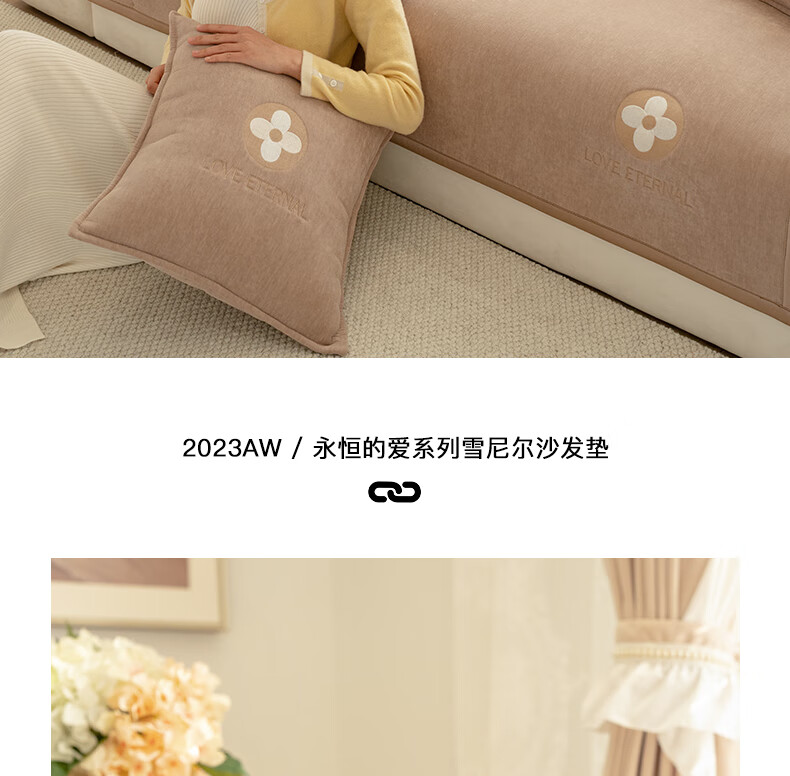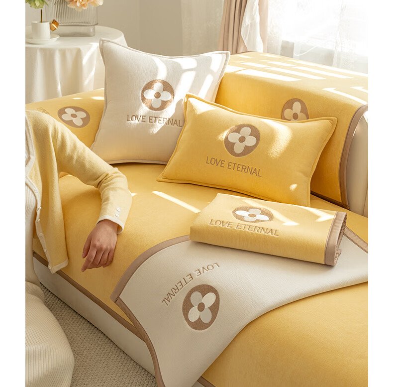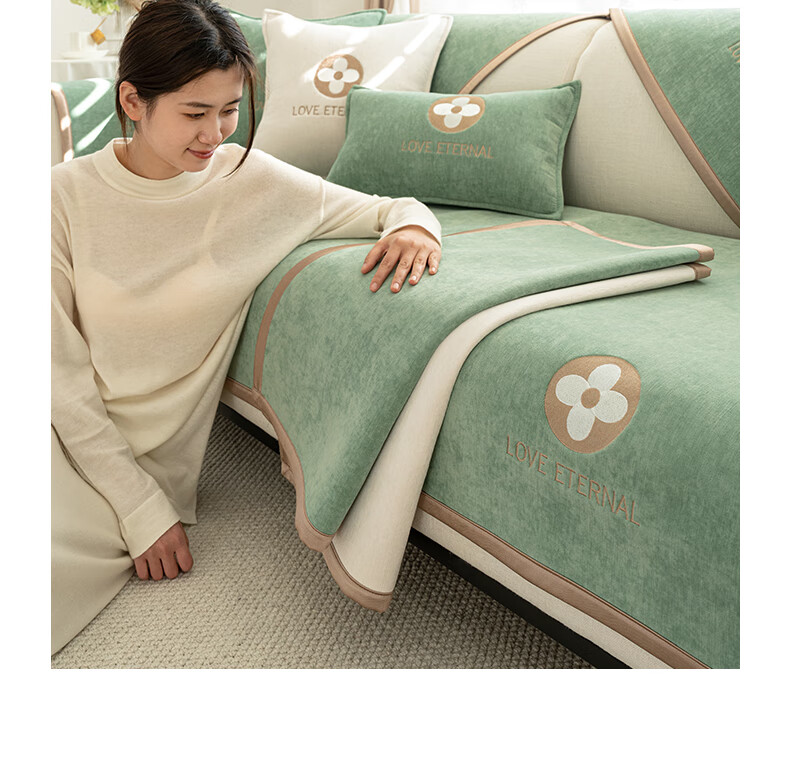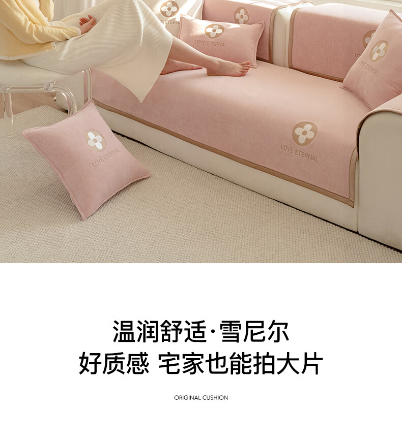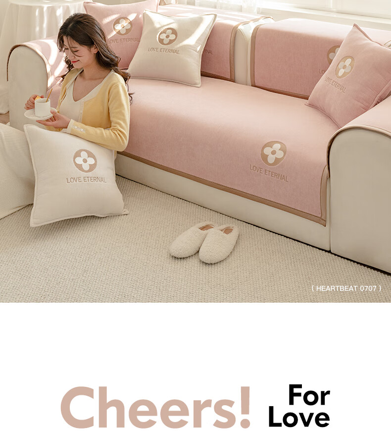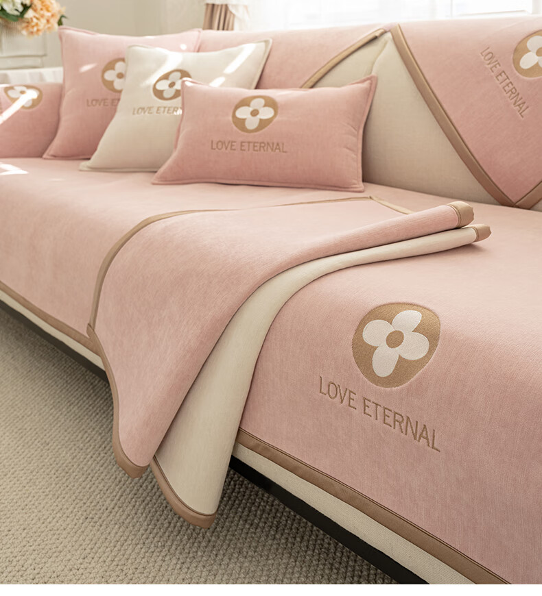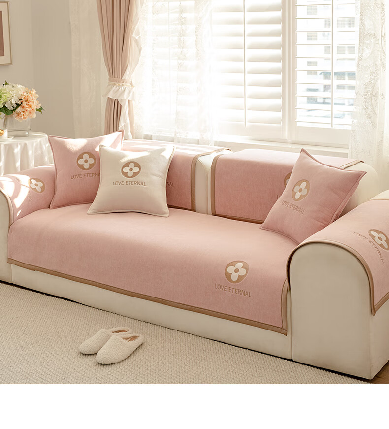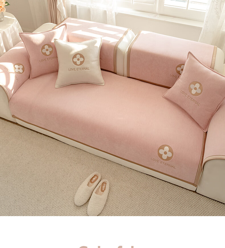 Chenille Sofa Cushion 2023 New Winter Pink Leather Sofa Cover Four Seasons Universal Seat Cushion Non-Slip Cover Sally-Sakura Pink 110*240