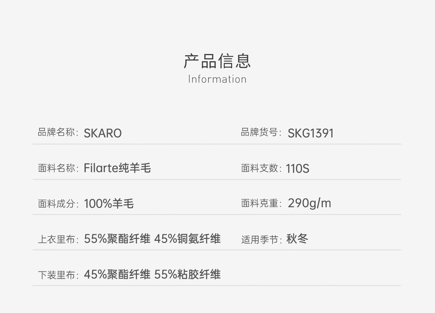 SKARO Italian Filarte pure wool gray coffee suit men's autumn and winter business wedding suit gray coffee SKG1391A 50
