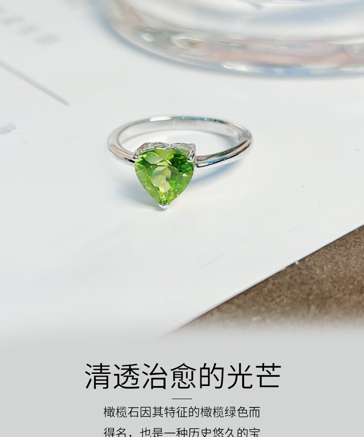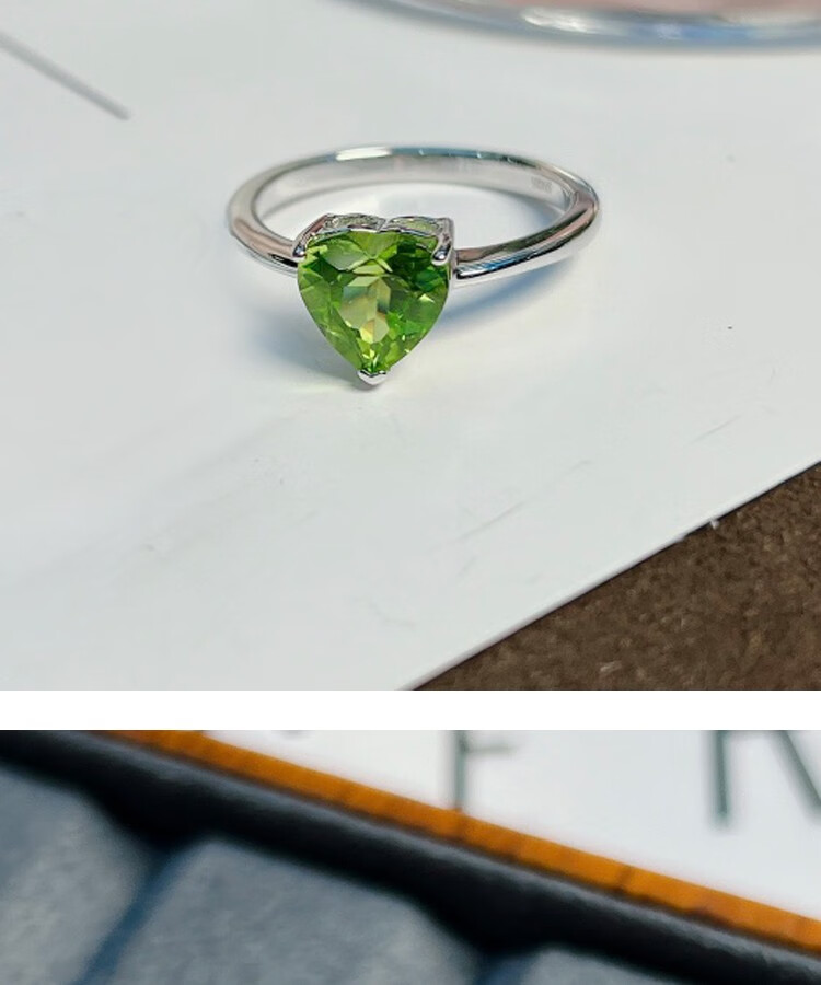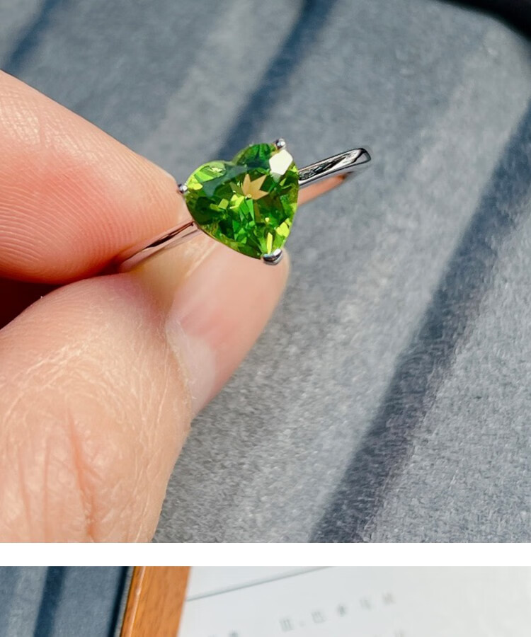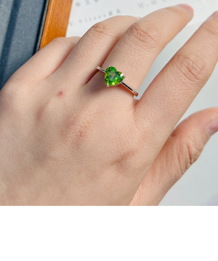 CAJJ Francois peridot heart-shaped ring for women, natural colored gems, jewelry gemstones, 925 silver inlaid fashion jewelry, gift, heart-shaped ring, size 13