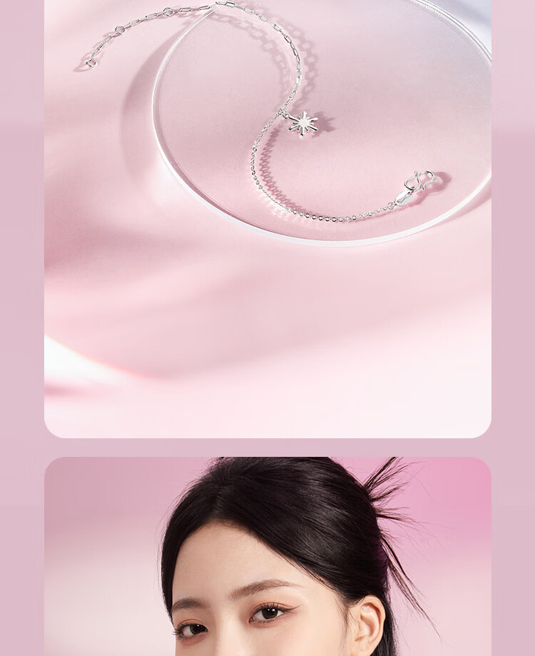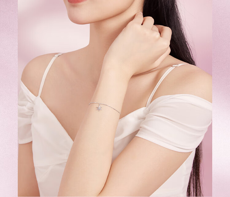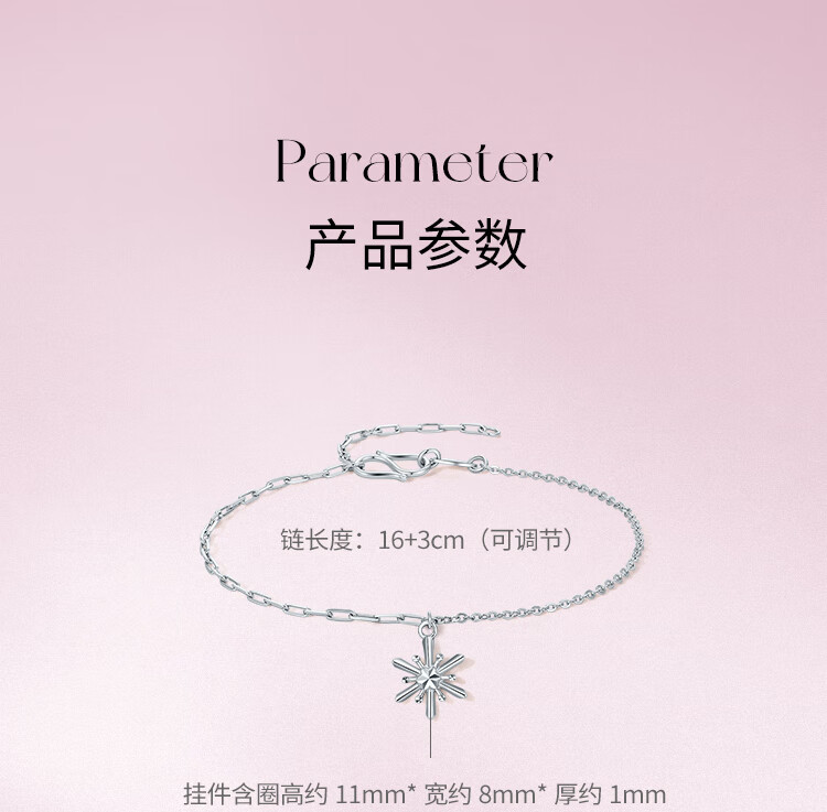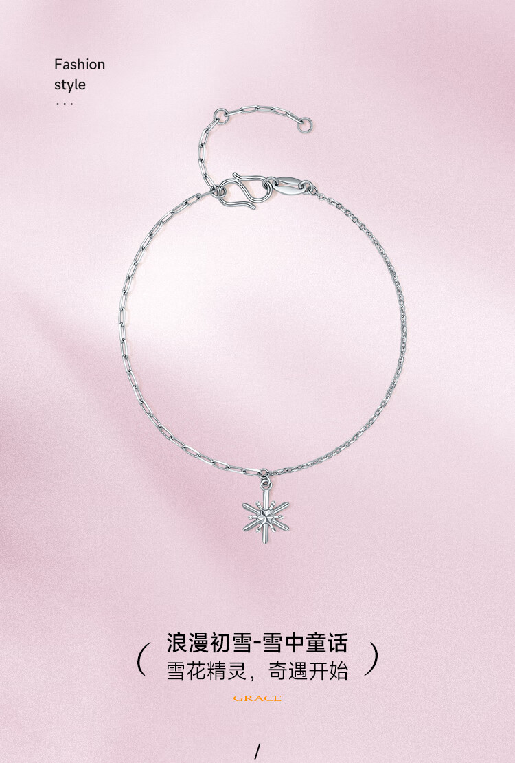 Saturday Blessing Platinum Bracelet Women's Pt950 Platinum Small Snowflake Shiny Simple Bracelet for Girlfriend T 16+3cm-2.14g