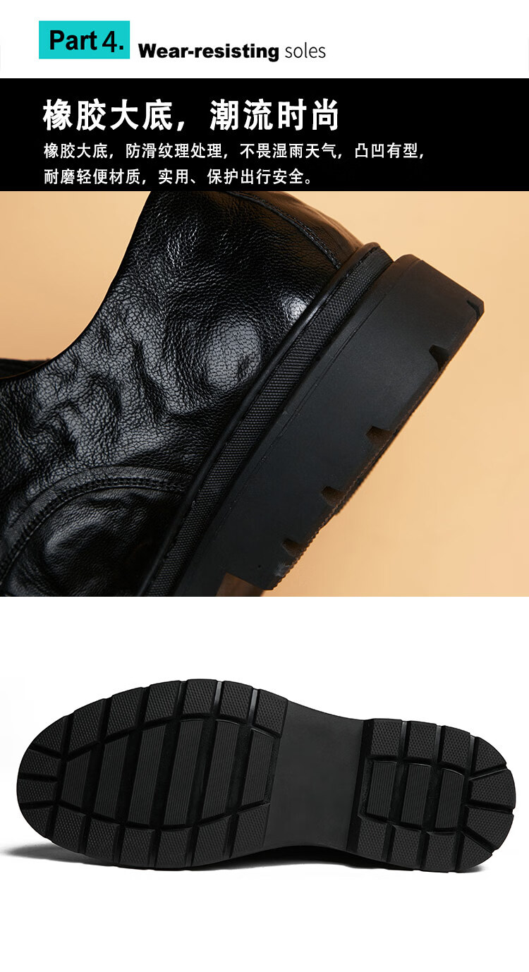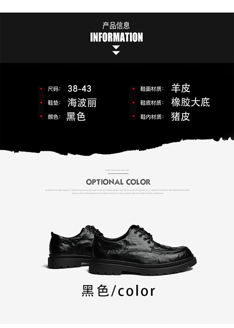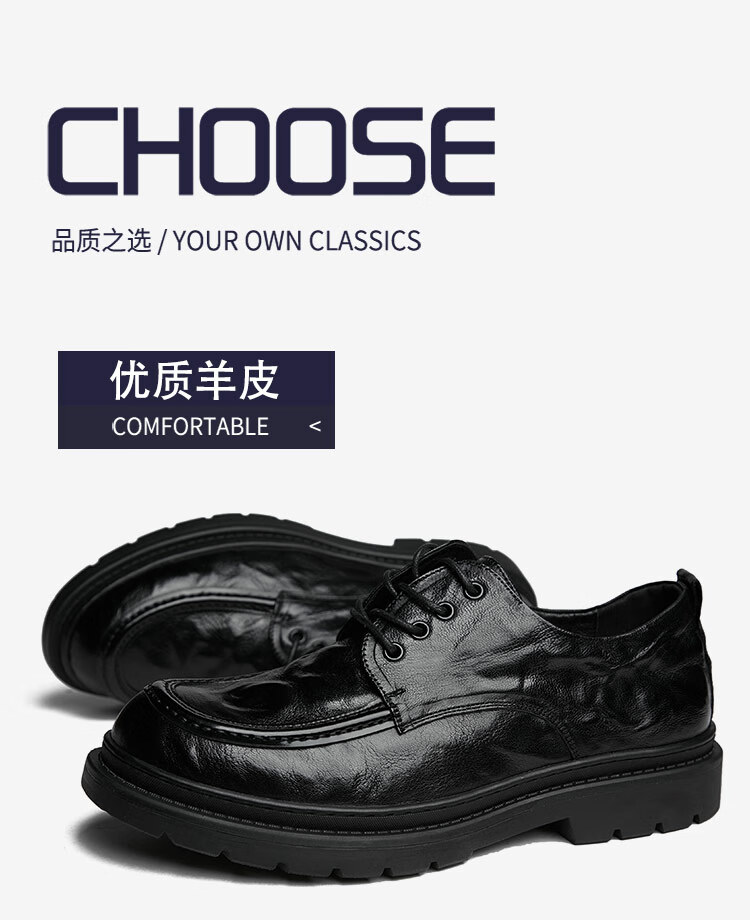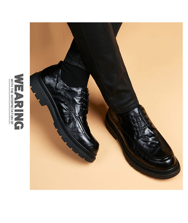 Woodpecker spring and autumn new men's shoes business casual leather shoes thick-soled leather shoes large leather shoes men's wide-head men's leather shoes black 37