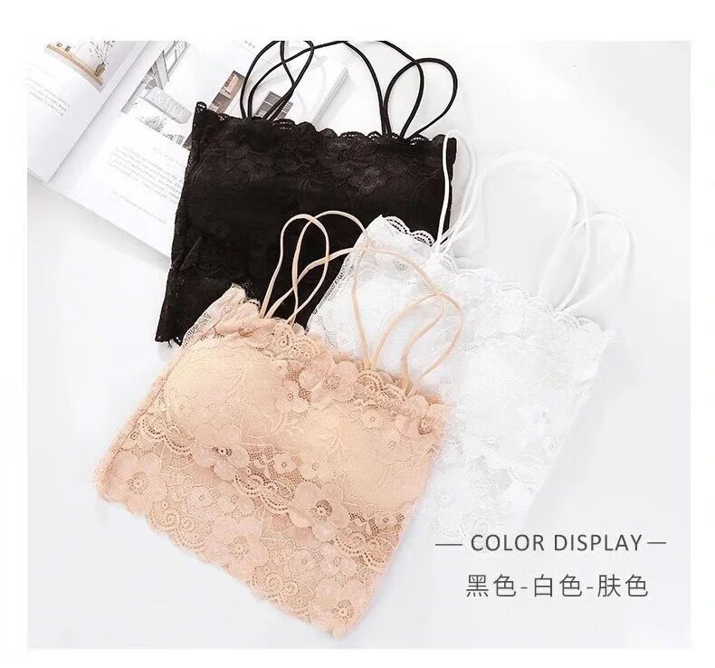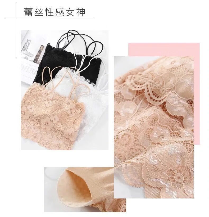 LangSha Lace Tube Top Anti-exposure Underwear Women's Chest Wrapped Students Korean Style Sexy Beautiful Back Bottoming Camisole Women's Thin Style Black + White 2-piece Pack One Size Large Size 95-120Jin Jin is equal to 0.5 kg