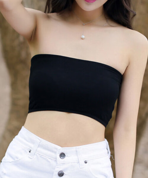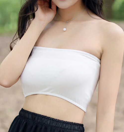 SKONWAT cotton strapless, versatile solid color one-piece bottoming anti-exposure tube top for women, white M 90-120 Jin Jin equals 0.5 kg