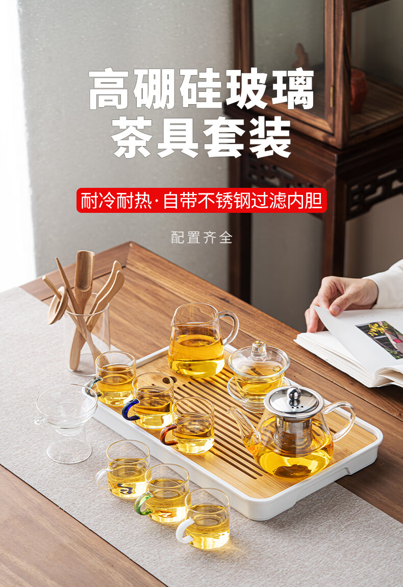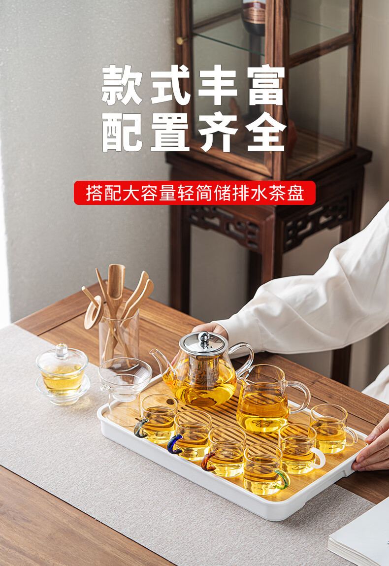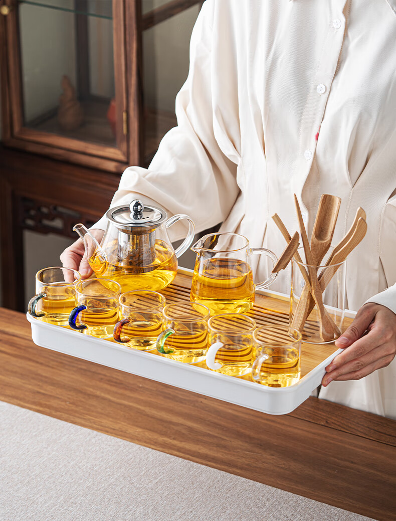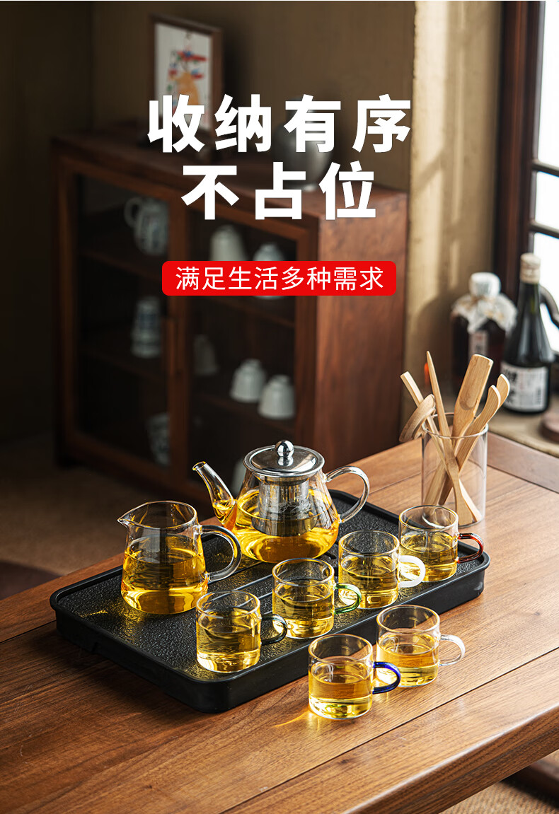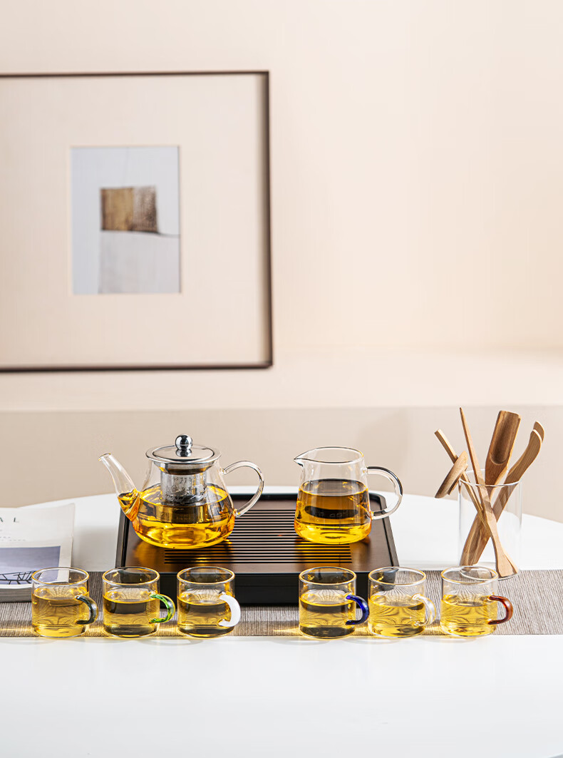 Haozun glass teapot tea set complete set high borosilicate heat-resistant elegant small teacup 6-color thickened tea tray food grade Bajun pot + transparent cup five-piece set + small square plate
