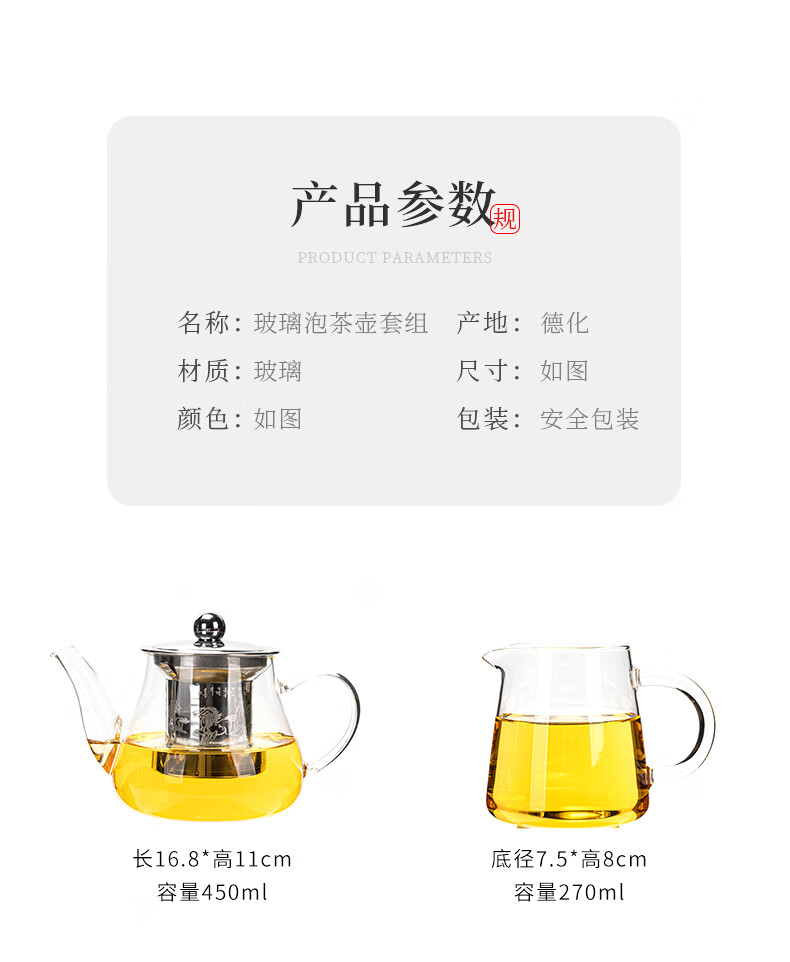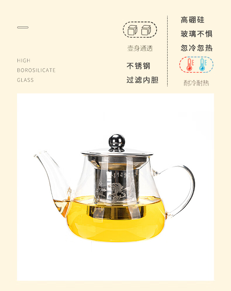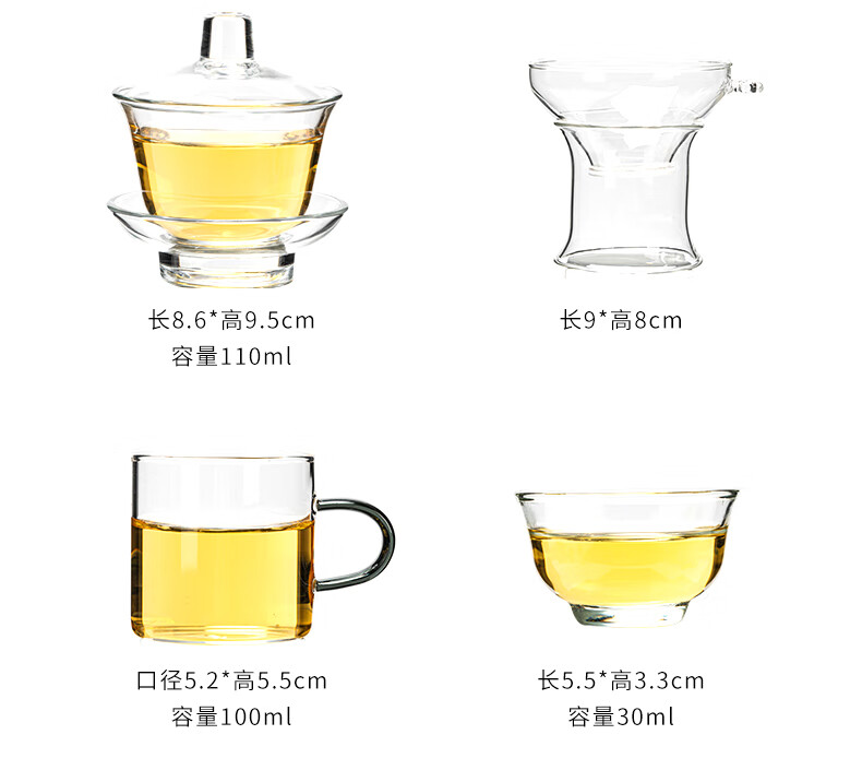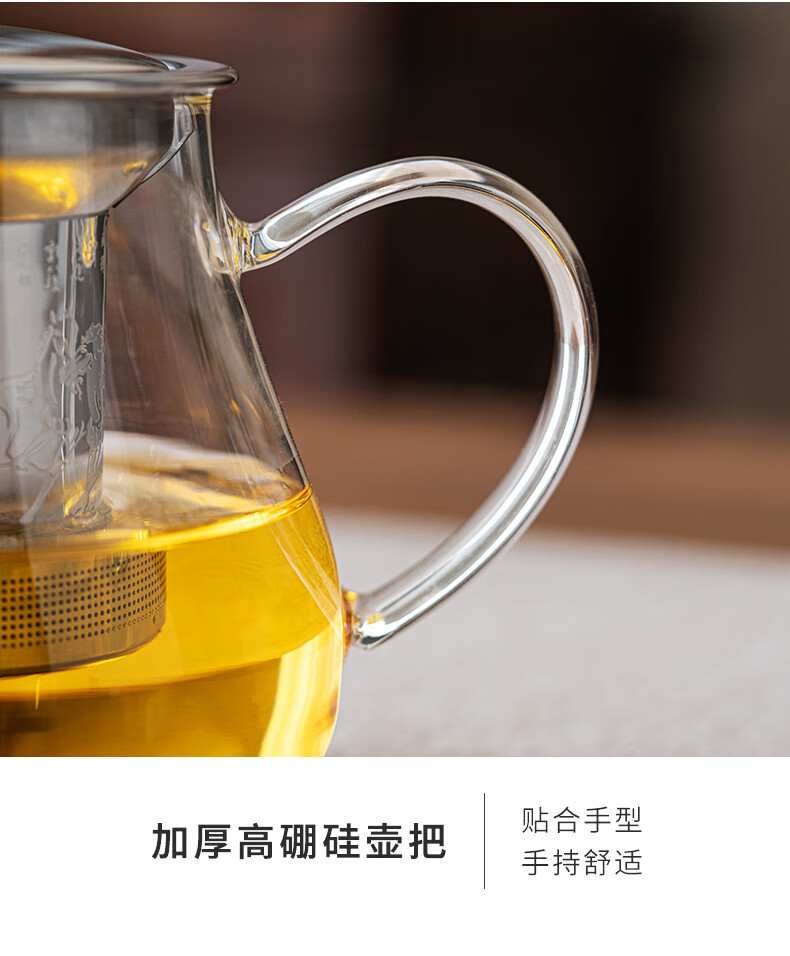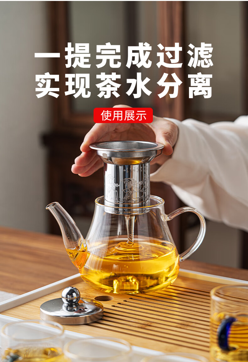 Haozun glass teapot tea set complete set high borosilicate heat-resistant elegant small teacup 6-color thickened tea tray food grade Bajun pot + transparent cup five-piece set + small square plate