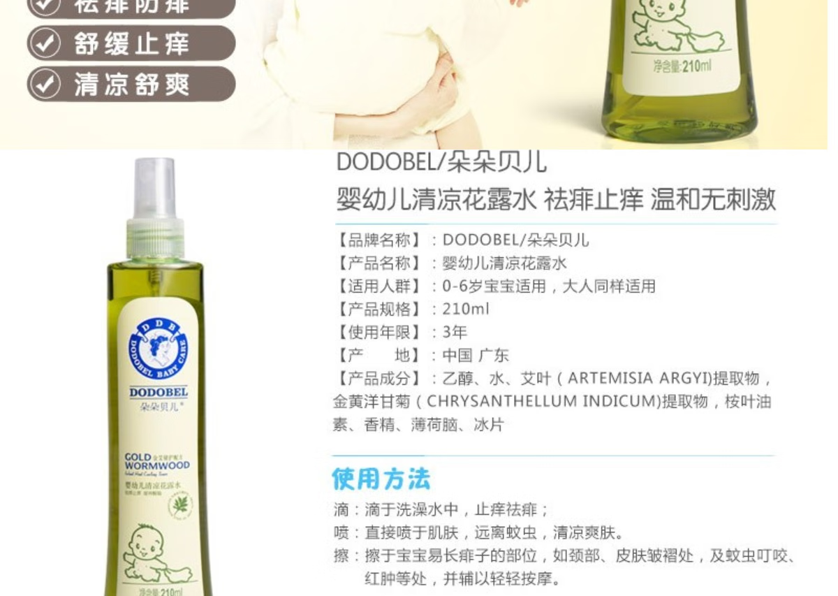 Duoduo Belle Duoduo Belle baby toilet water Duoduo Belle infants and young children cooling toilet water prickly heat spray cooling toilet water 210ml two bottles