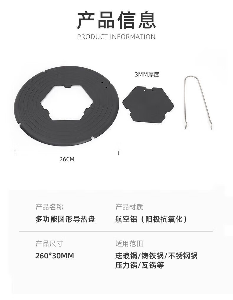 CLCEY removable heat conduction plate gas stove pot bottom anti-burning black pot guard plate household thawing multi-functional heat conduction plate 26cm removable upgraded model aviation aluminum material