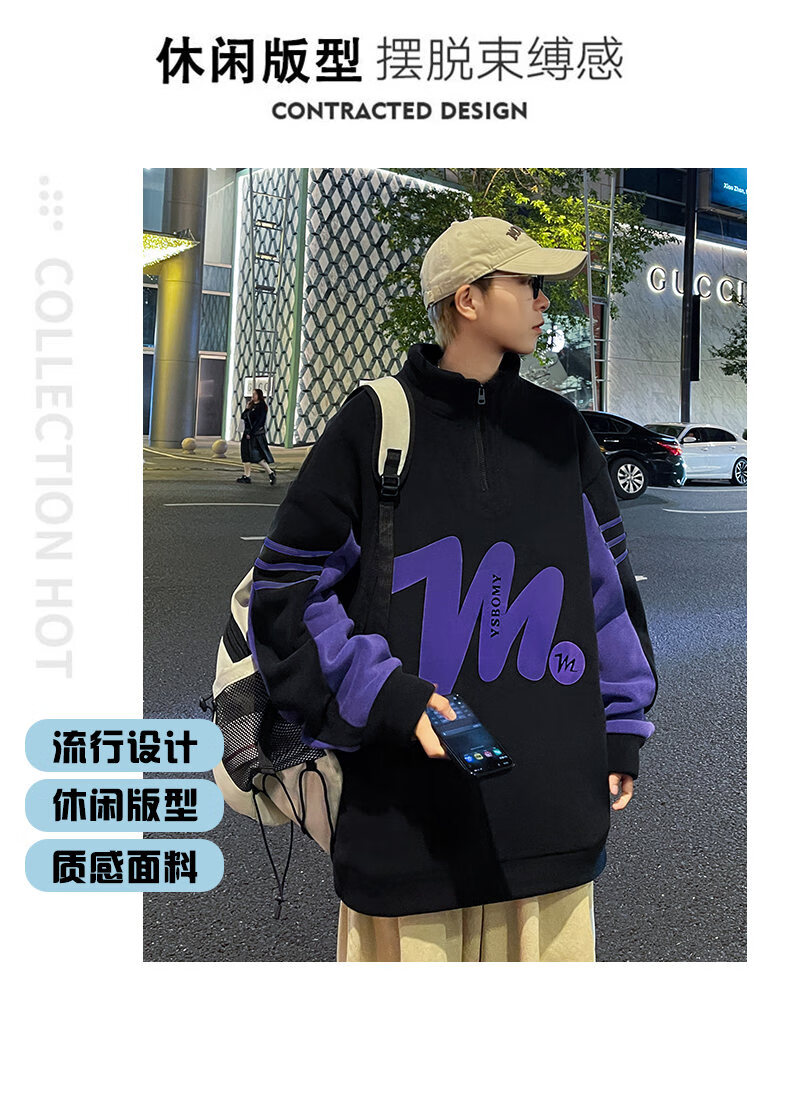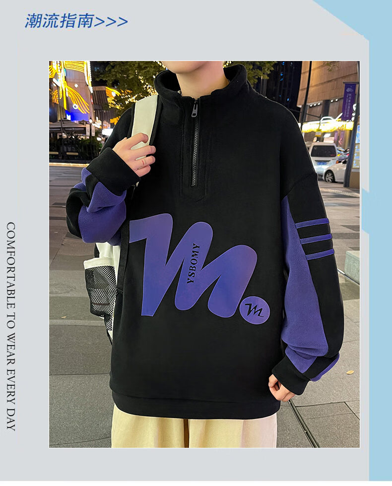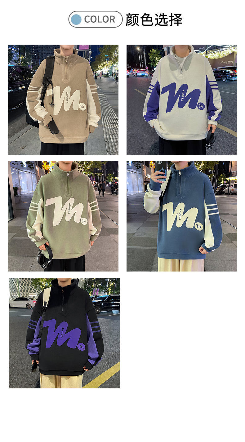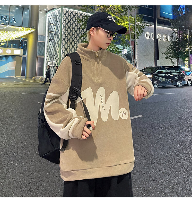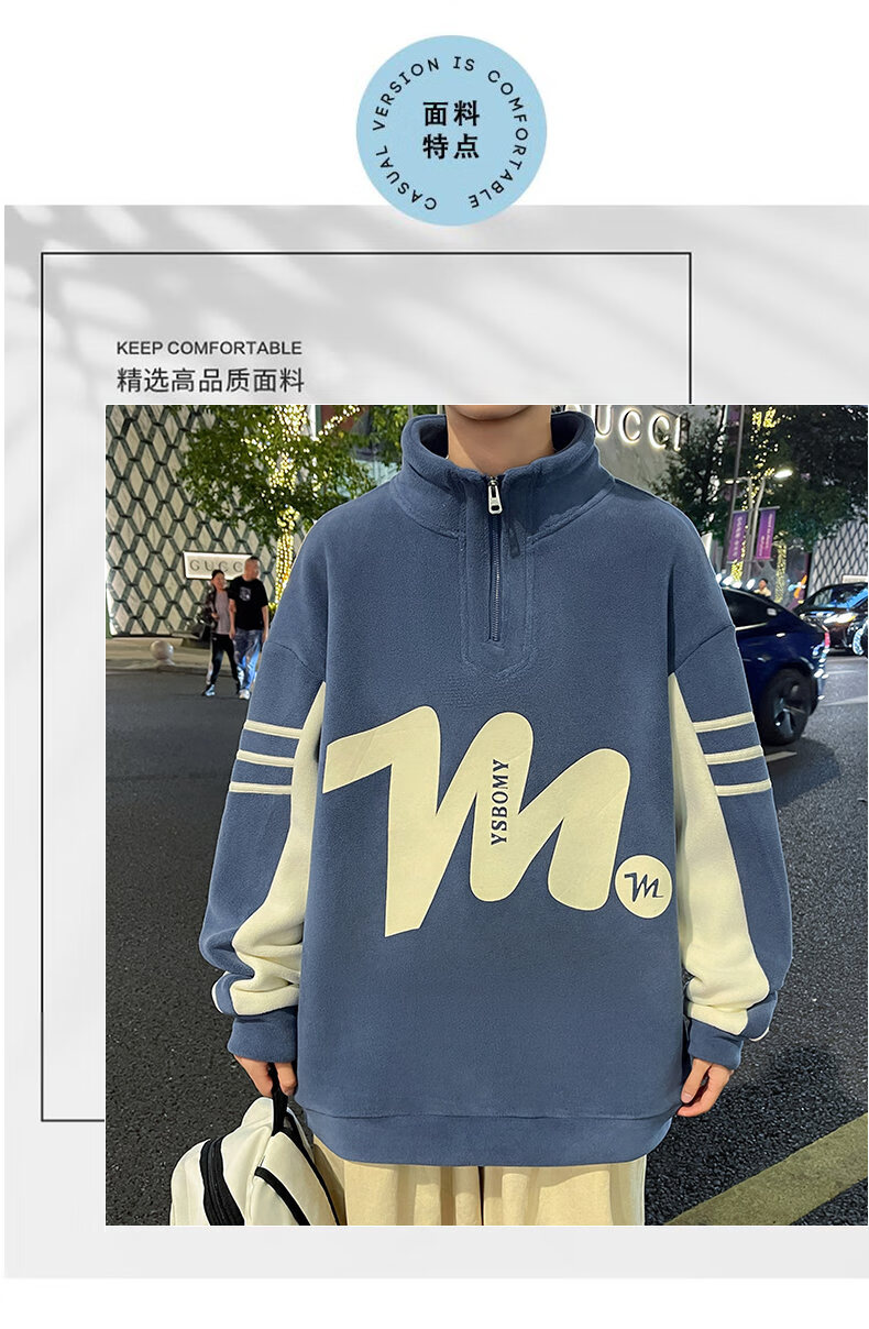 Peter Gordon Winter Youth Handsome Half-Turtle Collar Ol' Velvet Sweater for Boys 12-17 Years Old, Velvet Thickened Long-sleeved Bottoming Shirt, Off-White Double-sided Velvet Top L 95-115Jin Jin is equal to 0.5 kg