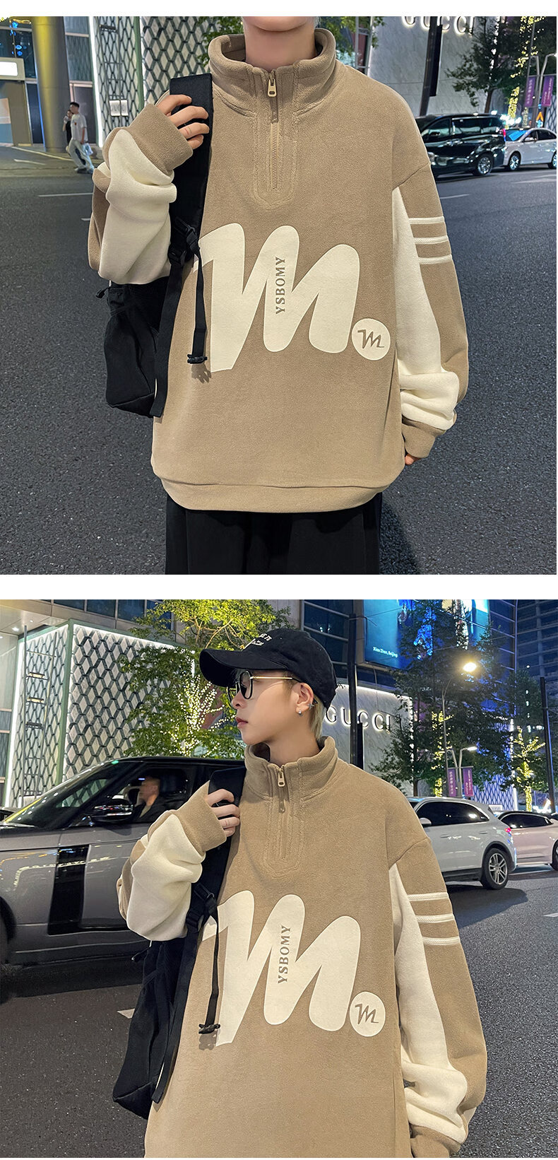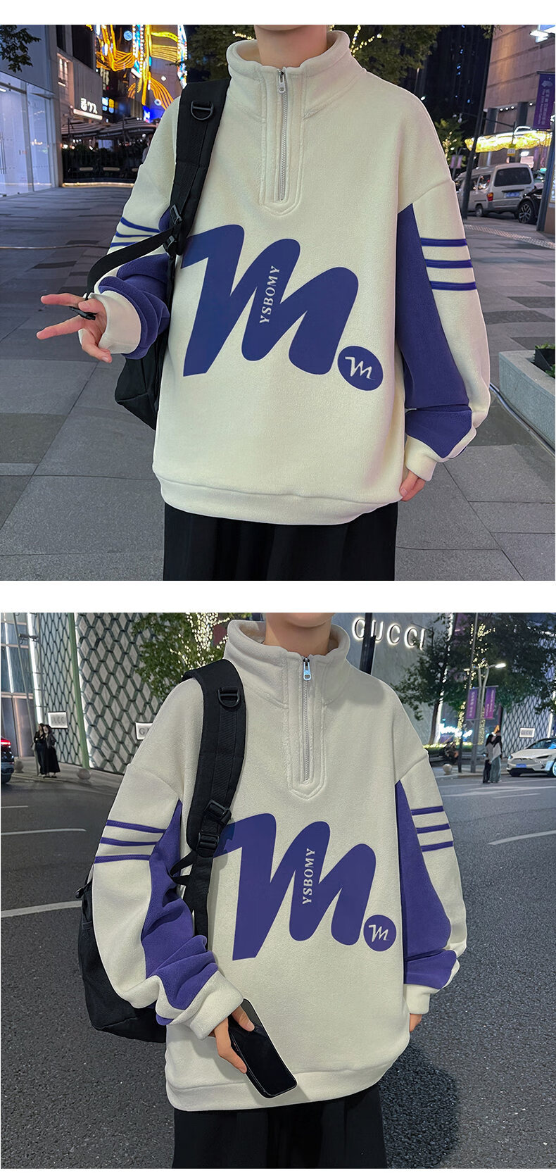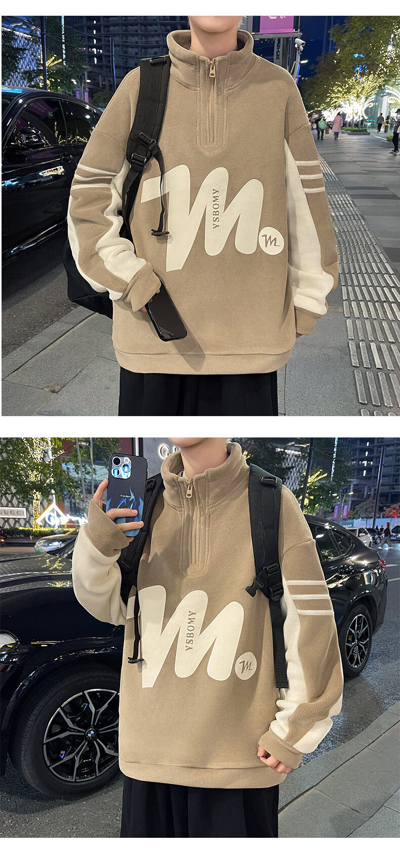 Peter Gordon Winter Youth Handsome Half-Turtle Collar Ol' Velvet Sweater for Boys 12-17 Years Old, Velvet Thickened Long-sleeved Bottoming Shirt, Off-White Double-sided Velvet Top L 95-115Jin Jin is equal to 0.5 kg