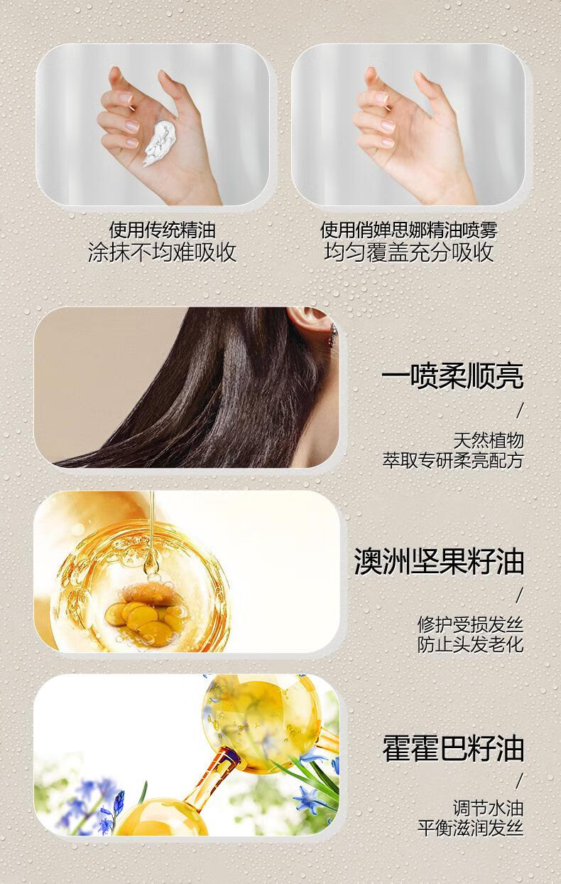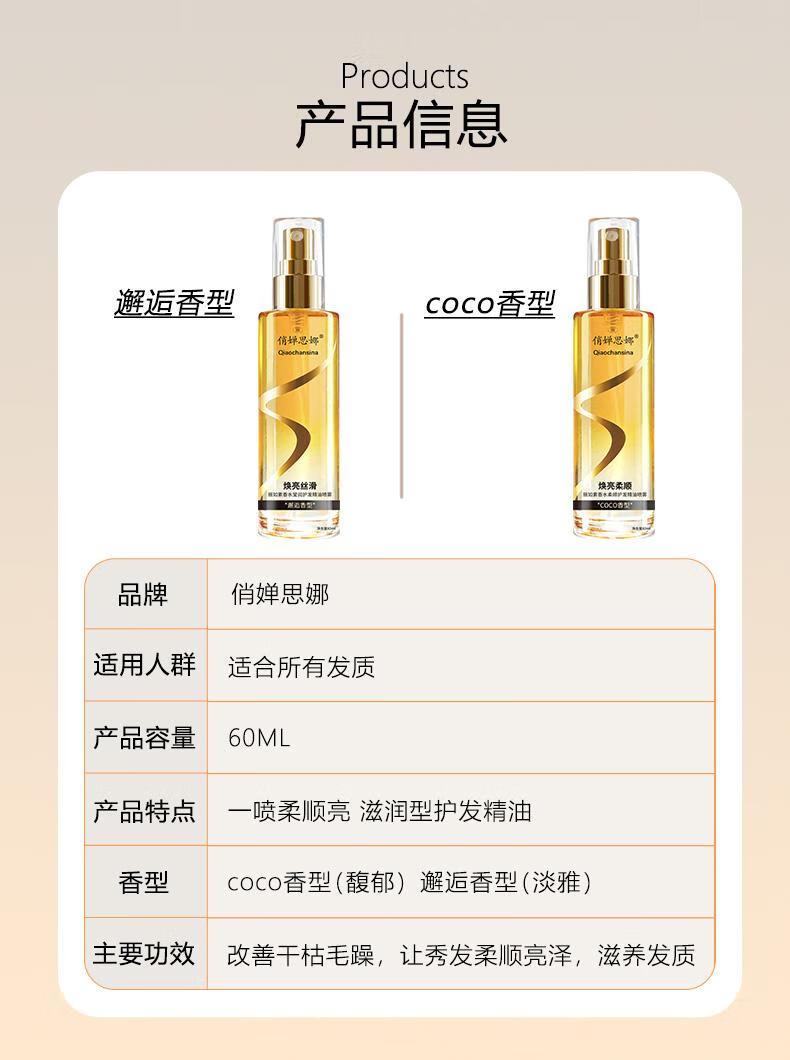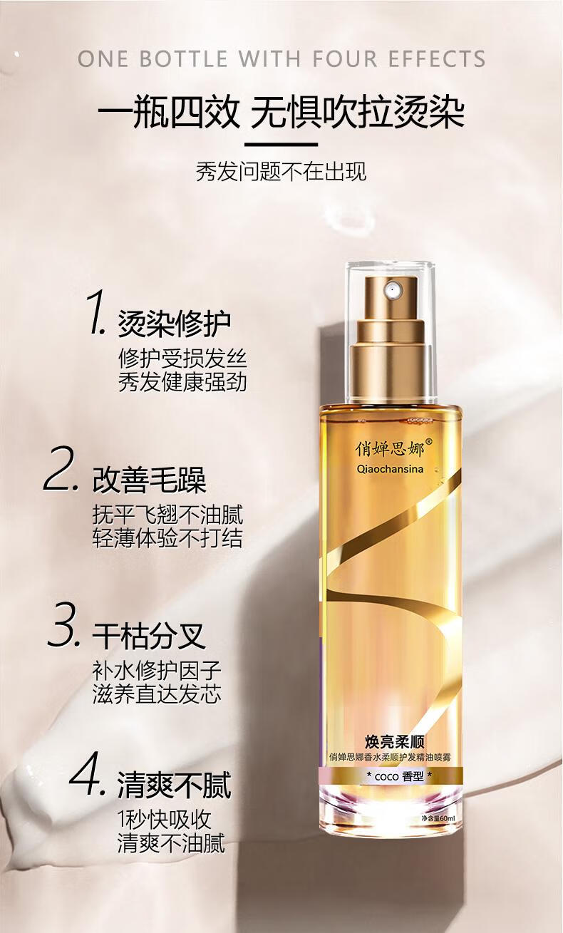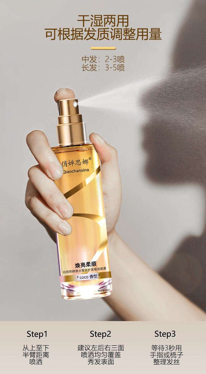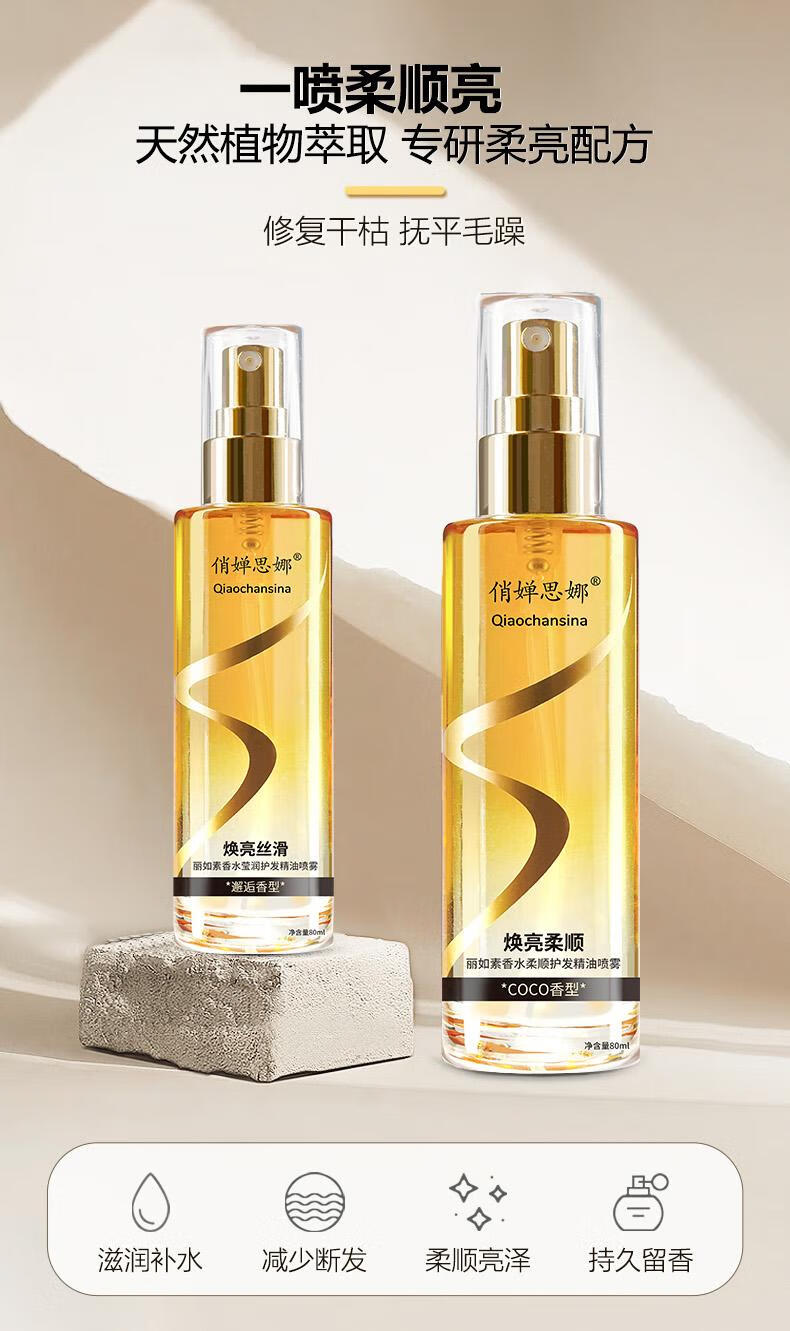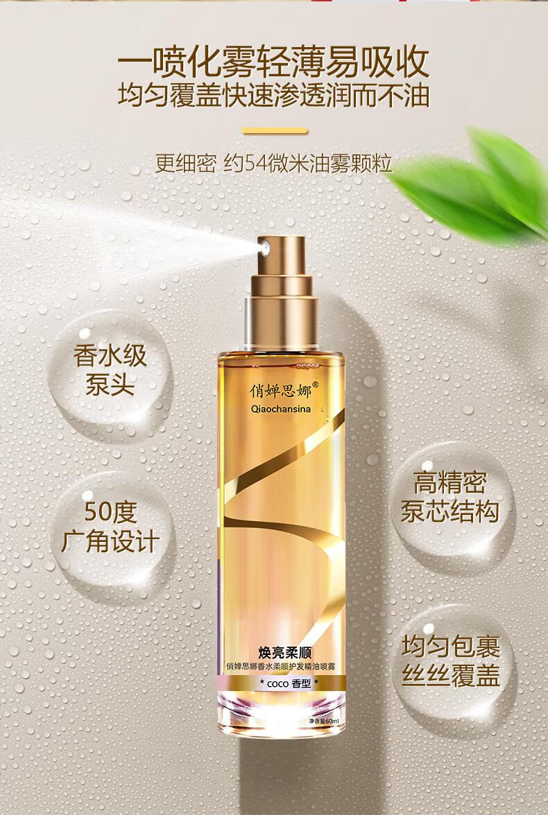 Qiaochansina perfume radiant hair care essential oil spray, refreshing and no-wash small gold bottle, smooth and silky, 1 bottle each of coco+encounter