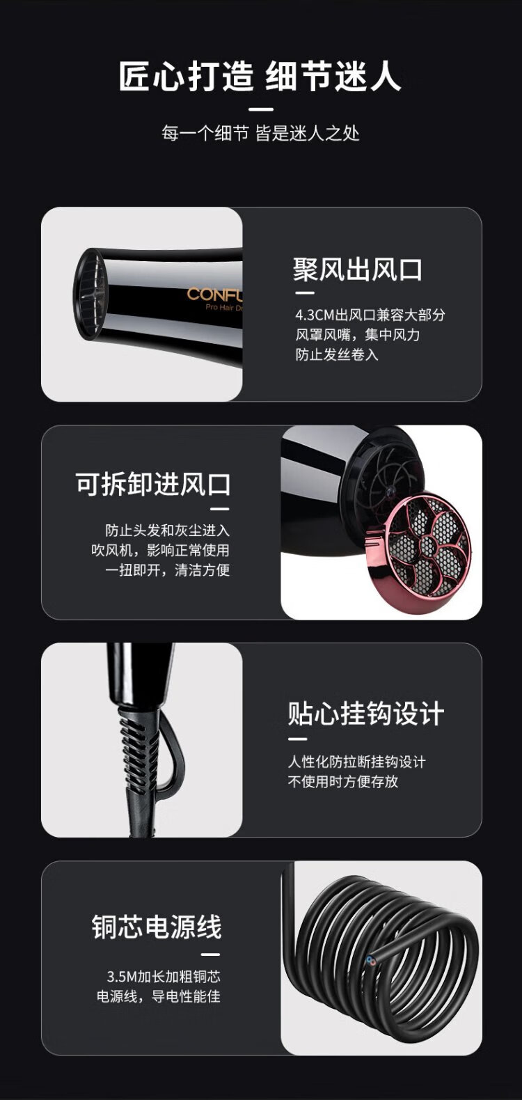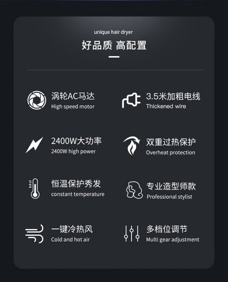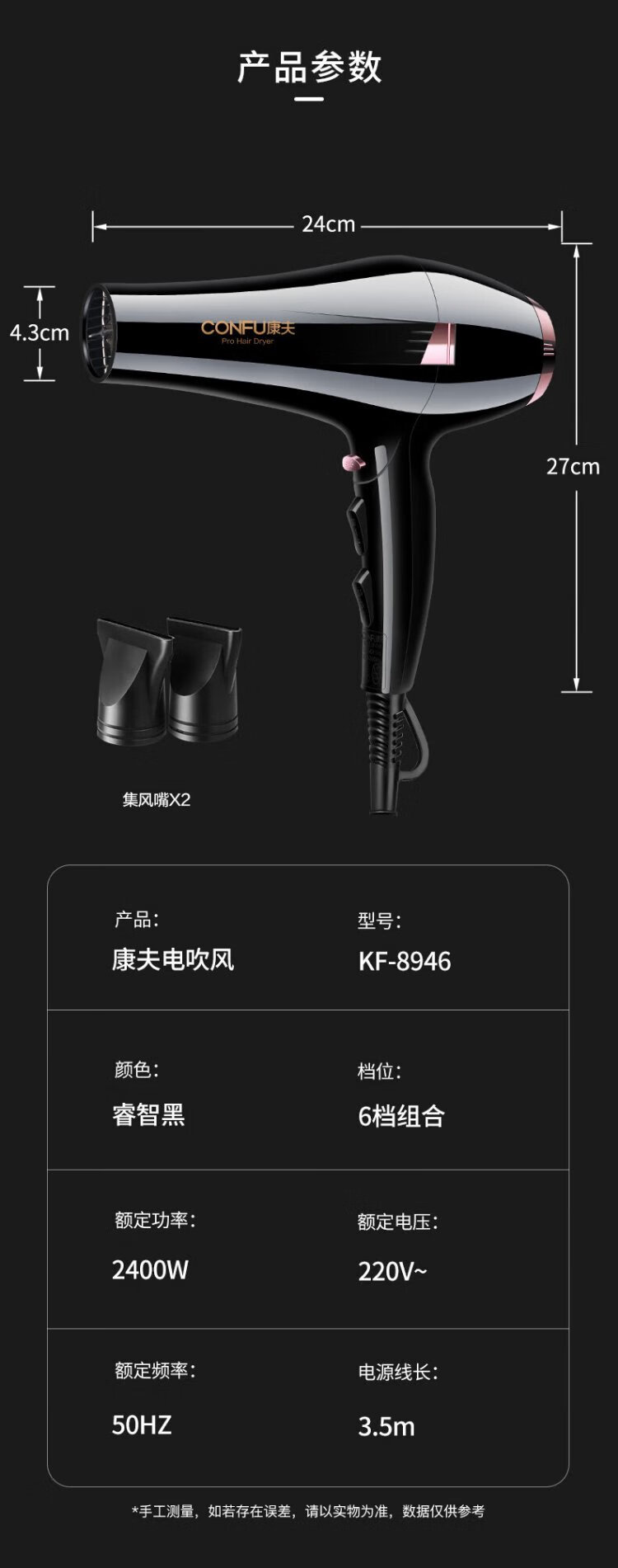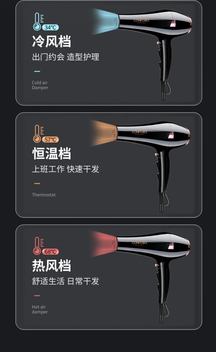 Kangfu hair dryer high power 2400W barber shop hair salon model high wind hot and cold air fast drying hair dryer three plugs KF-8946