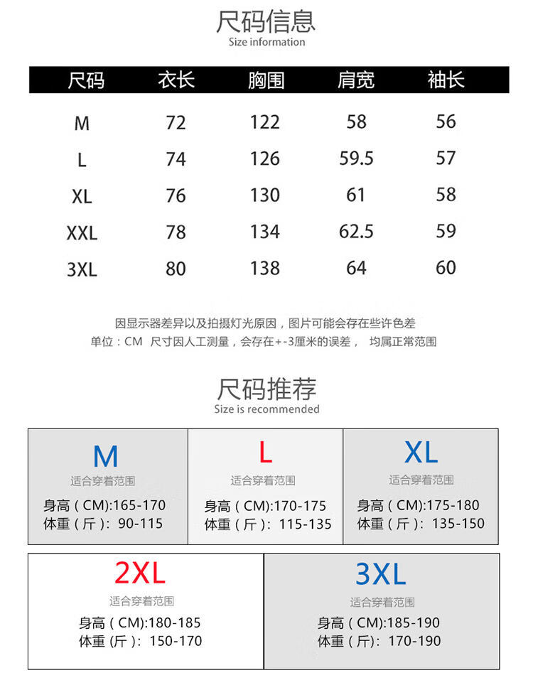 China (cm) 165 / 88-90 170 / 96-98 175 / 108-110 180 / 118-122 185 / 126-130