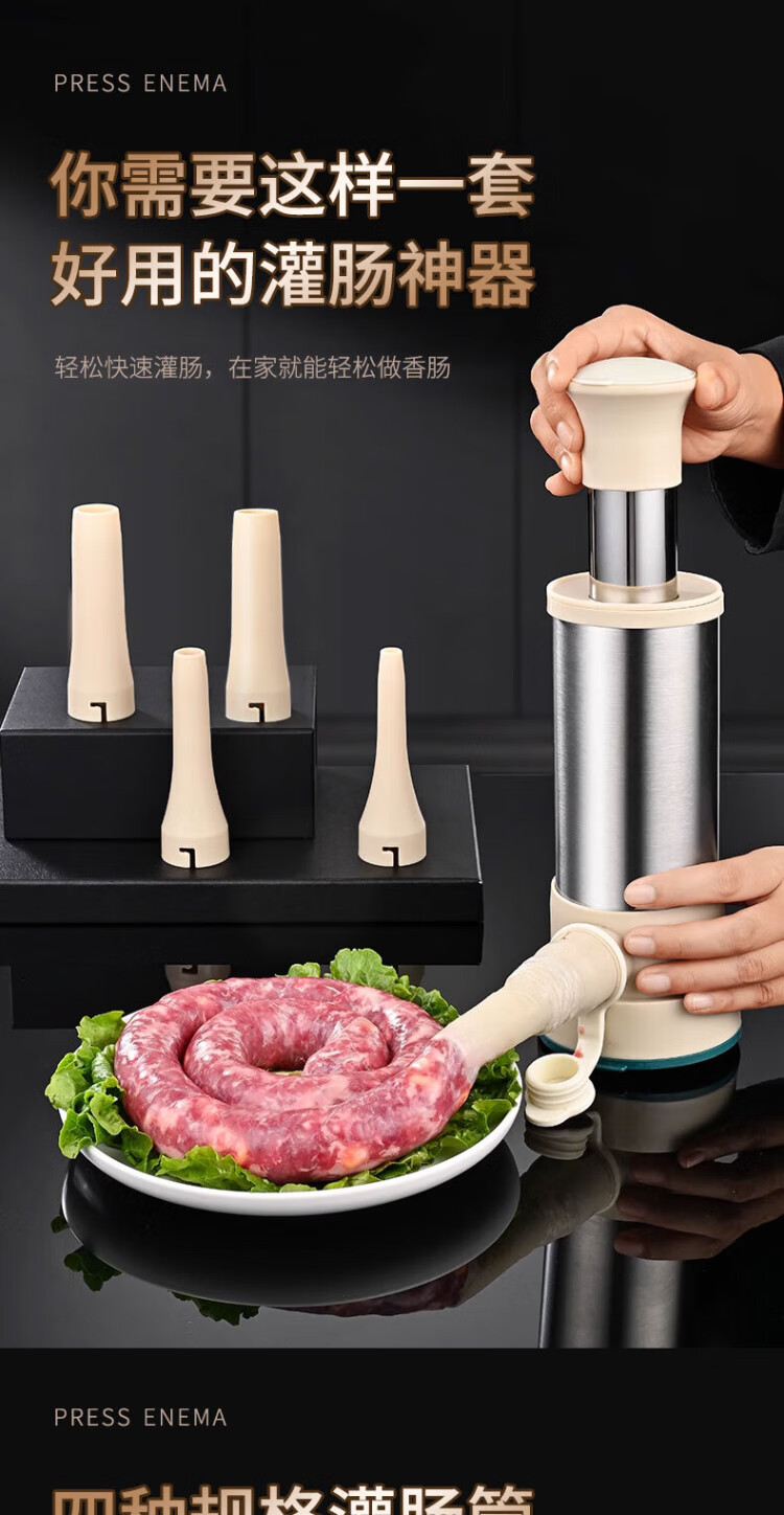 Zhenxi Sausage Enema Manual Sausage Enema Manual Tools Stainless Steel Household Hand Push Sausage Filling Artifact Household Sausage Enema 4 Tubes