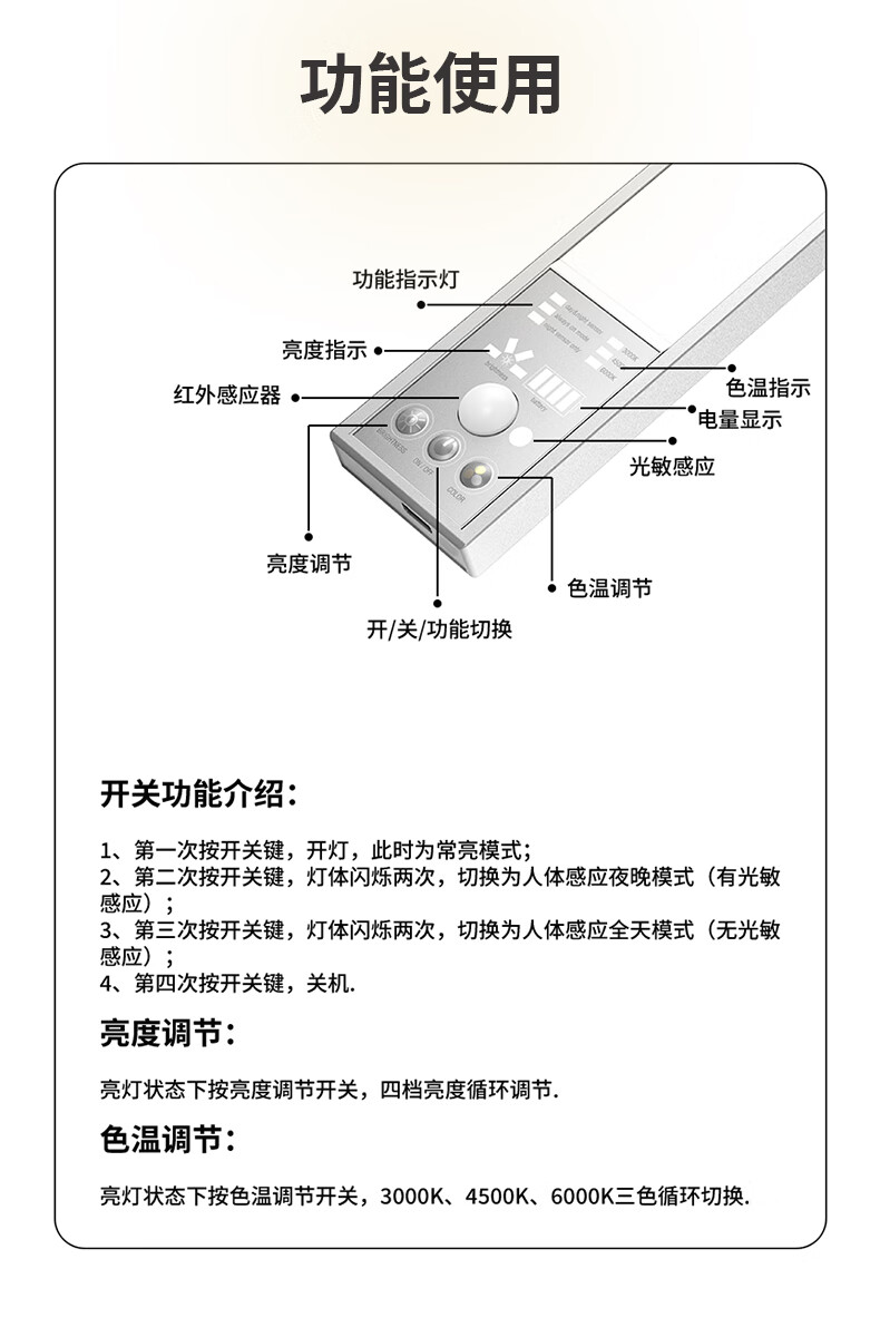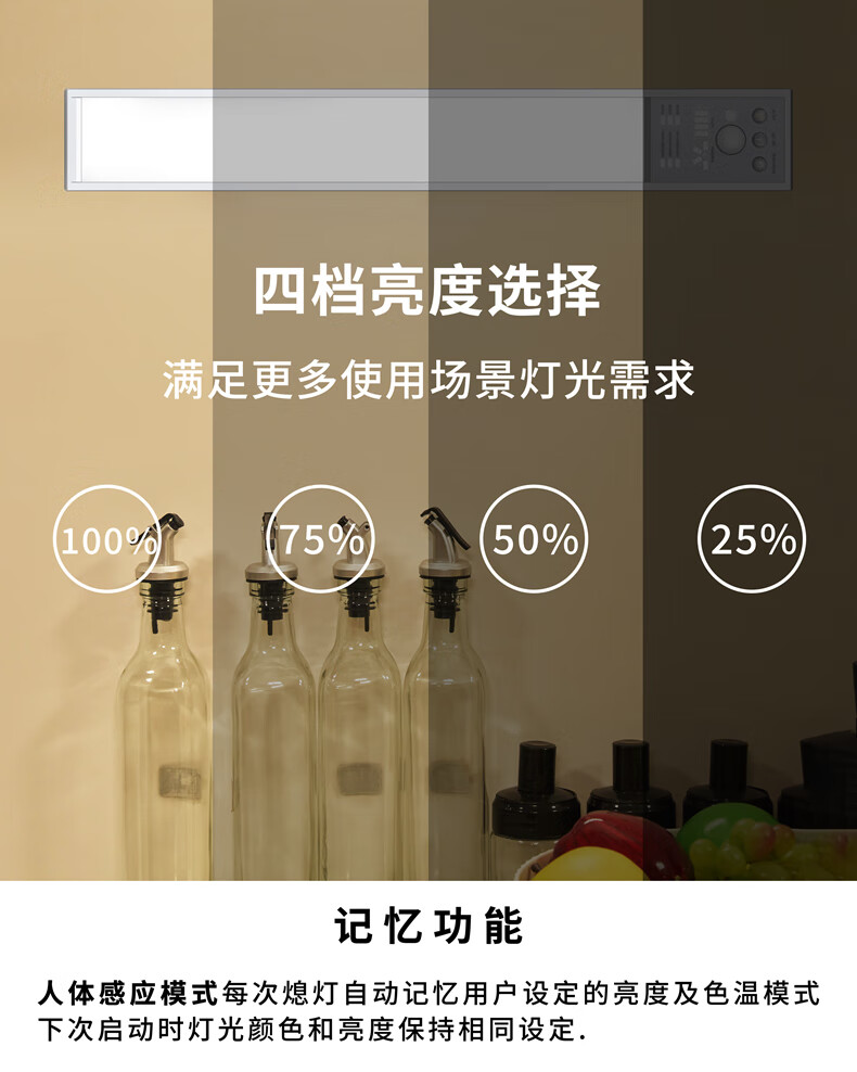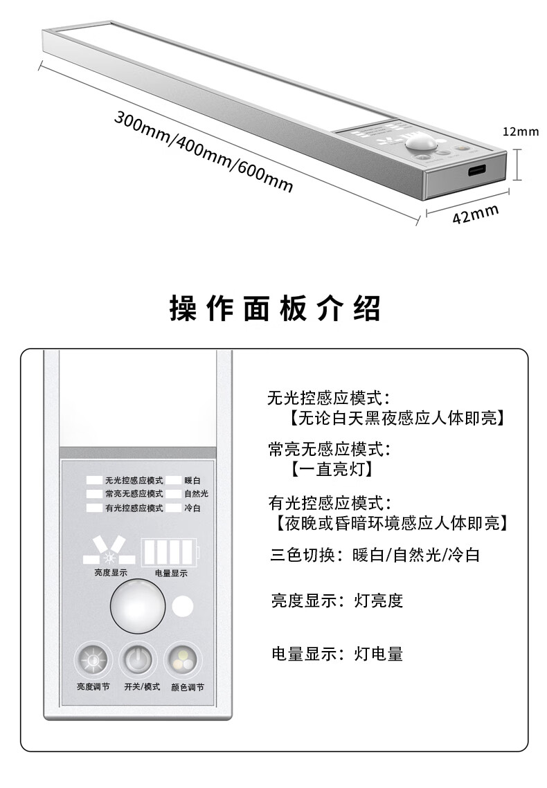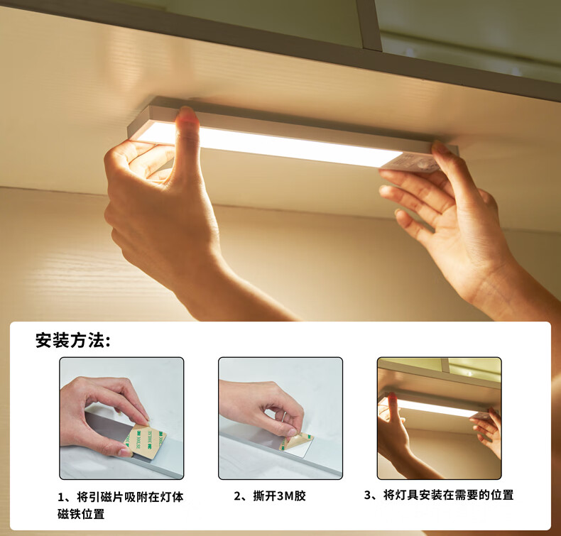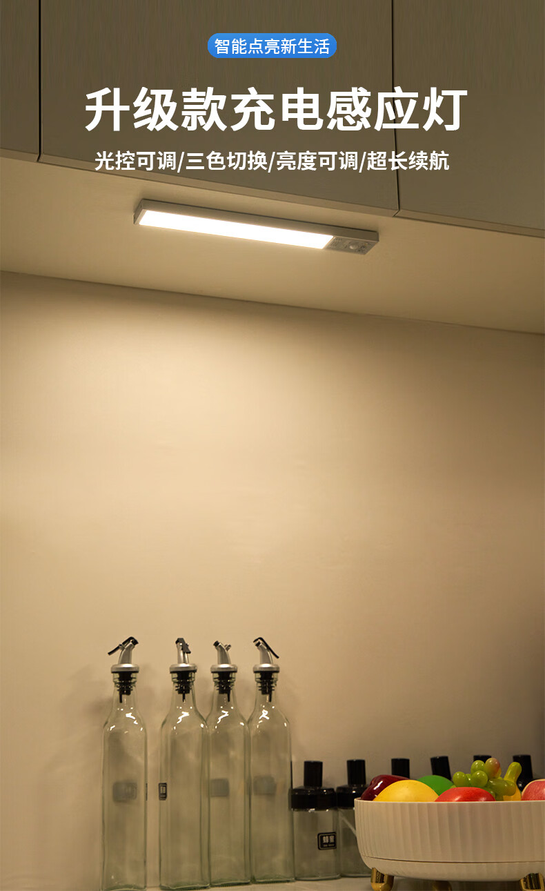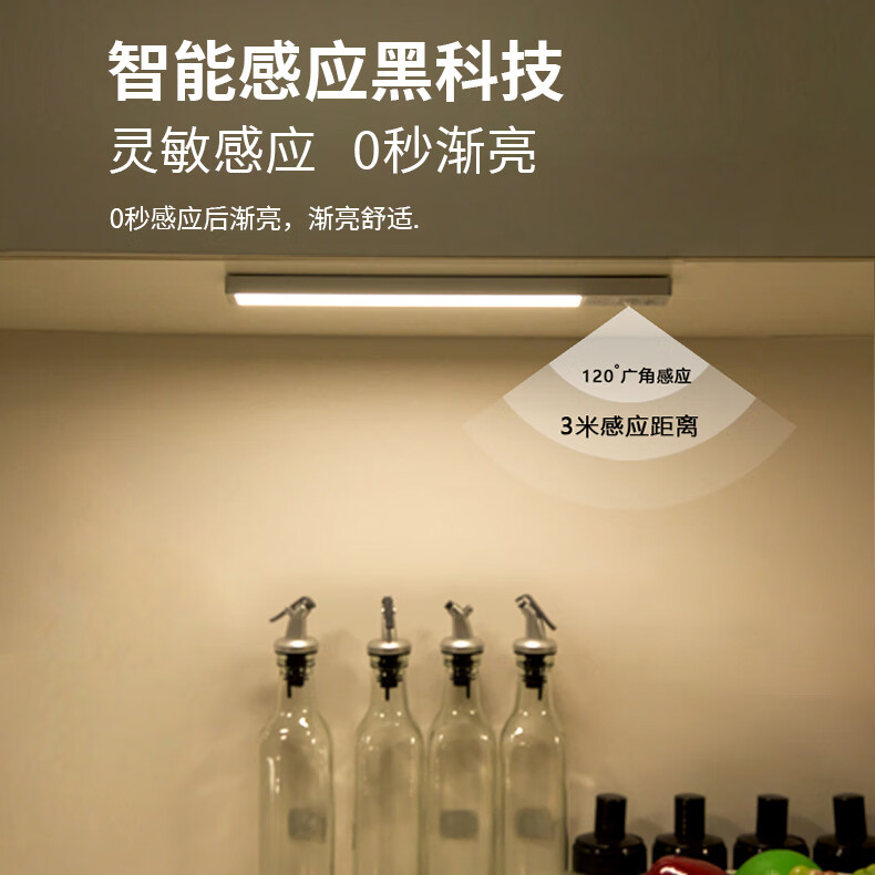 Zhite cabinet lamp ultra-thin cool lamp USB charging wireless night light sensor lamp magnet adsorption wardrobe entrance kitchen three colors 40 cm - human feeling - magnetic suction - brightness
