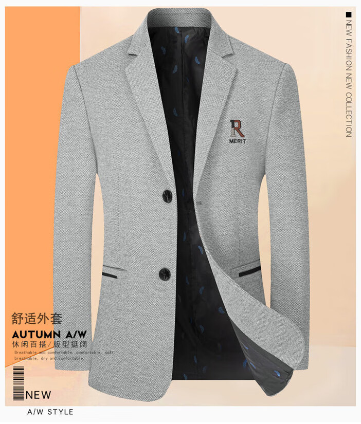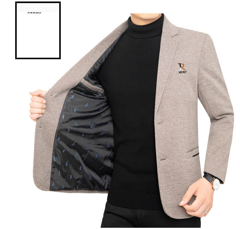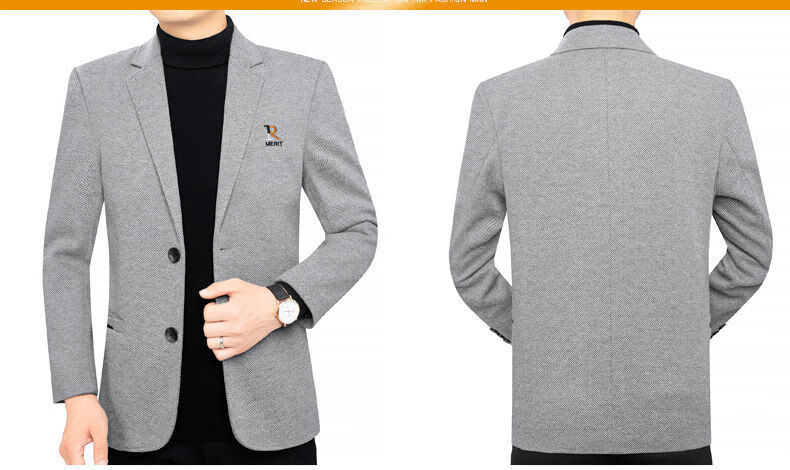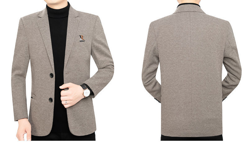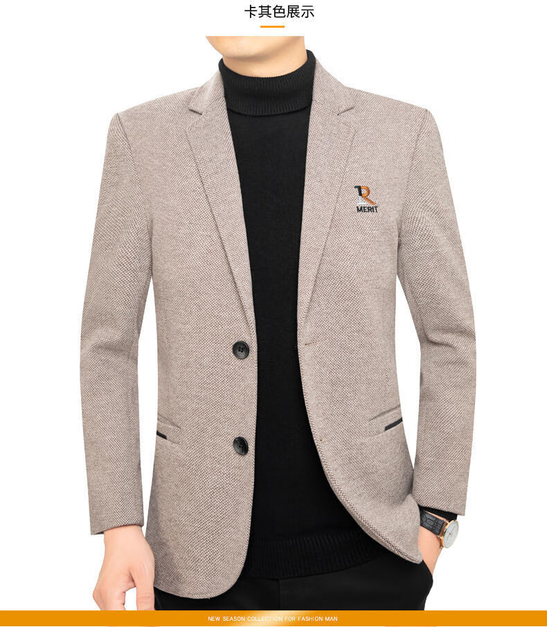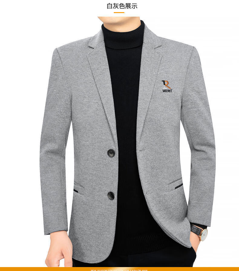 Pierre Cardin 2025 Autumn and Winter Men's Casual Suit Woolen Jacket Single Suit Slim Fit Young and Middle-aged Wool Suit Gray XL
