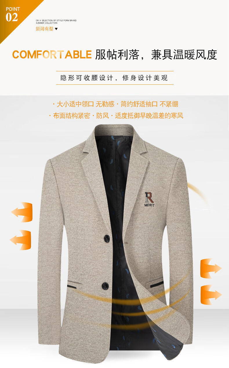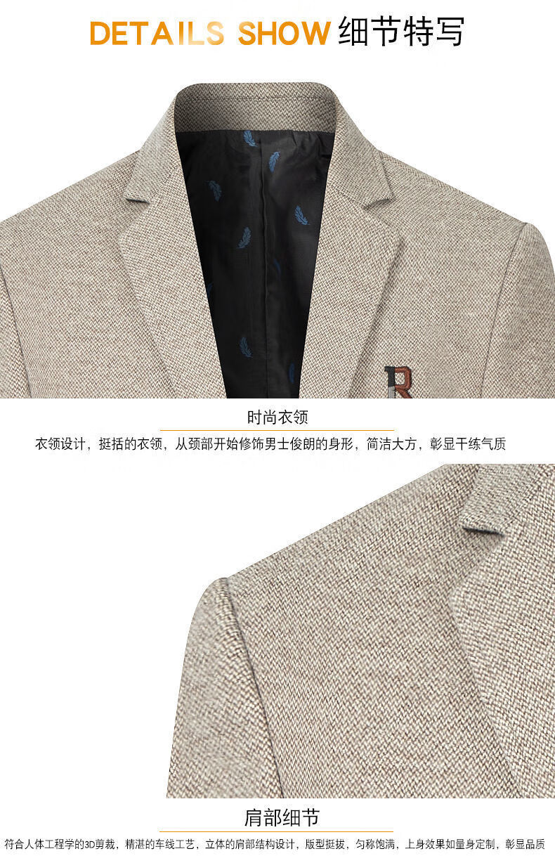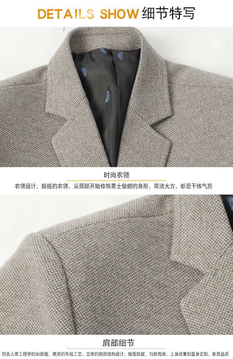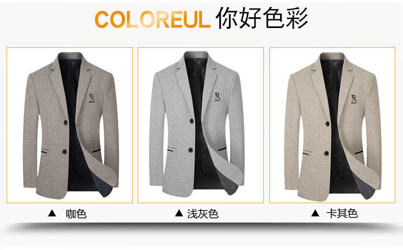 Pierre Cardin 2025 Autumn and Winter Men's Casual Suit Woolen Jacket Single Suit Slim Fit Young and Middle-aged Wool Suit Gray XL