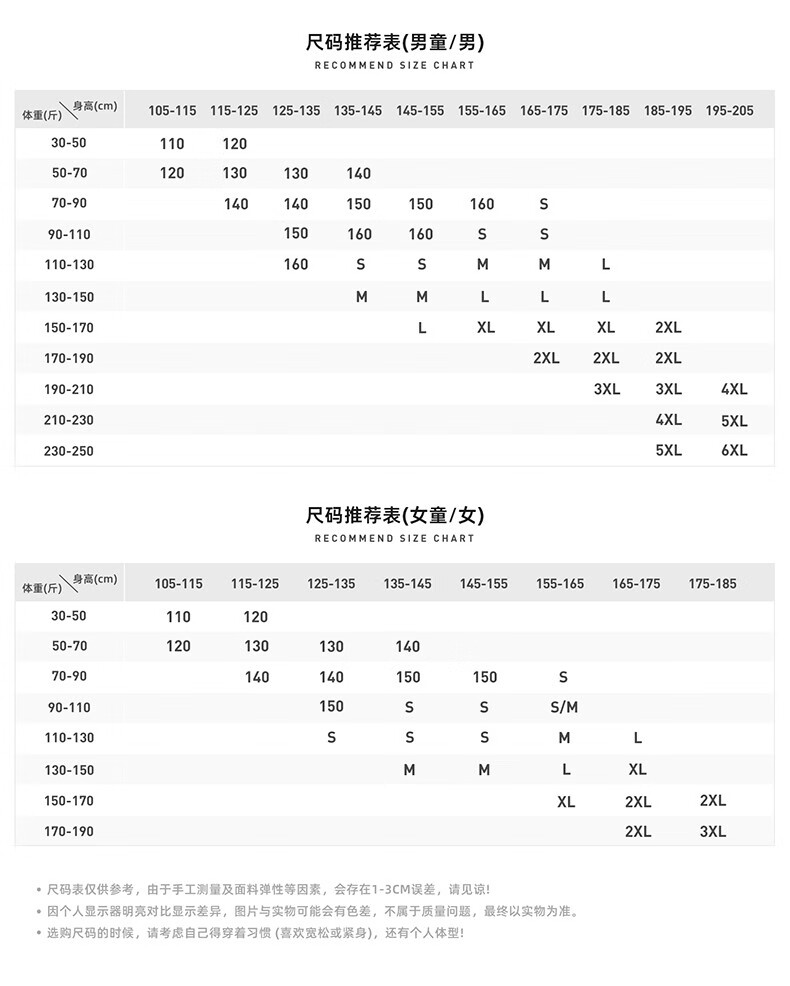 China (cm) 160-165/84-86 165-170 / 88-90 167-172 / 92-96 168-173 / 98-102 170-176 / 106-110